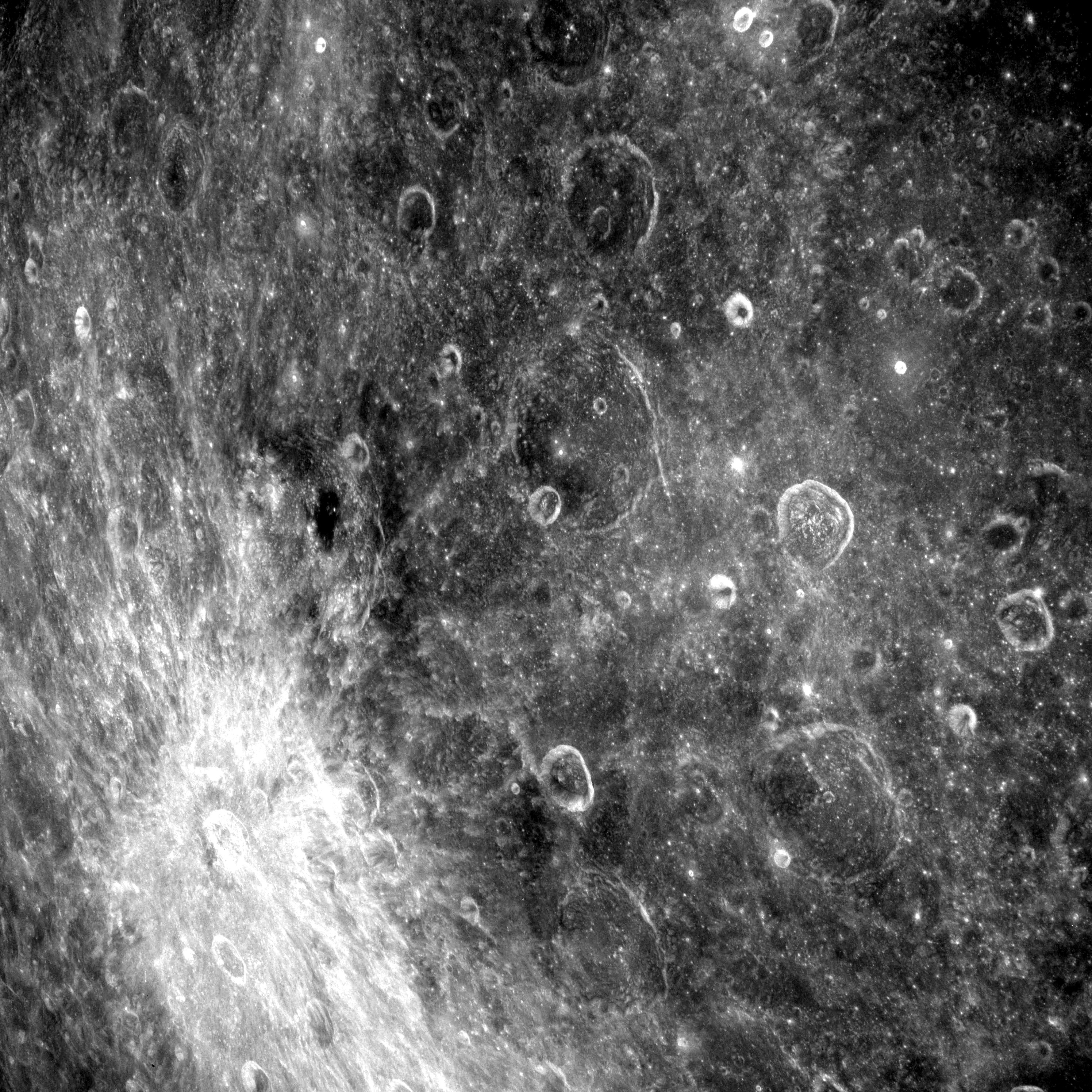AS08-12-2077 252 kB or 2,045 kB Between Daedalus and Racah. Racah X. Image credit: Image Science and Analysis Laboratory, NASA-Johnson Space Center. |