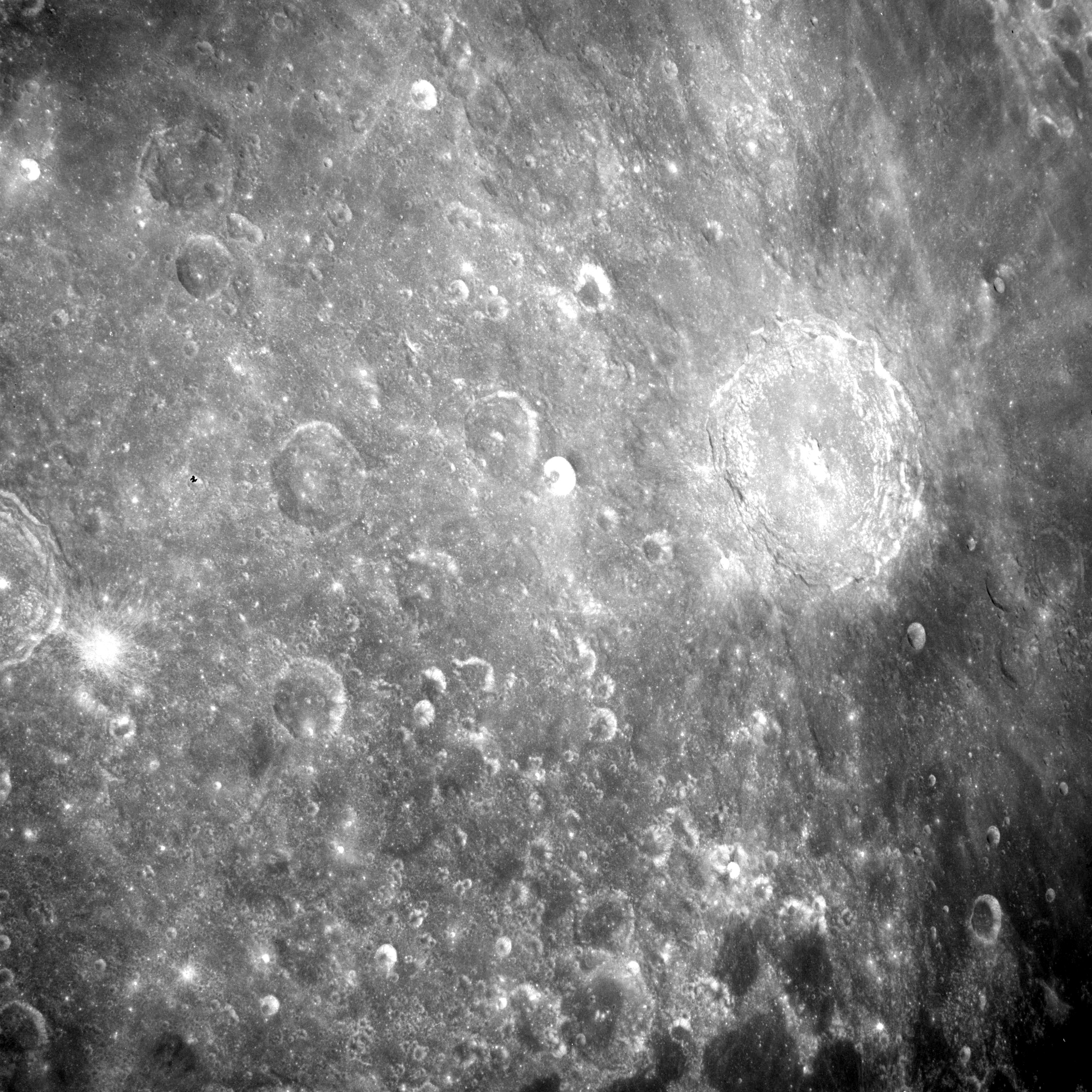 AS08-12-2115 254 kB or 2,103 kB Denning Z on left. Chauvenet G far right. Image credit: Image Science and Analysis Laboratory, NASA-Johnson Space Center. |