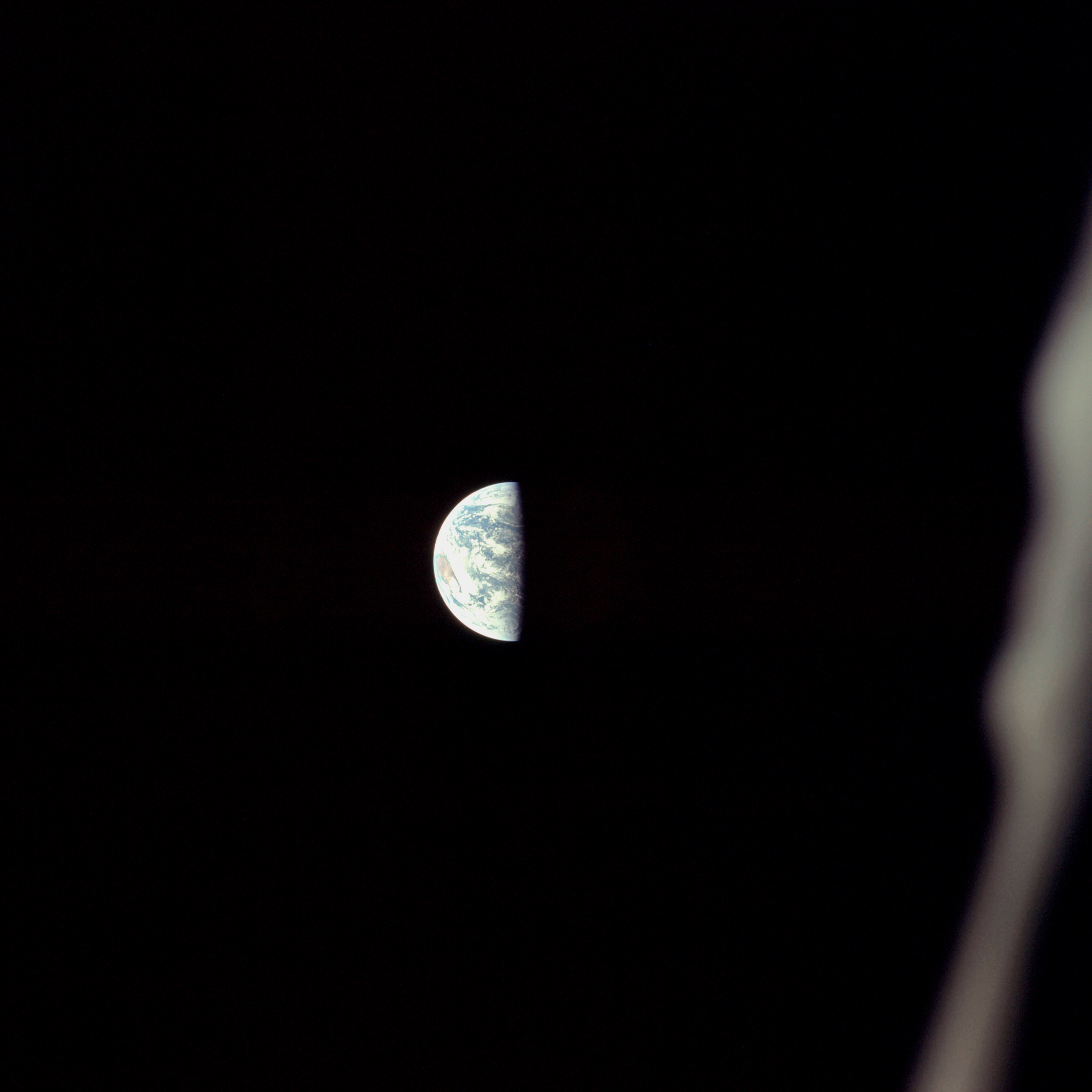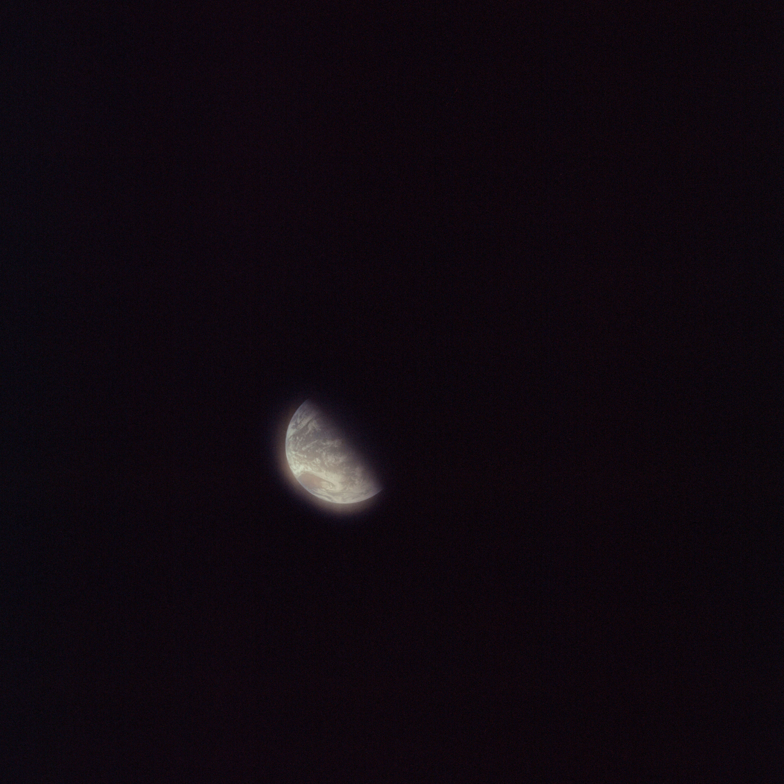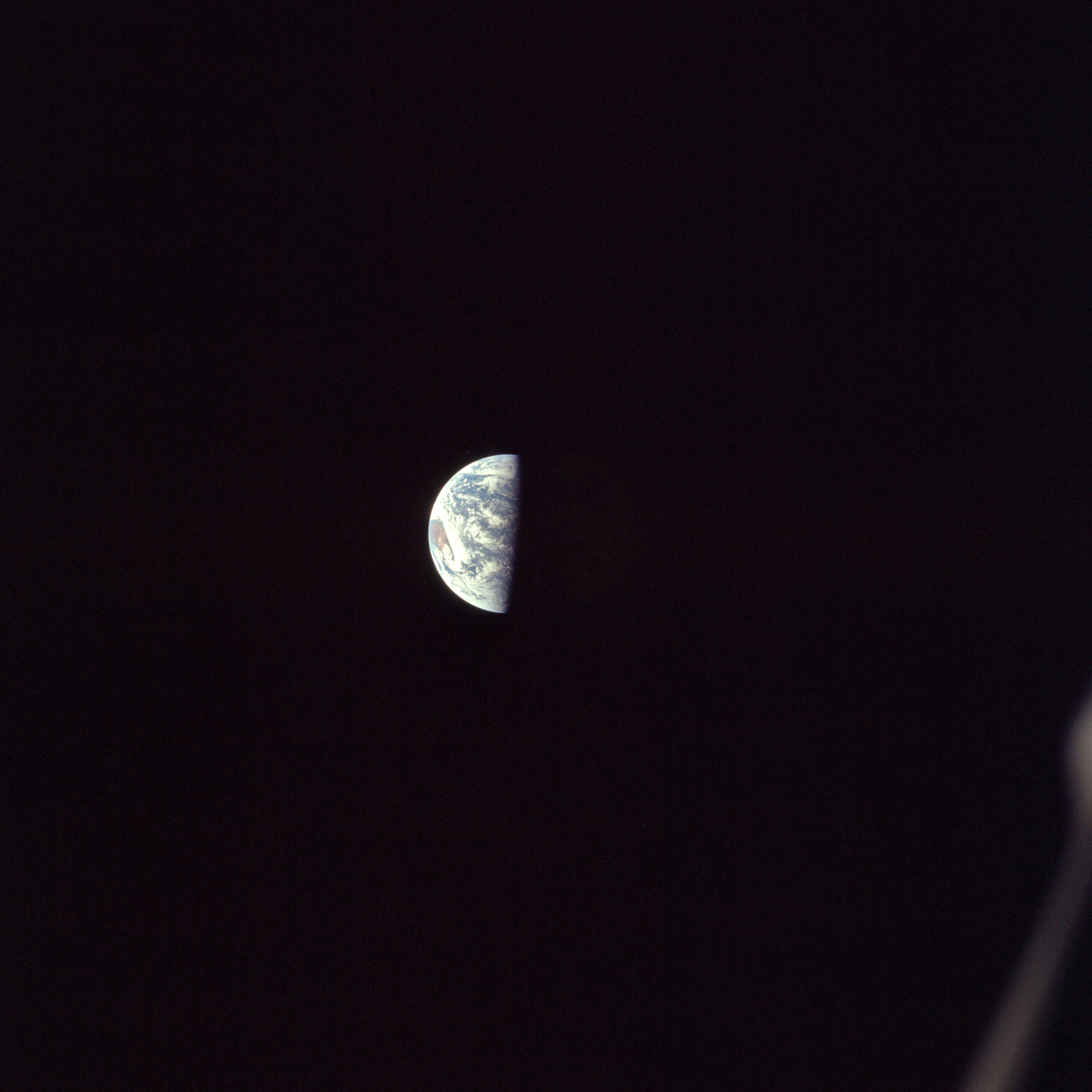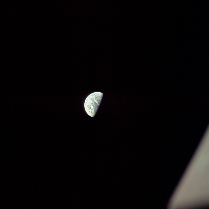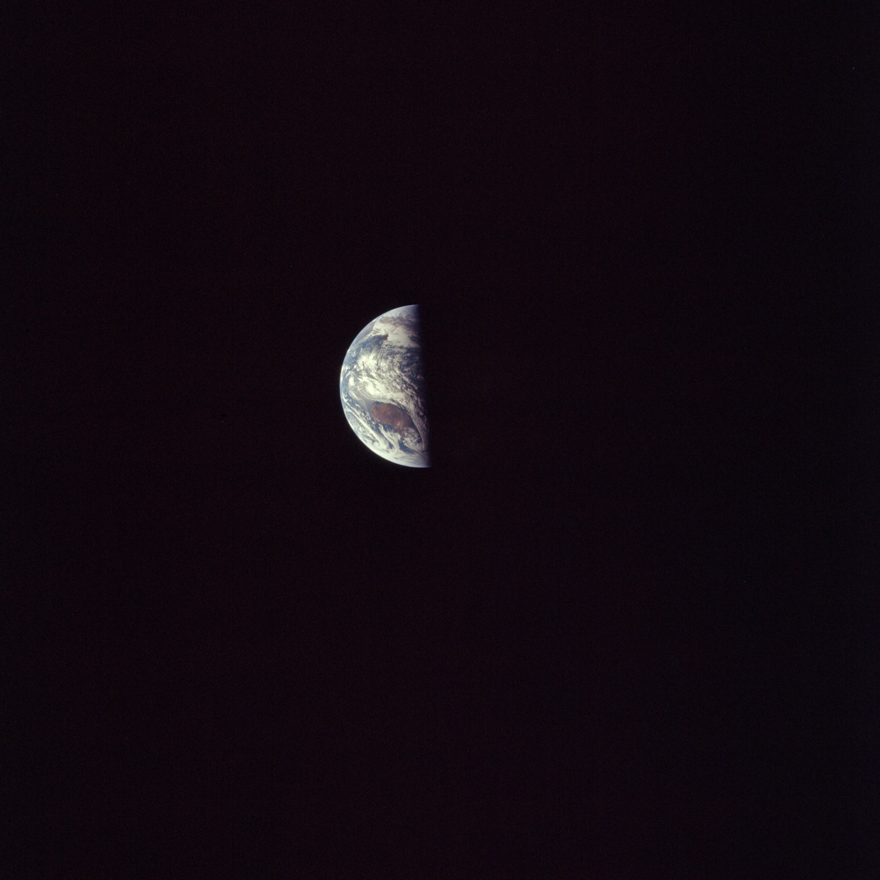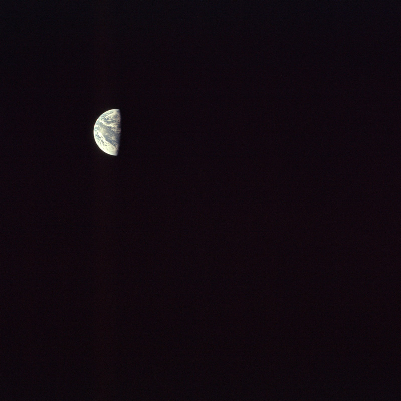 AS08-16-2597 38 kB or 331 kB Earth, at a calculated altitude of 102,500 km (based on photo analysis). No land is visible and it is suspected that the photo shows the Pacific Ocean. Image credit: Image Science and Analysis Laboratory, NASA-Johnson Space Center. |