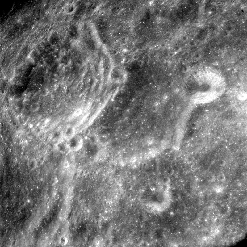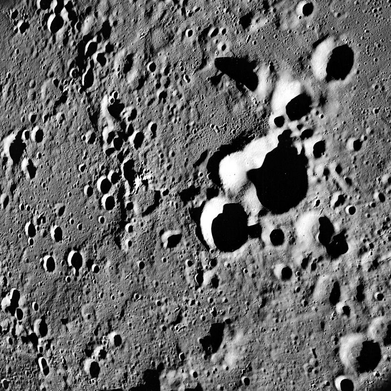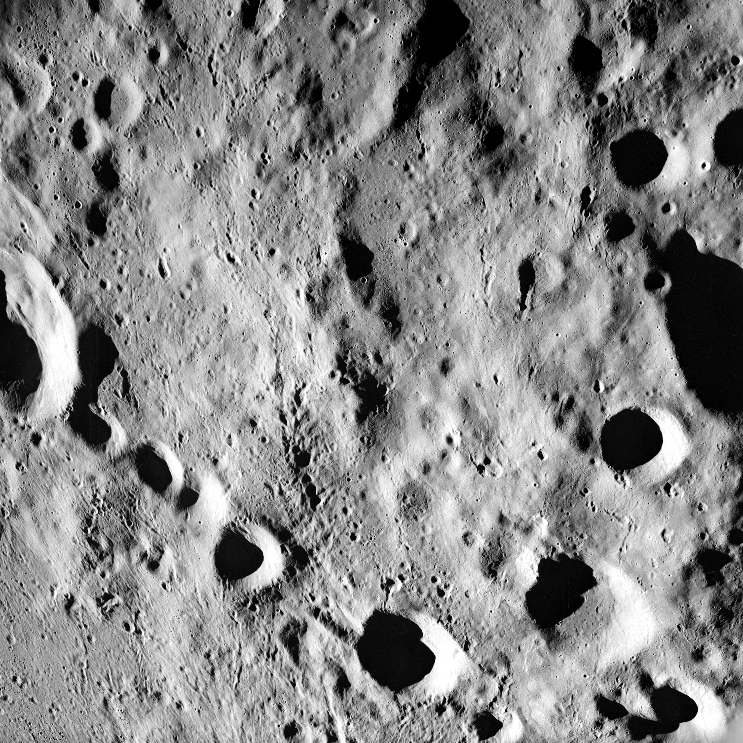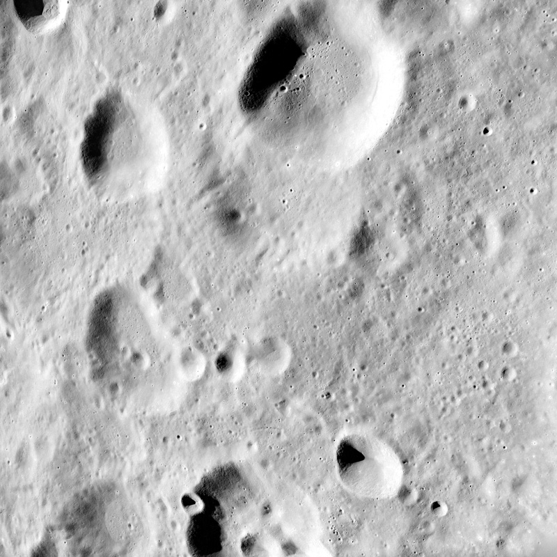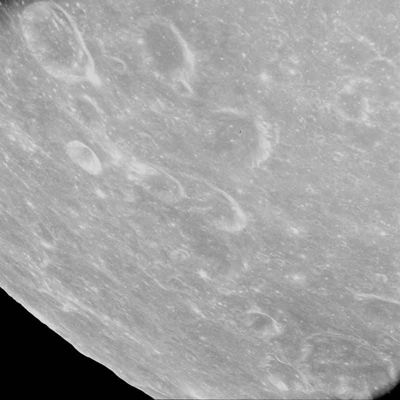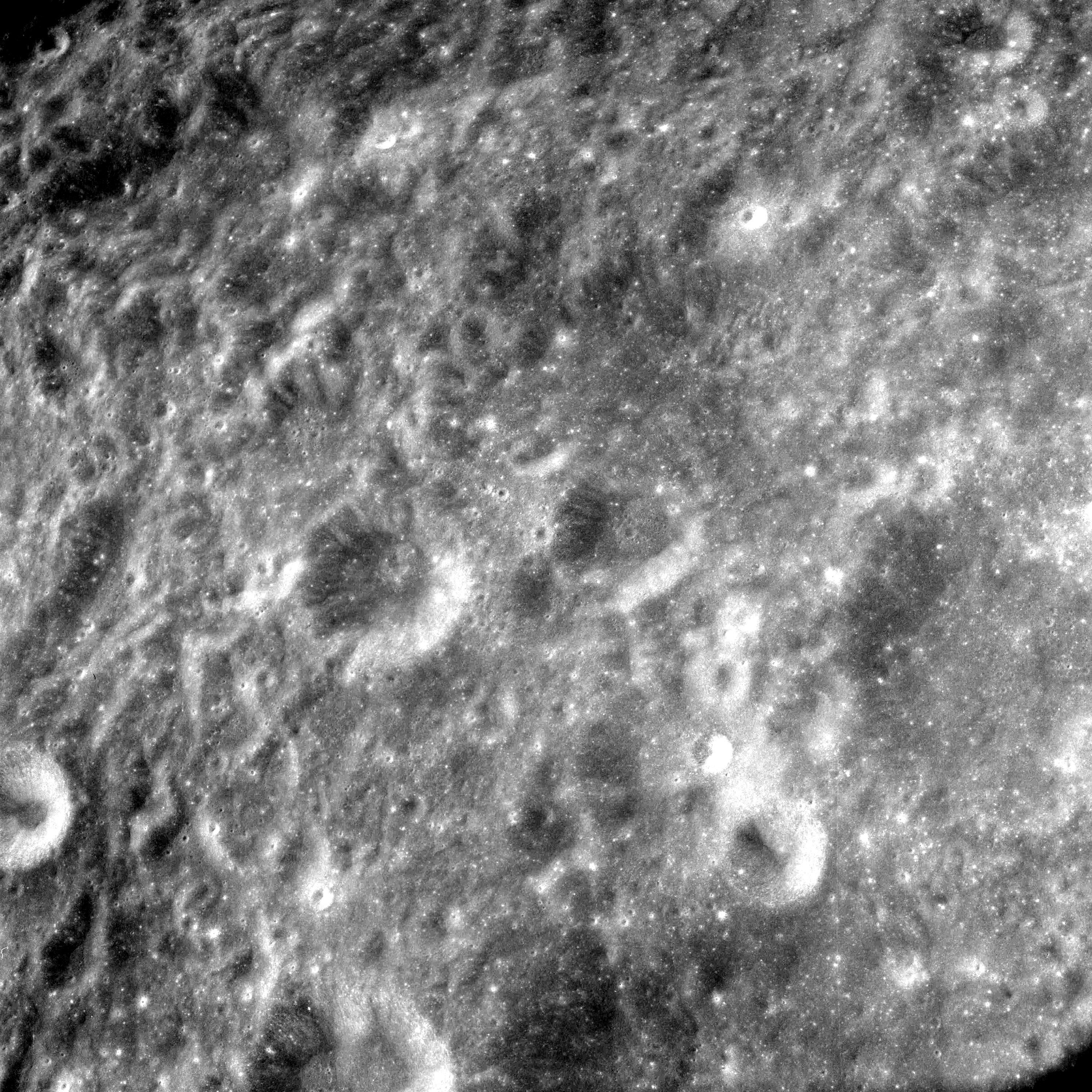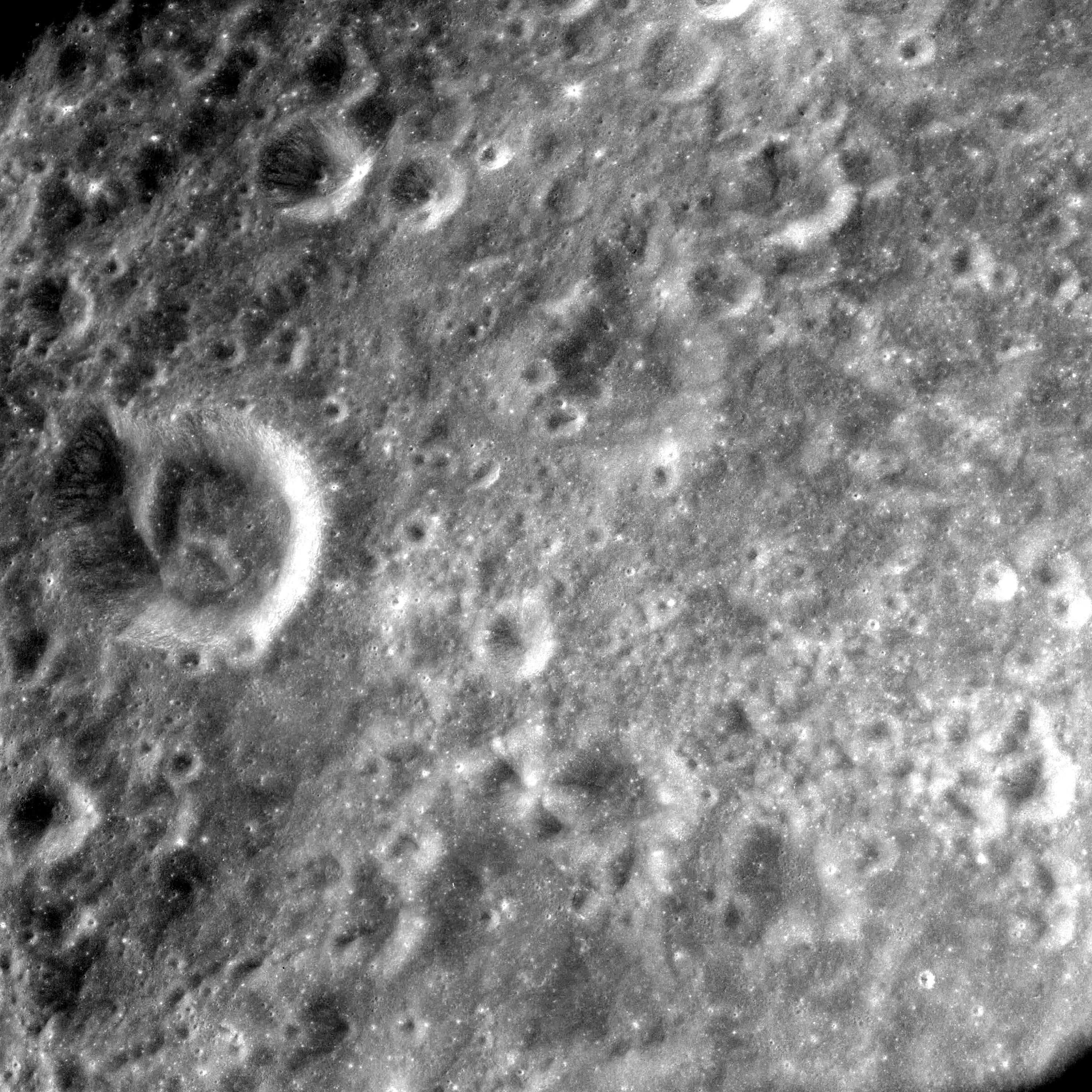 AS08-17-2691 263 kB or 2,147 kB Unnamed far-side craters southwest of crater Daedalus. Image credit: Image Science and Analysis Laboratory, NASA-Johnson Space Center. |