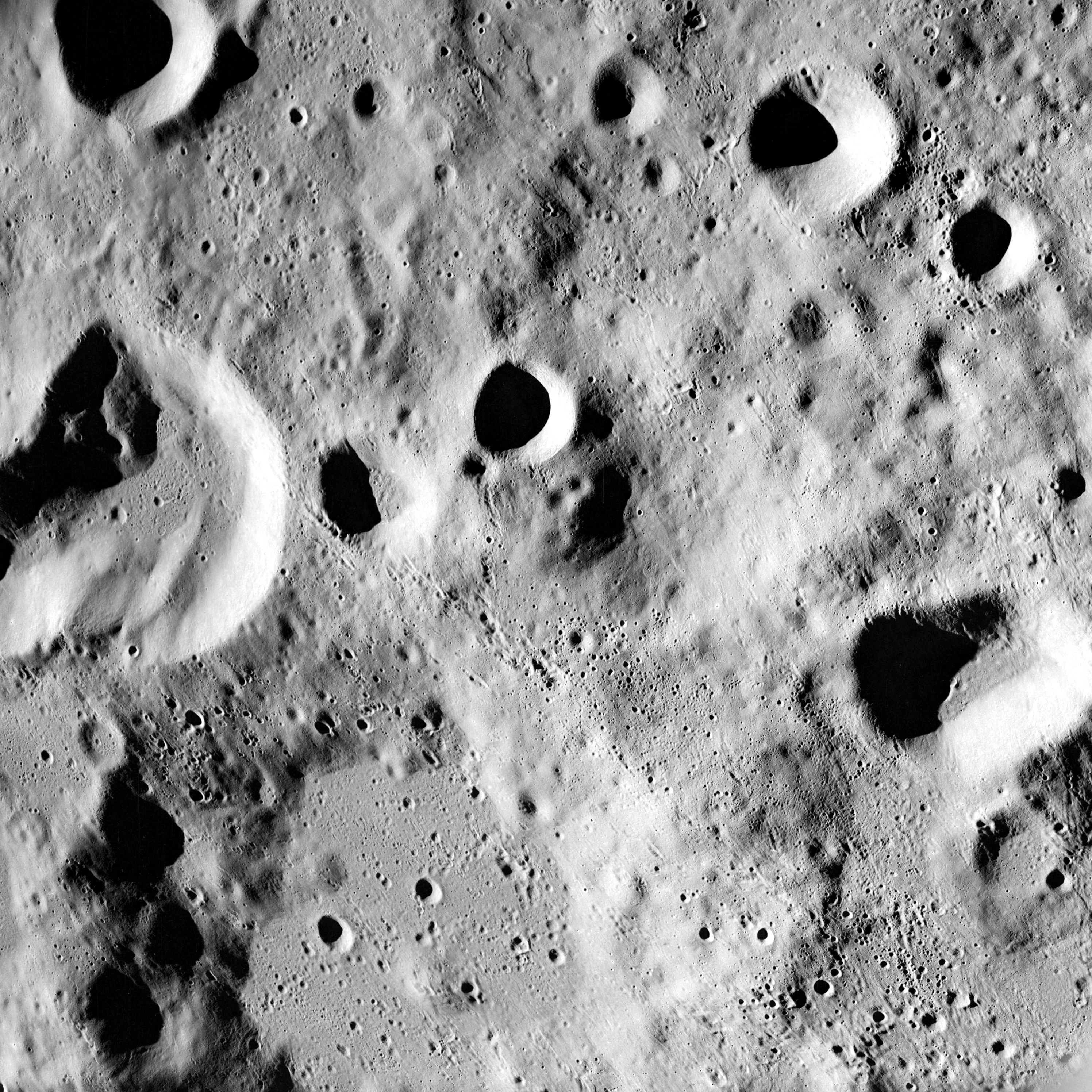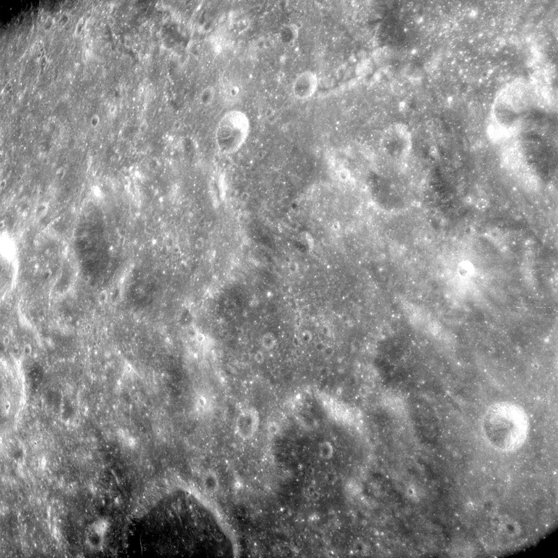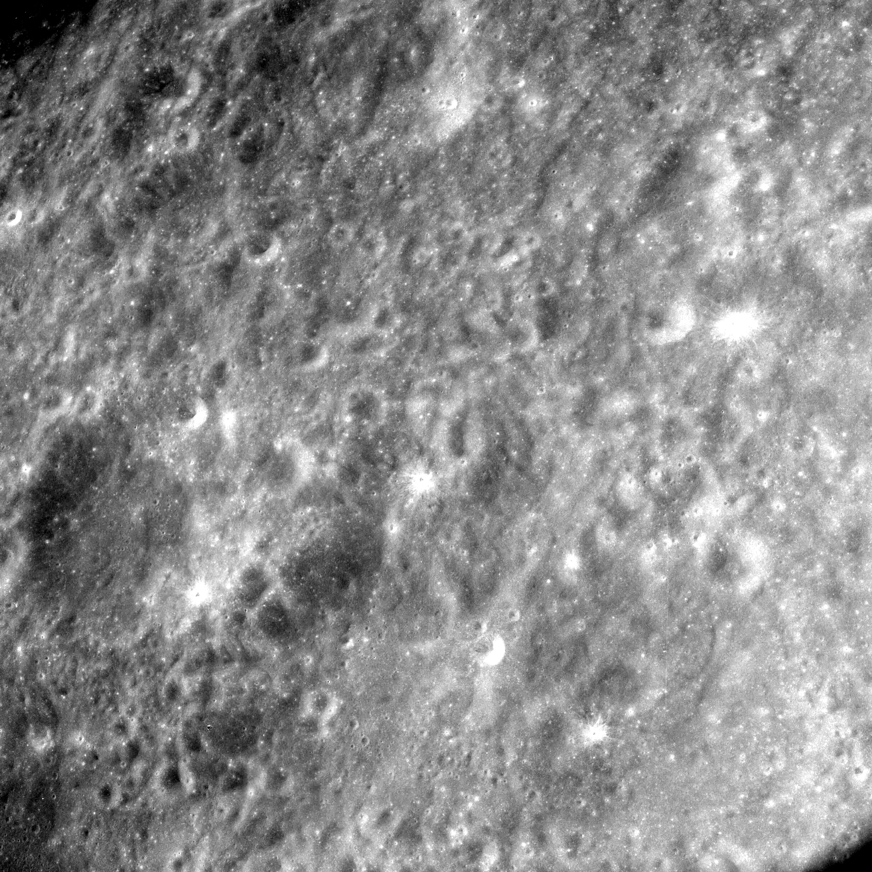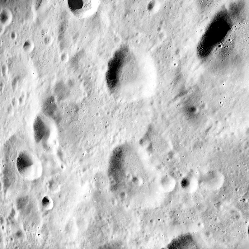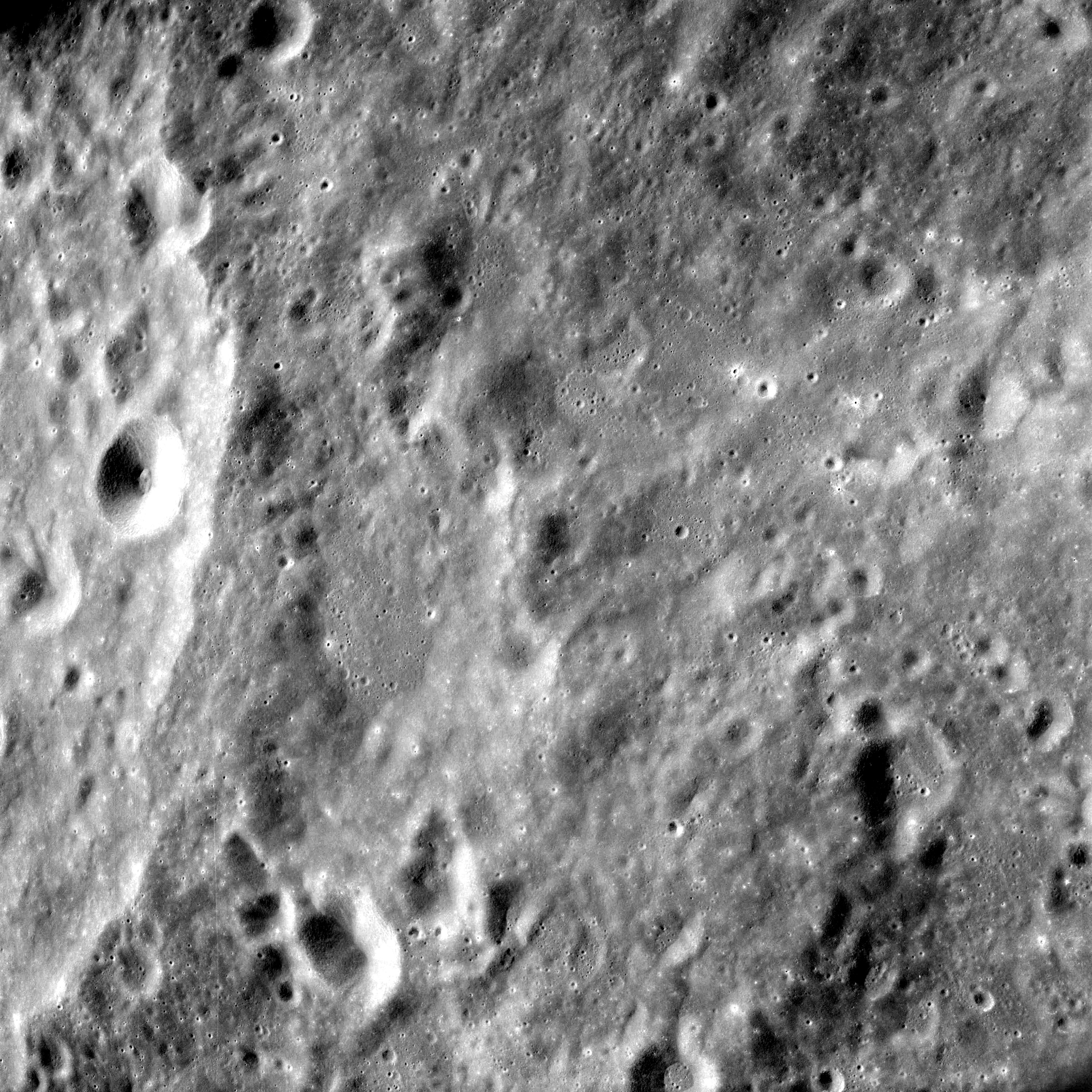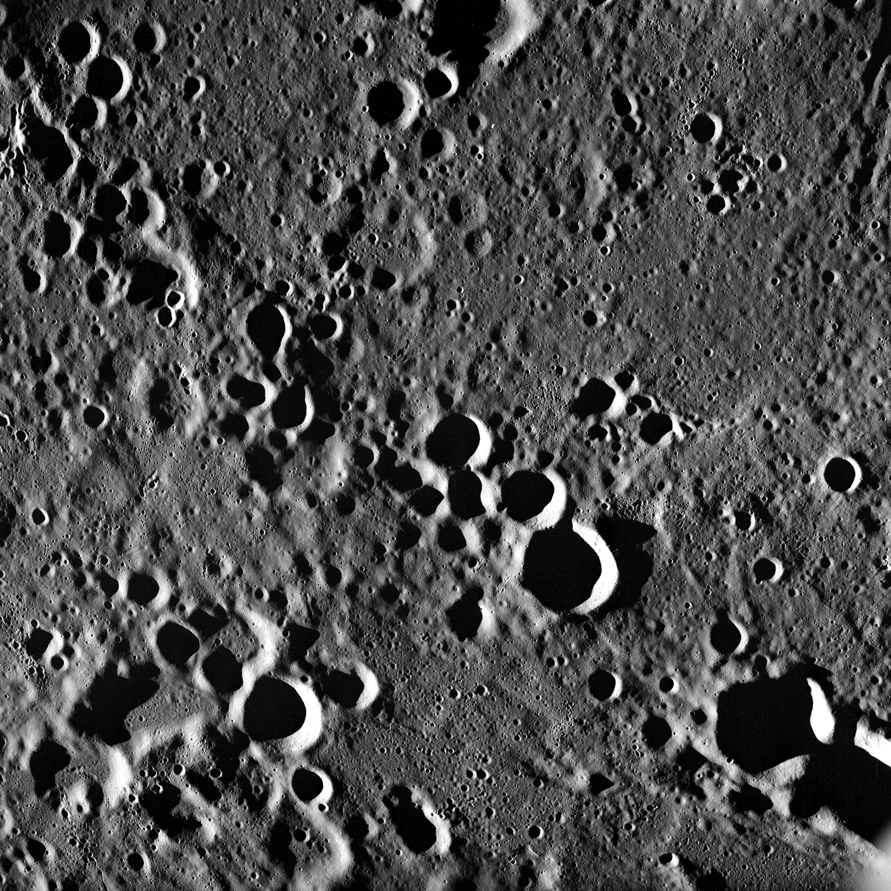 AS08-17-2691 263 kB or 2,147 kB Unnamed far-side craters southwest of crater Daedalus. Image credit: Image Science and Analysis Laboratory, NASA-Johnson Space Center. |