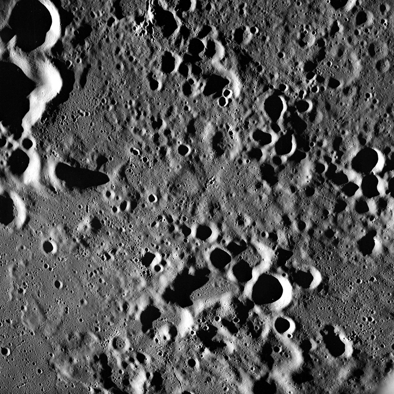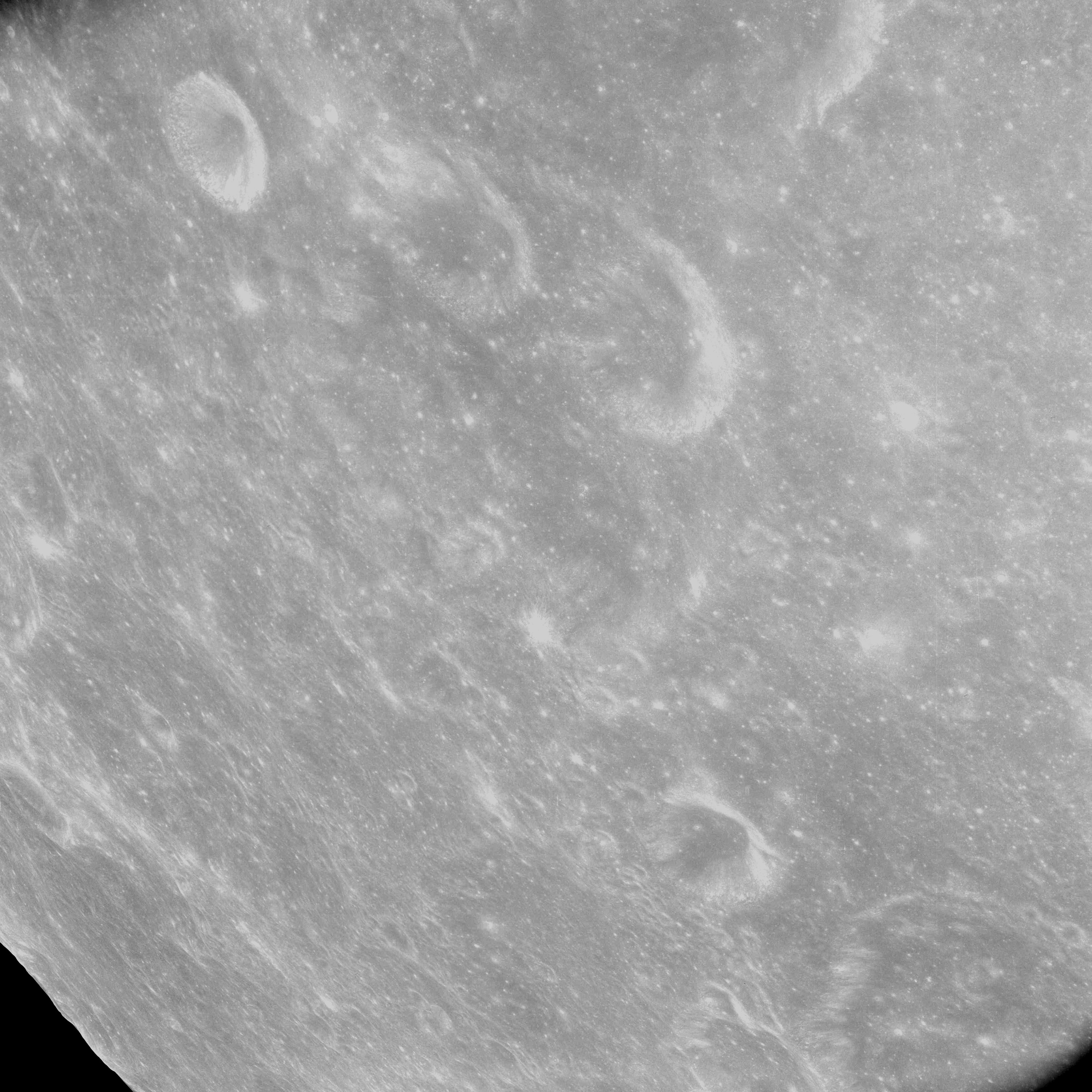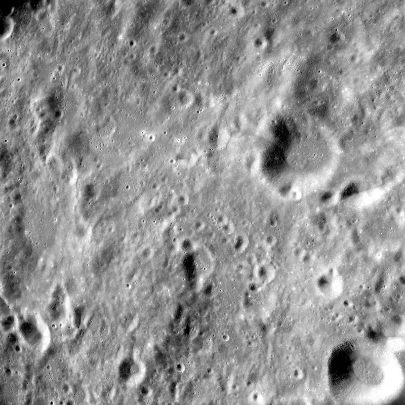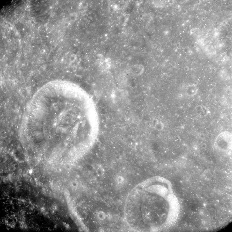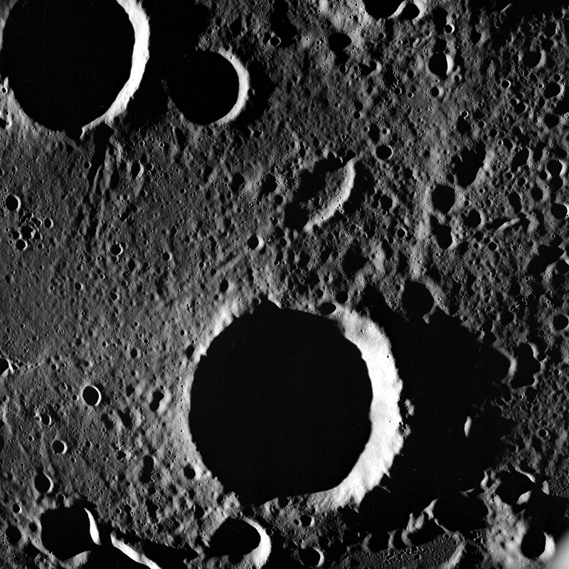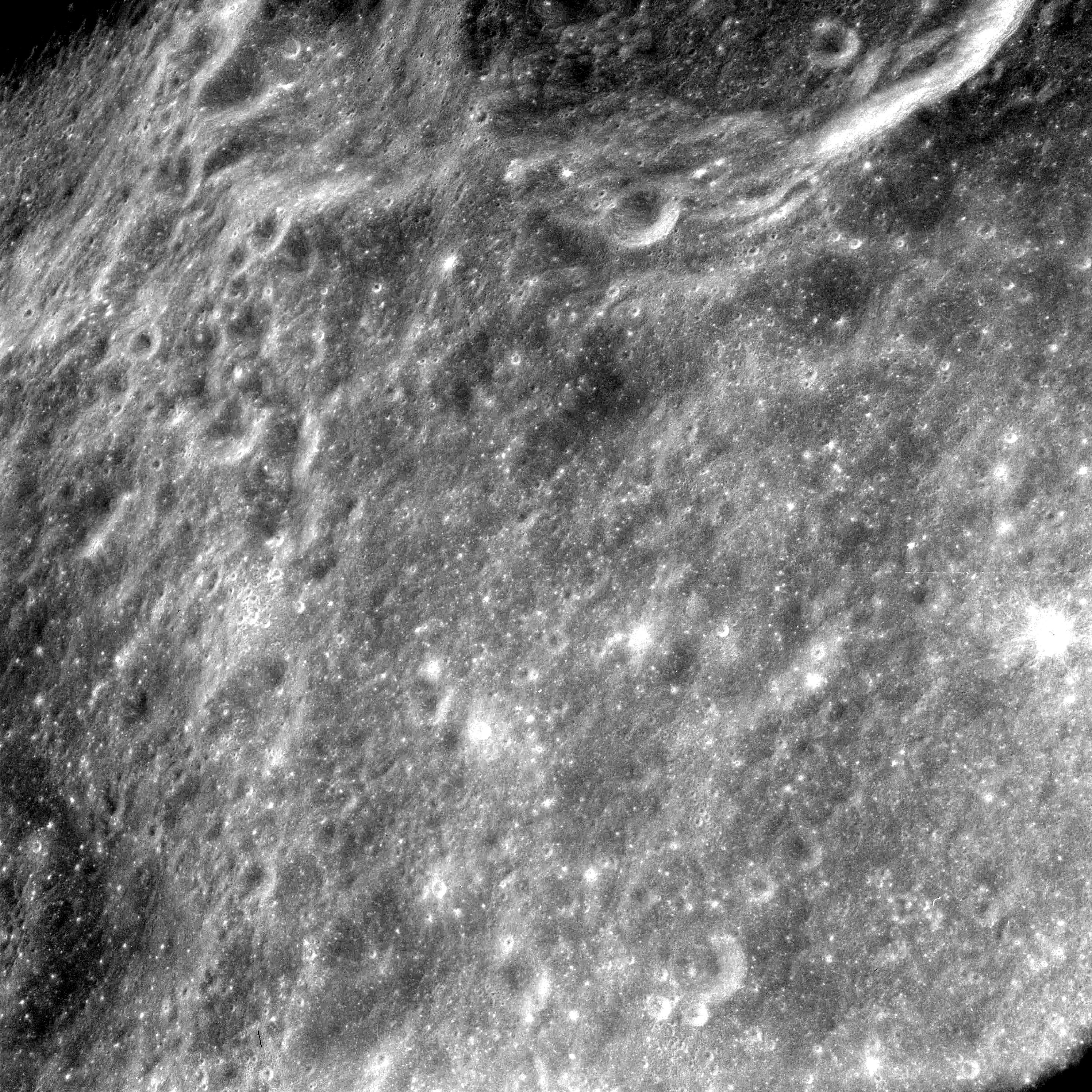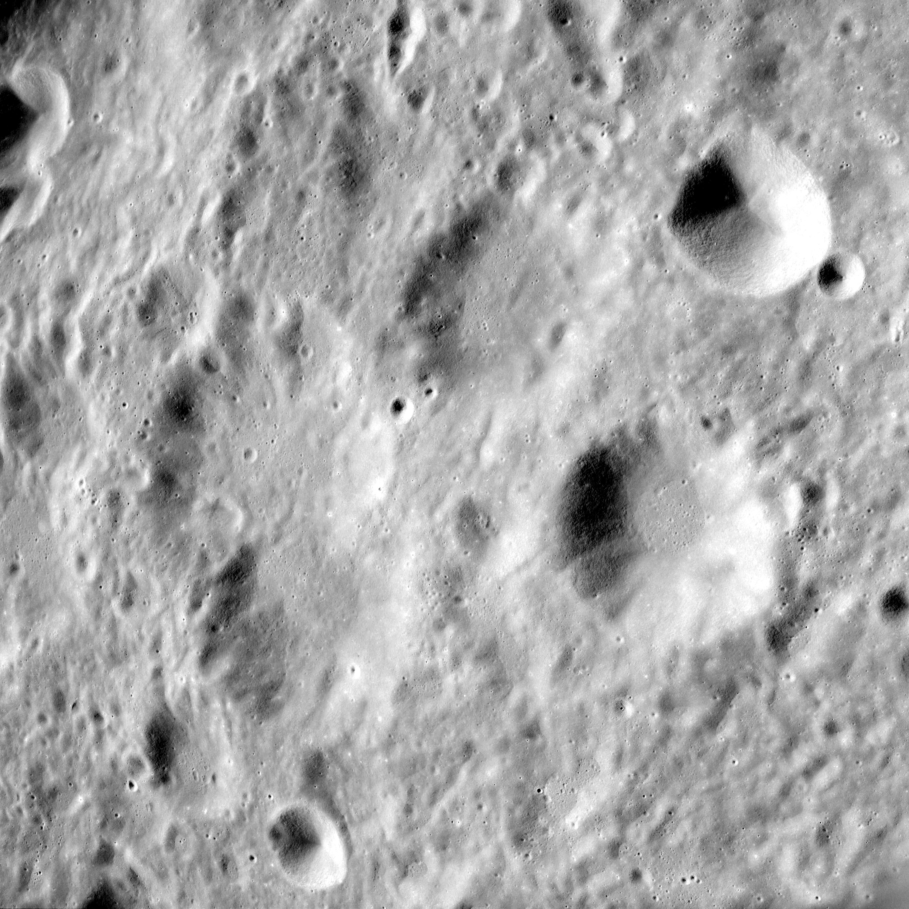 AS08-17-2691 263 kB or 2,147 kB Unnamed far-side craters southwest of crater Daedalus. Image credit: Image Science and Analysis Laboratory, NASA-Johnson Space Center. |