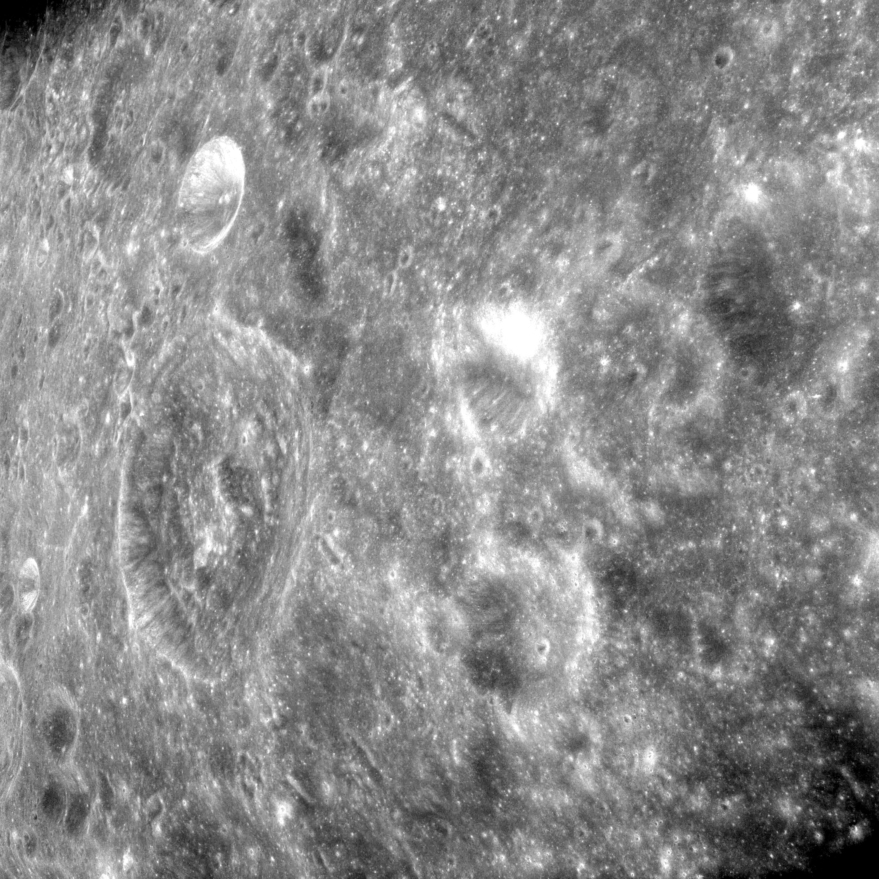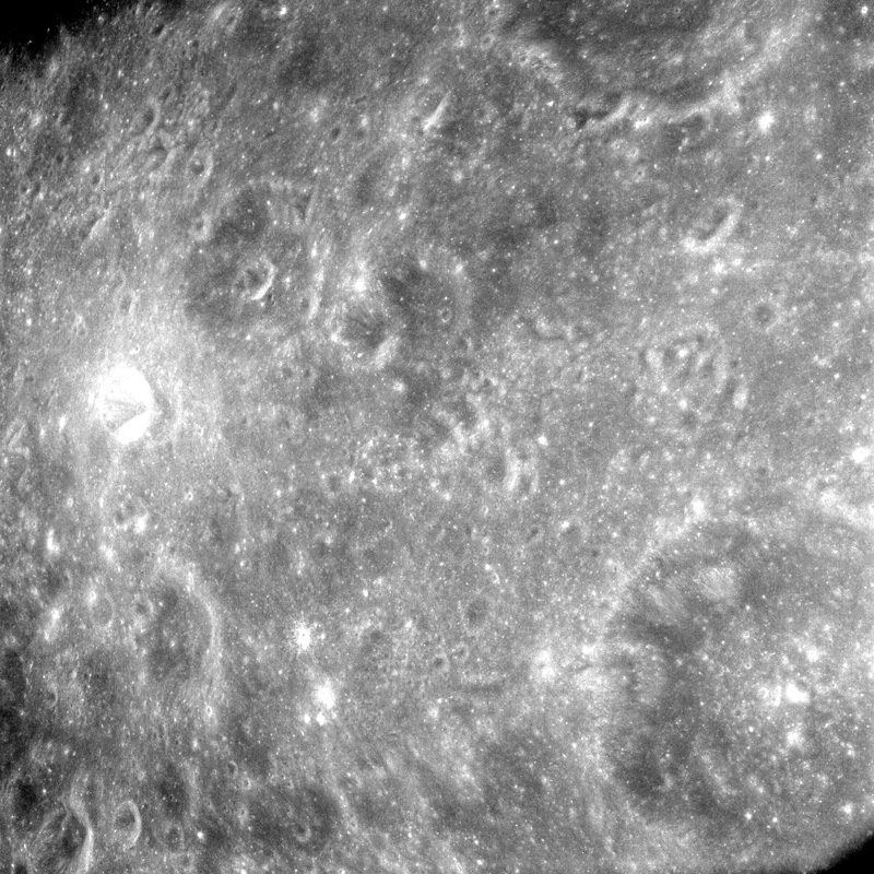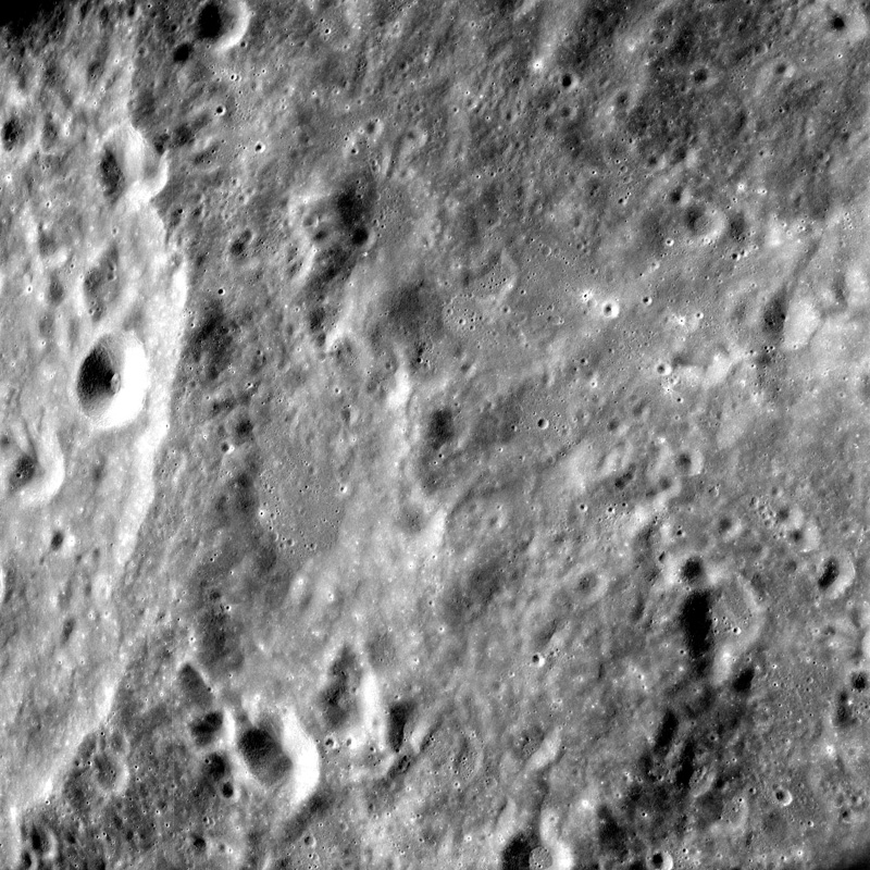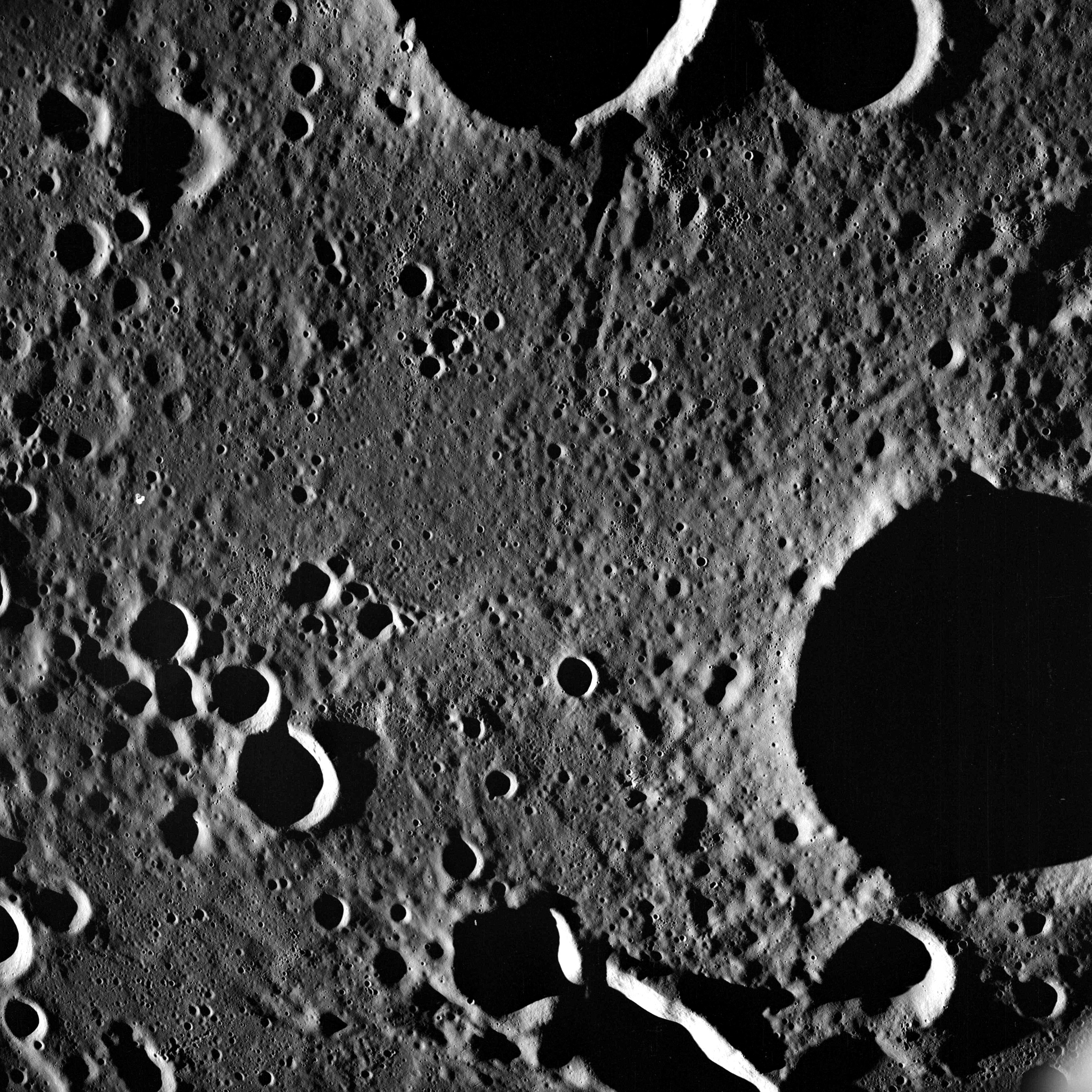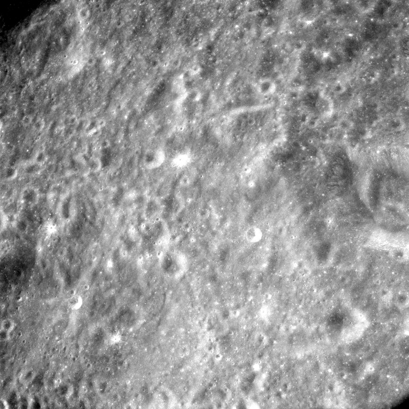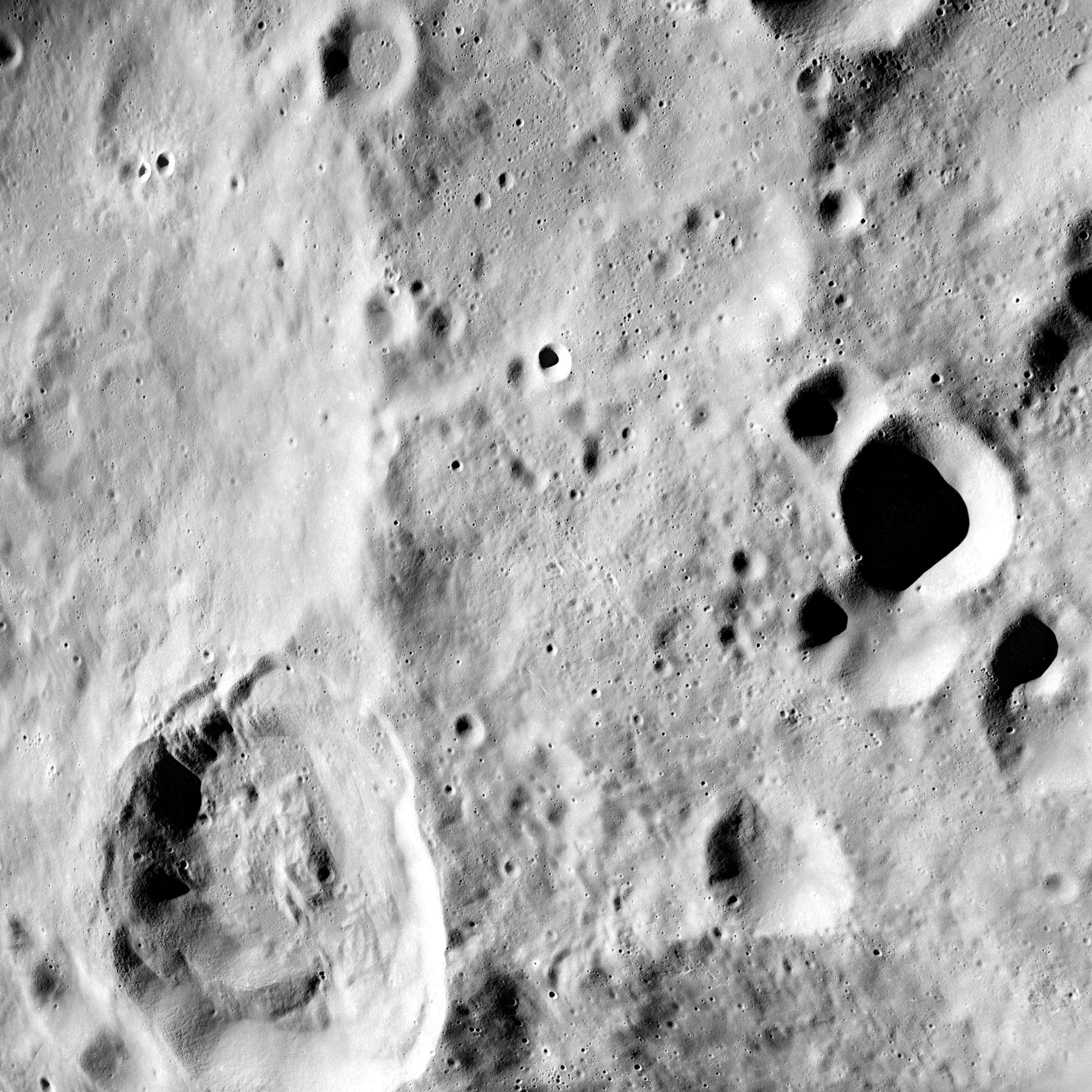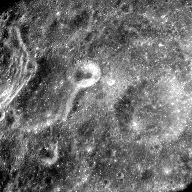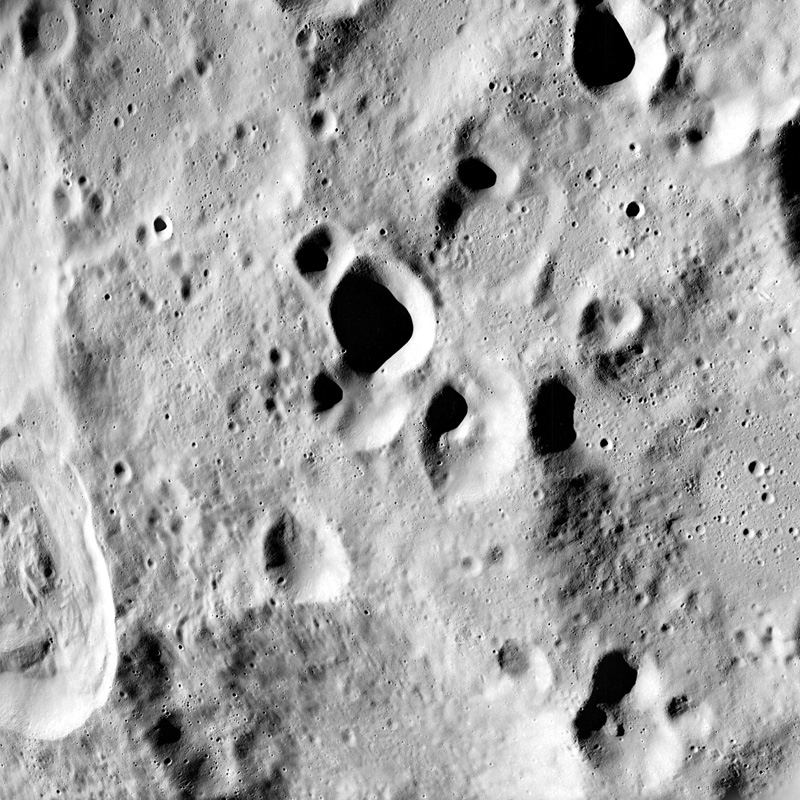 AS08-17-2691 263 kB or 2,147 kB Unnamed far-side craters southwest of crater Daedalus. Image credit: Image Science and Analysis Laboratory, NASA-Johnson Space Center. |