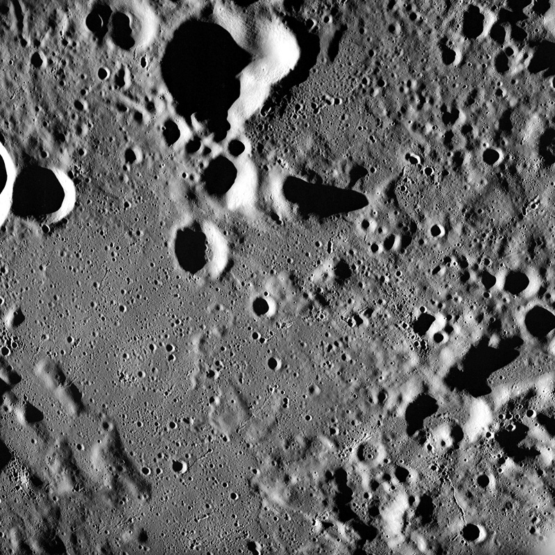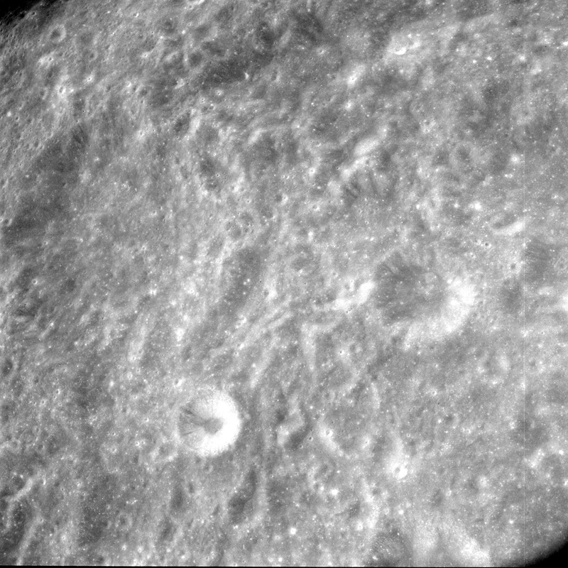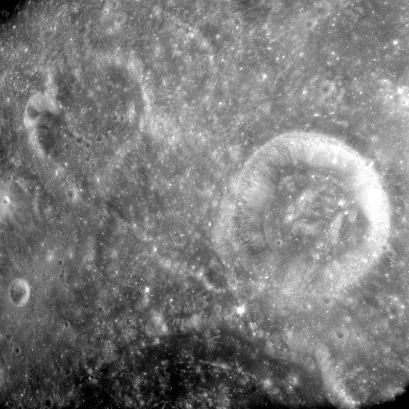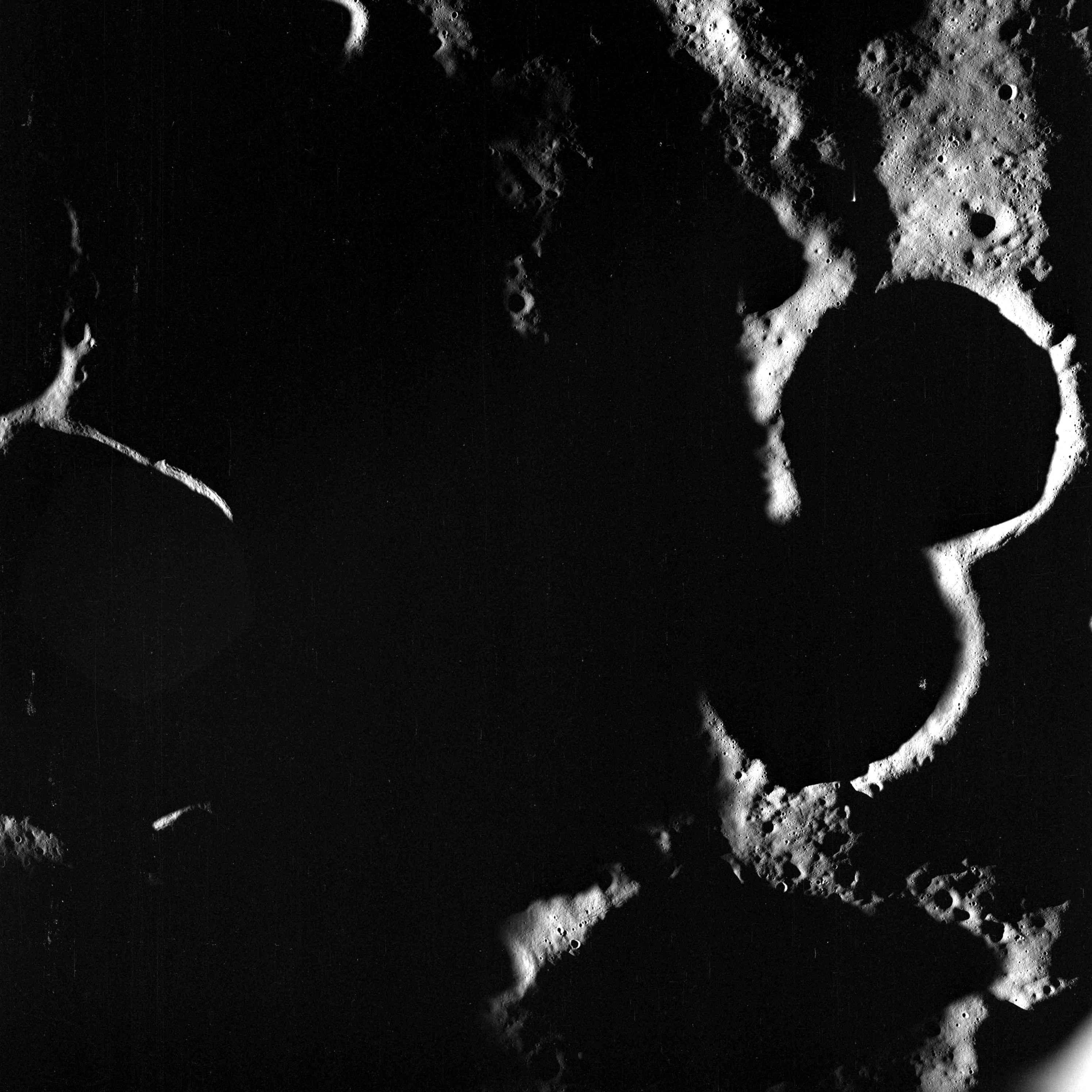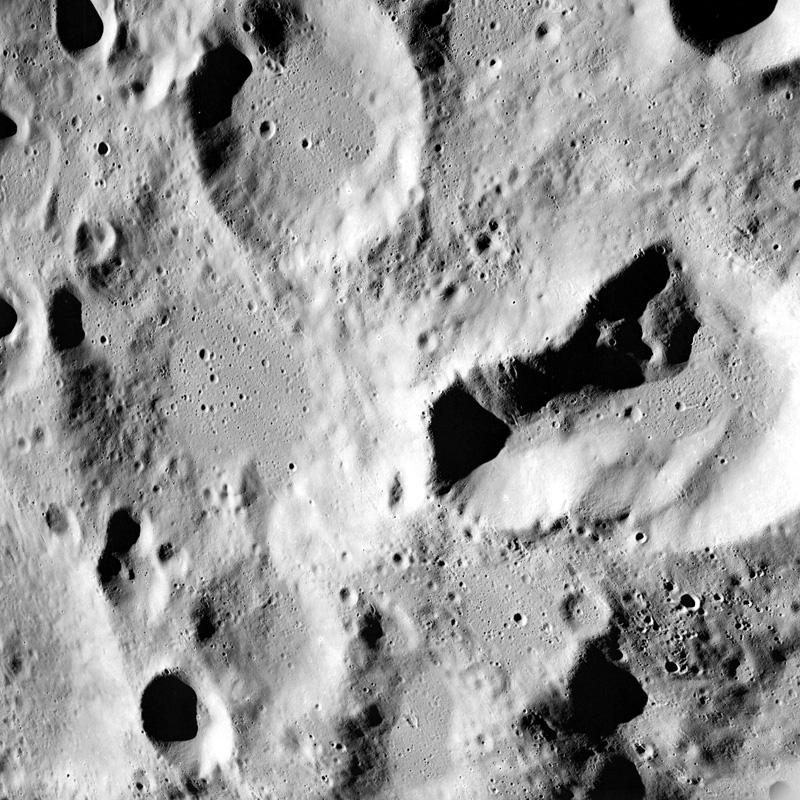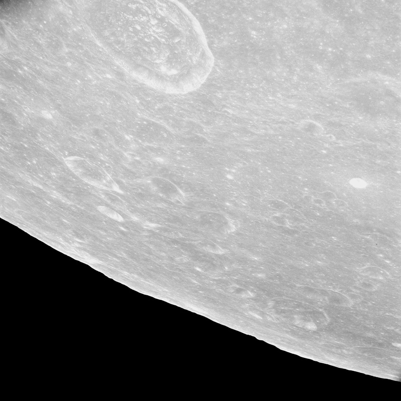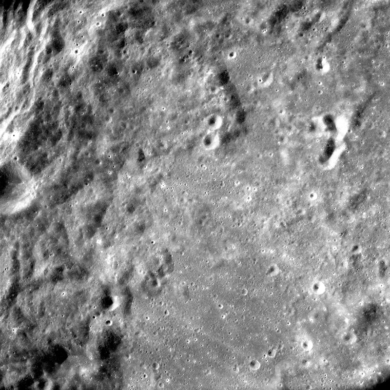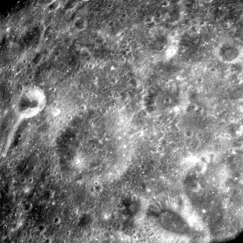 AS08-17-2691 263 kB or 2,147 kB Unnamed far-side craters southwest of crater Daedalus. Image credit: Image Science and Analysis Laboratory, NASA-Johnson Space Center. |