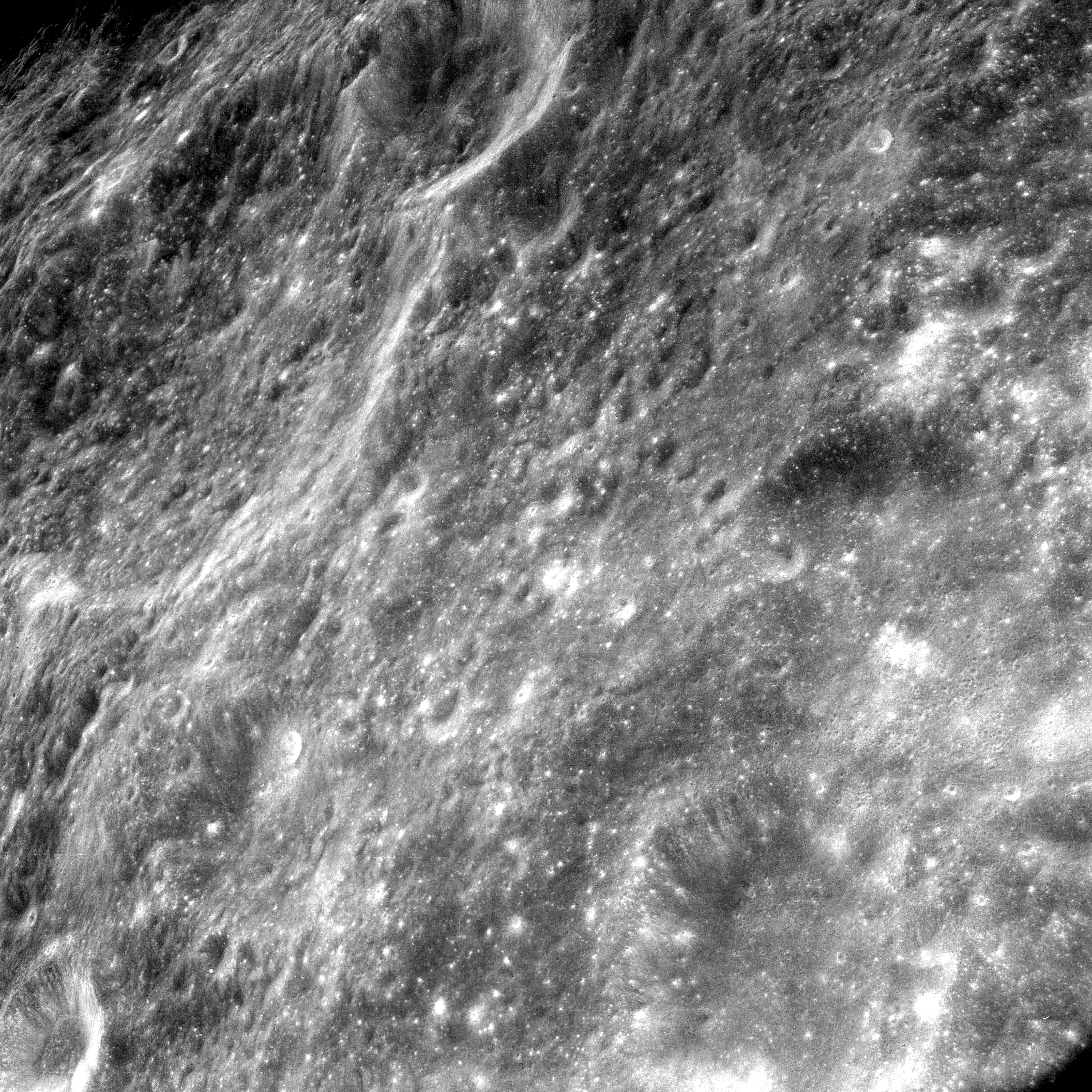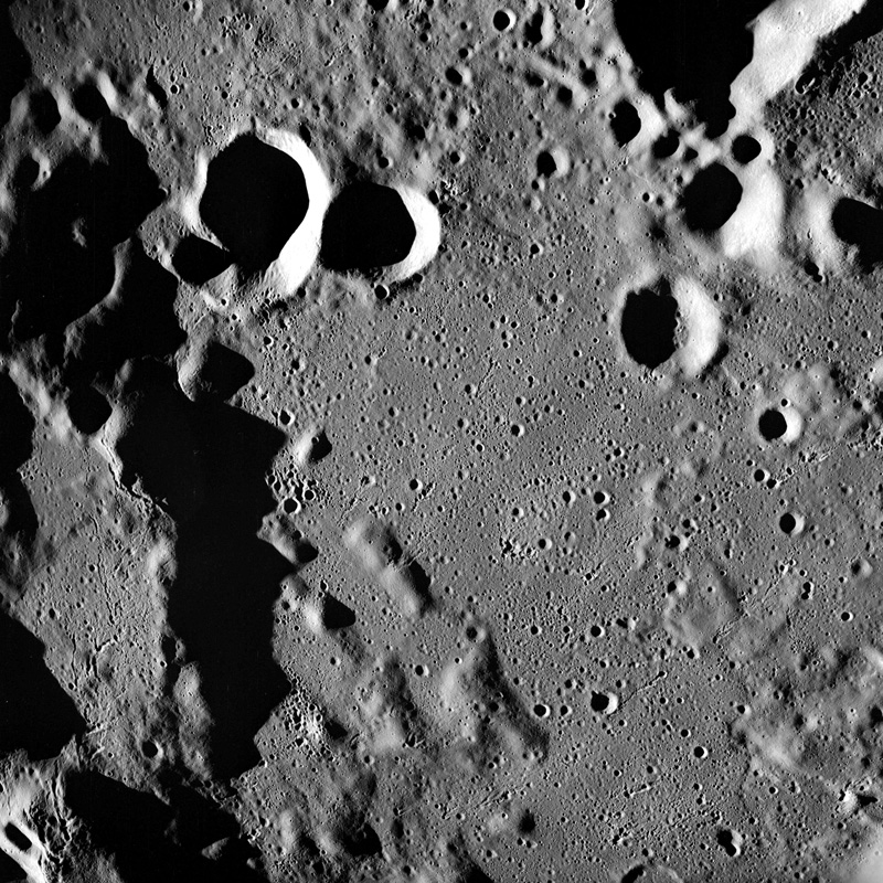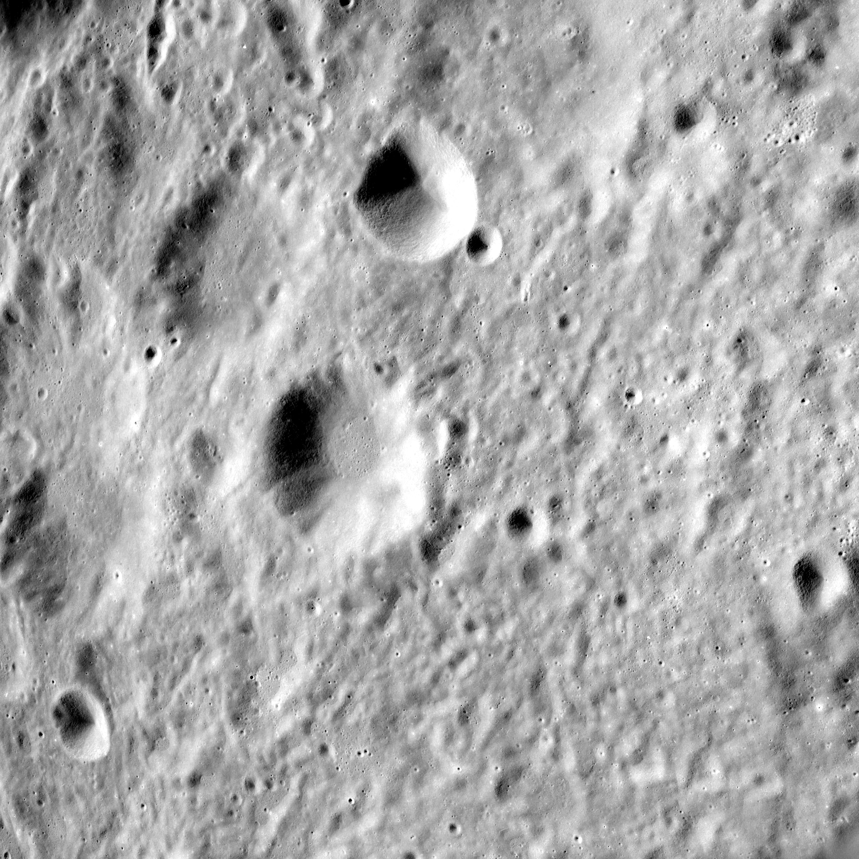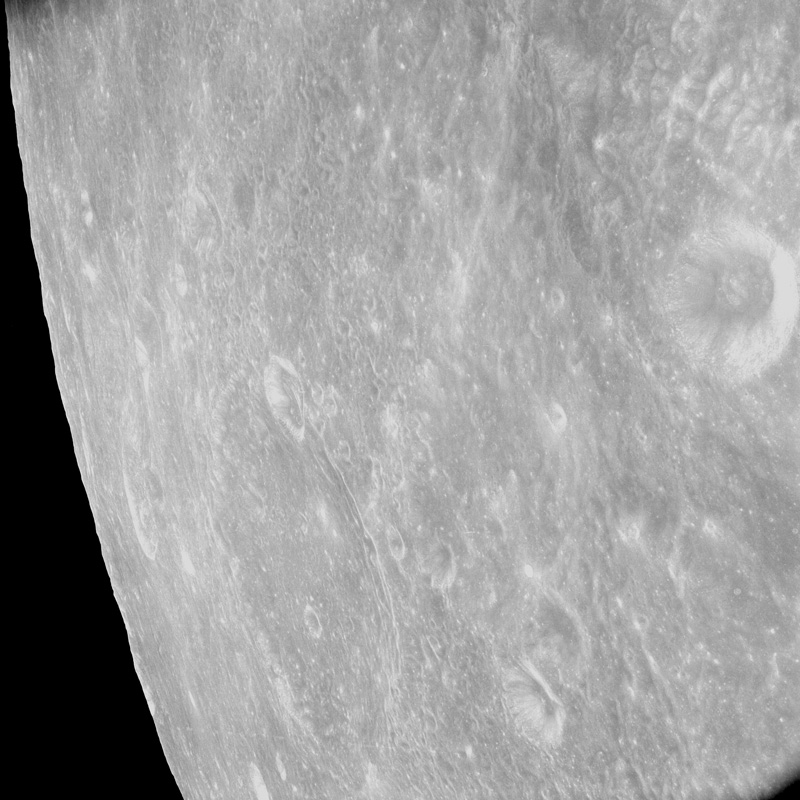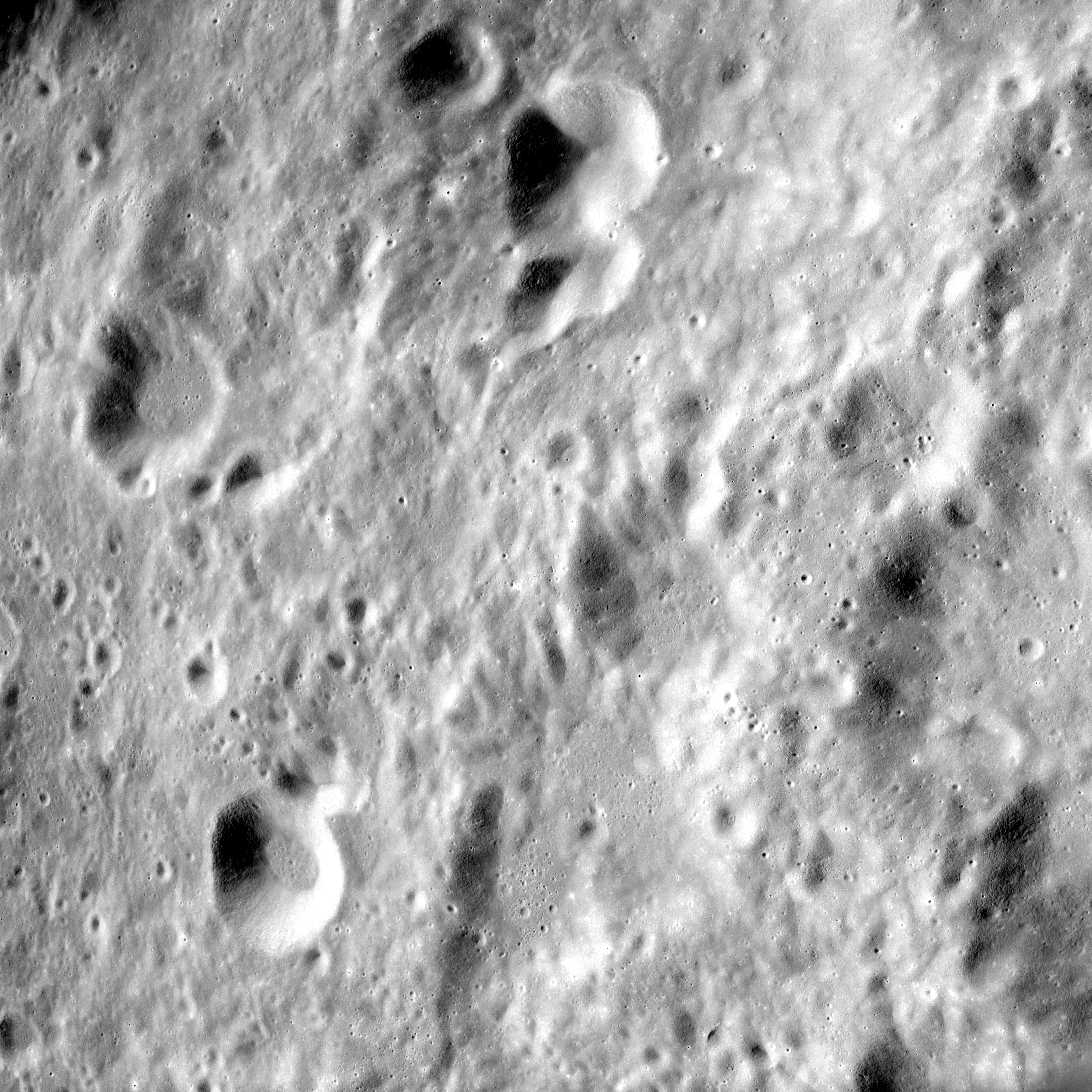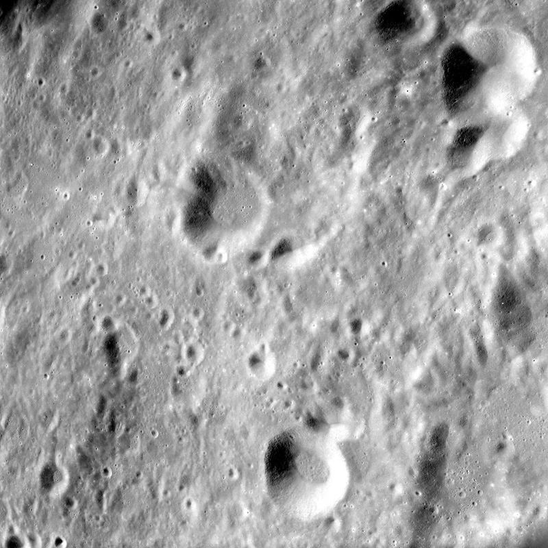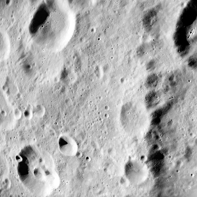 AS08-17-2691 263 kB or 2,147 kB Unnamed far-side craters southwest of crater Daedalus. Image credit: Image Science and Analysis Laboratory, NASA-Johnson Space Center. |
