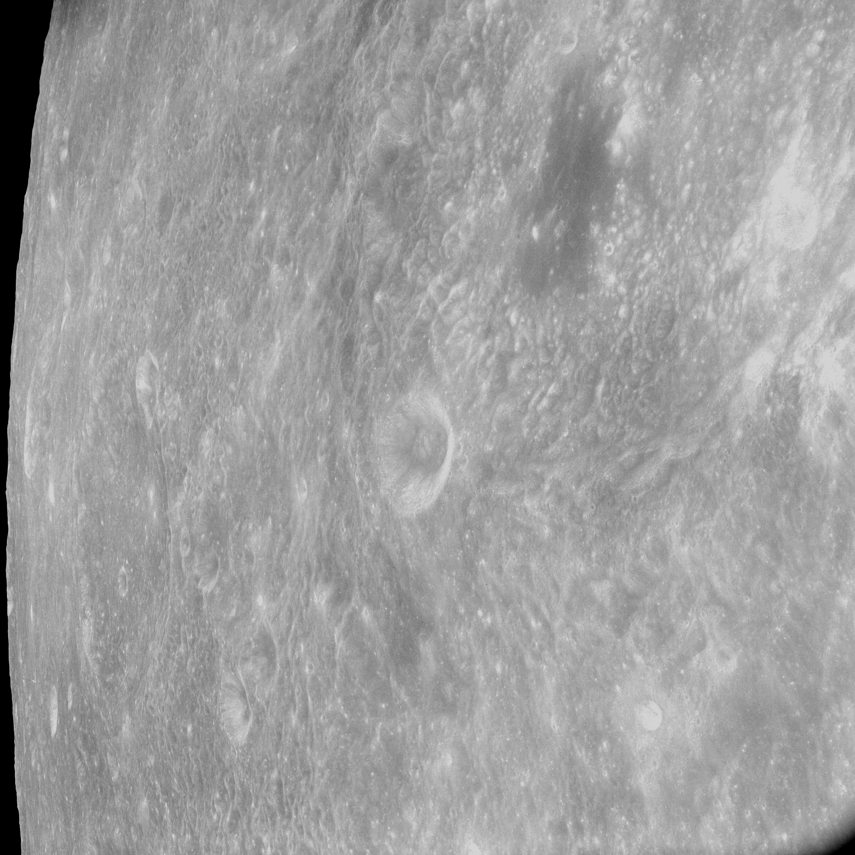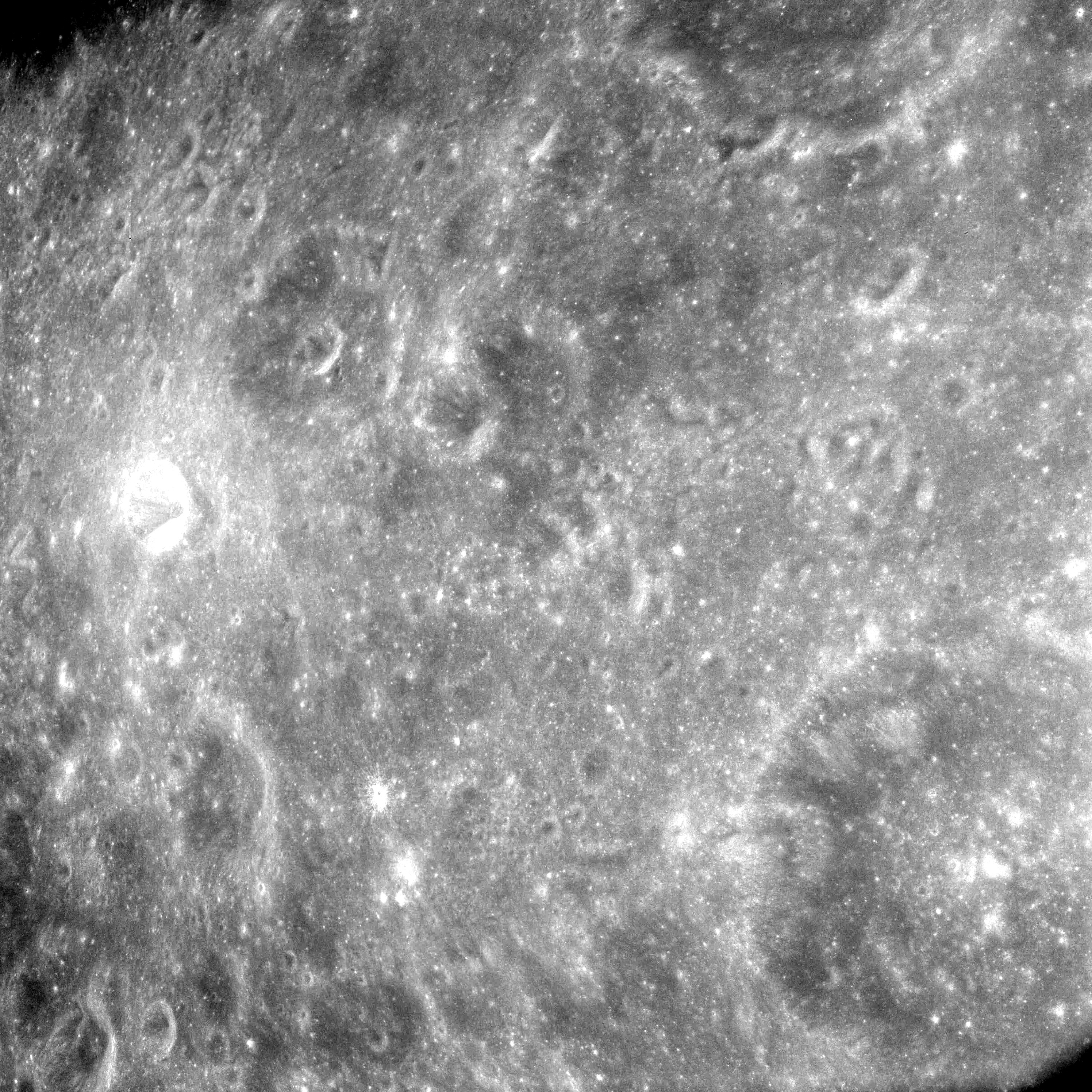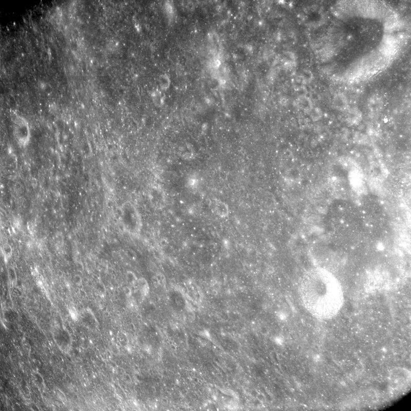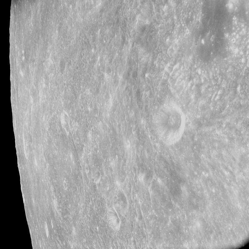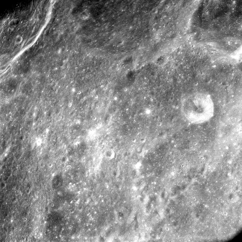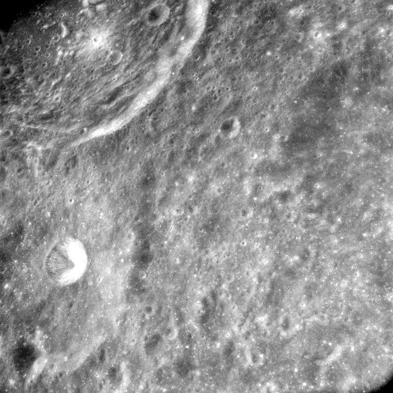 AS08-17-2681 269 kB or 2,096 kB Far-side Crater Amici T. This lies directly south of crater Icarus. Icarus Q is cut off top left. Image credit: Image Science and Analysis Laboratory, NASA-Johnson Space Center. |
