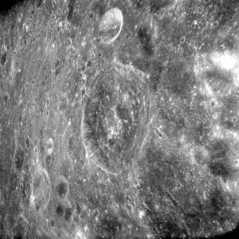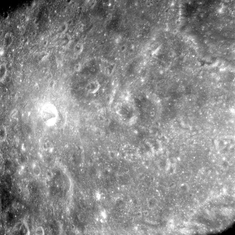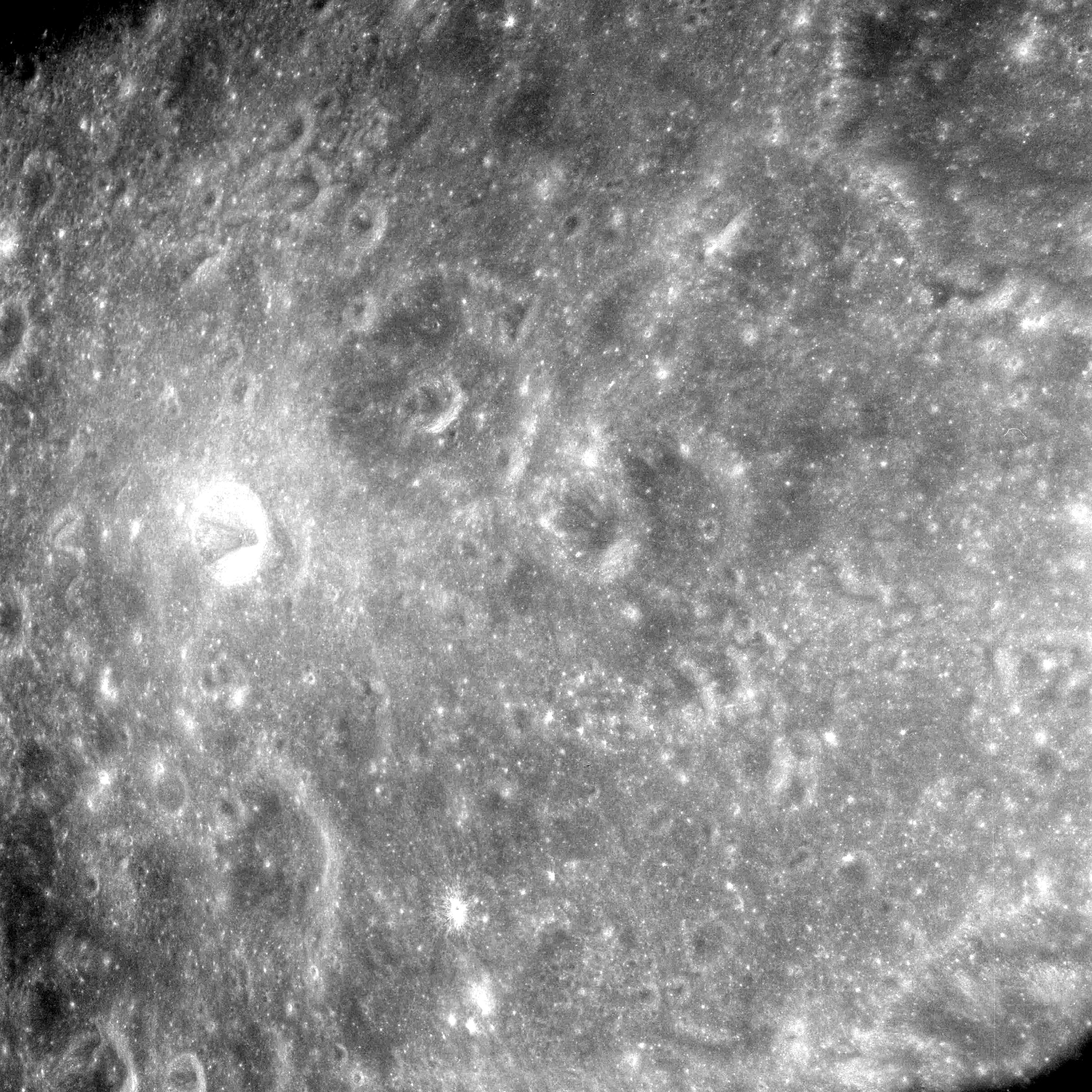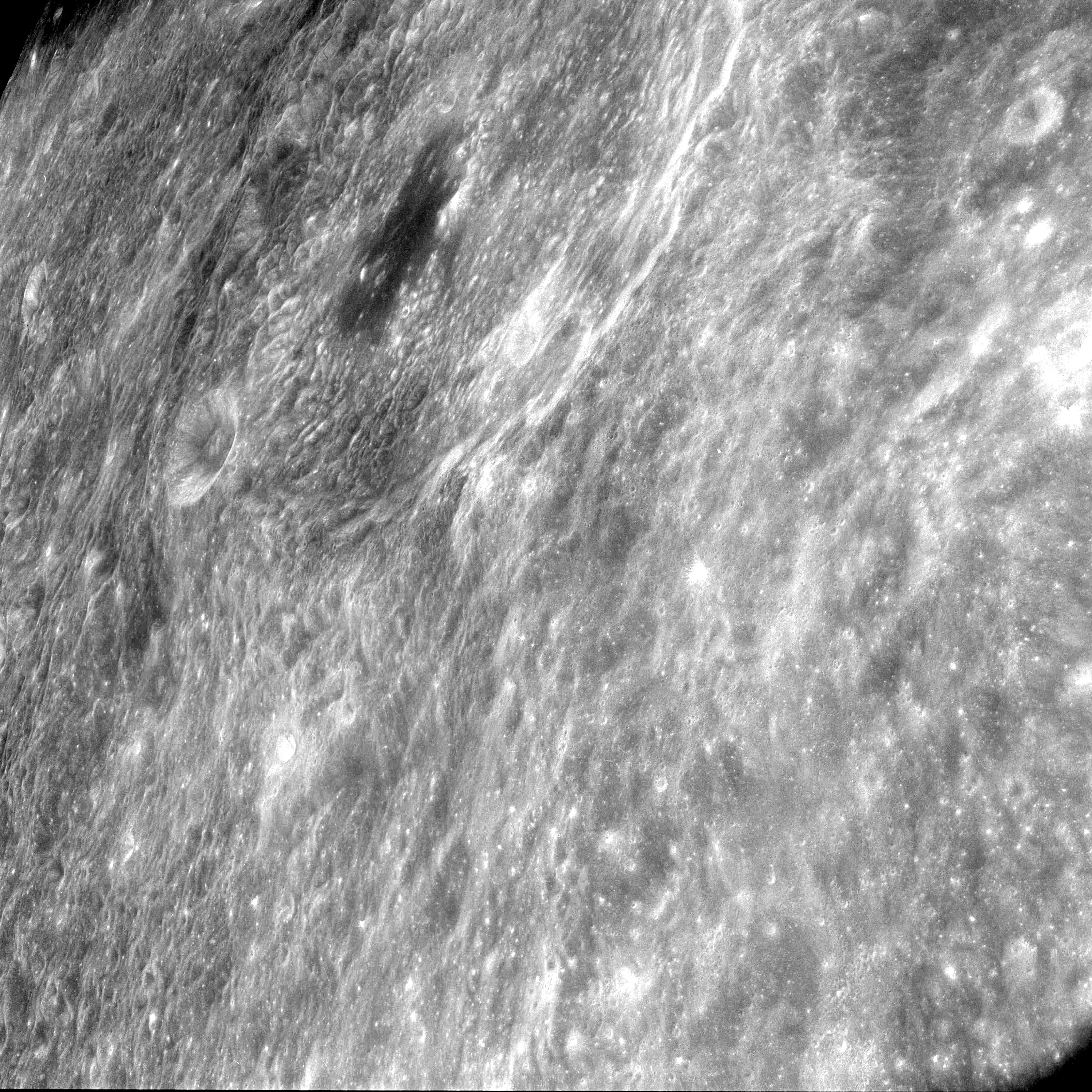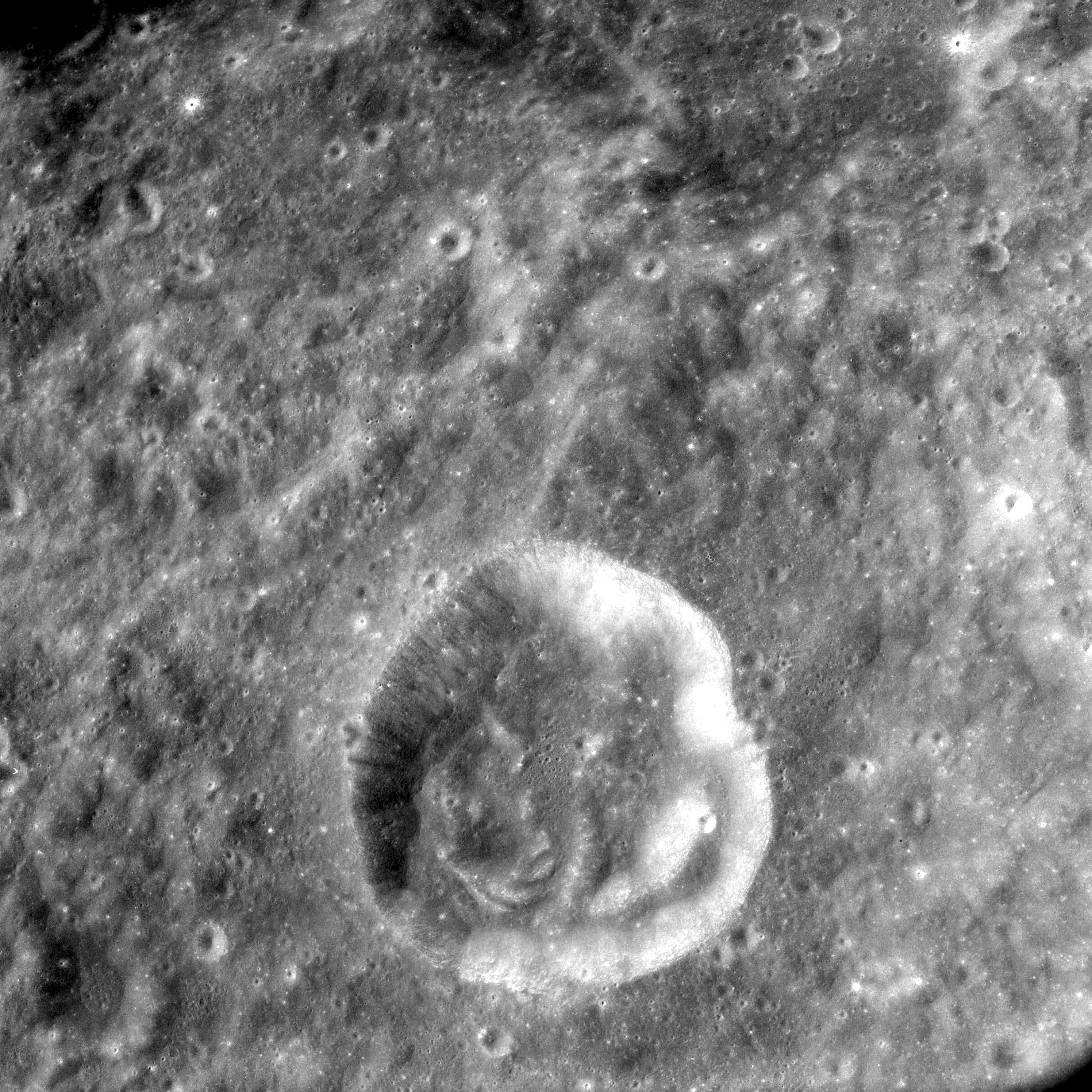 AS08-17-2681 269 kB or 2,096 kB Far-side Crater Amici T. This lies directly south of crater Icarus. Icarus Q is cut off top left. Image credit: Image Science and Analysis Laboratory, NASA-Johnson Space Center. |