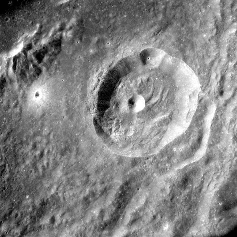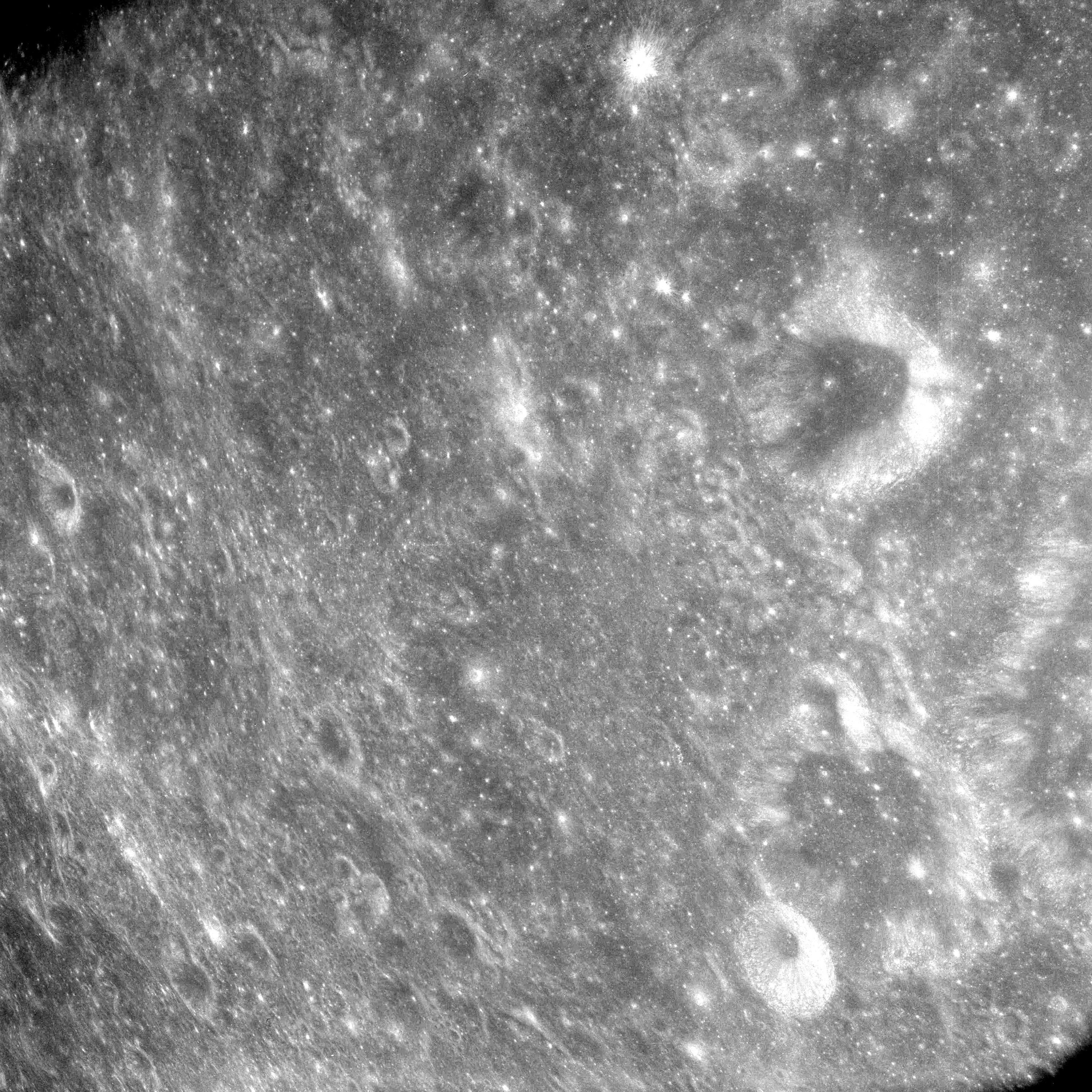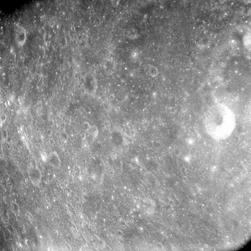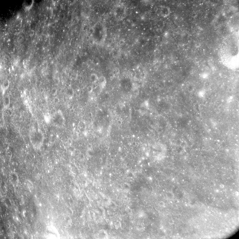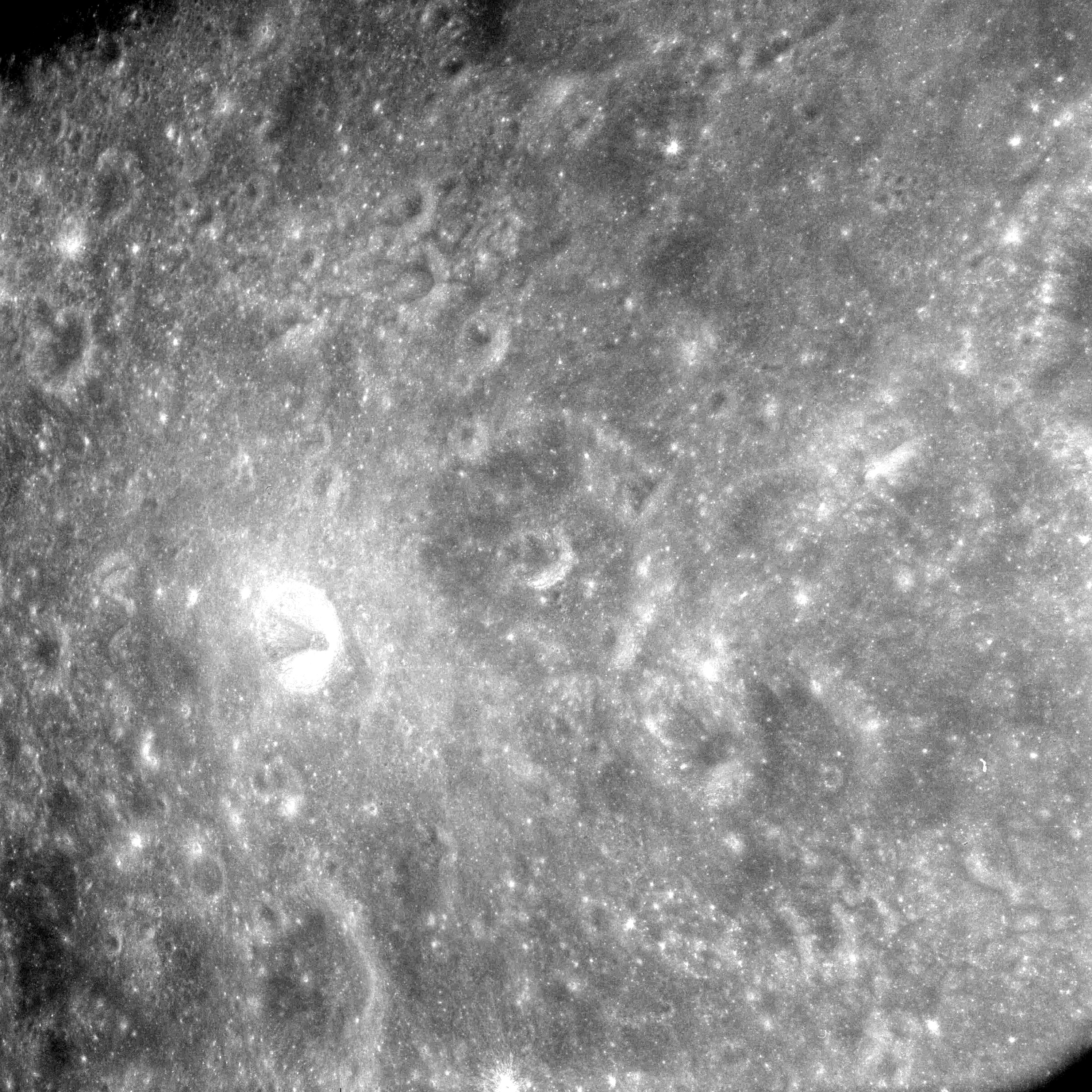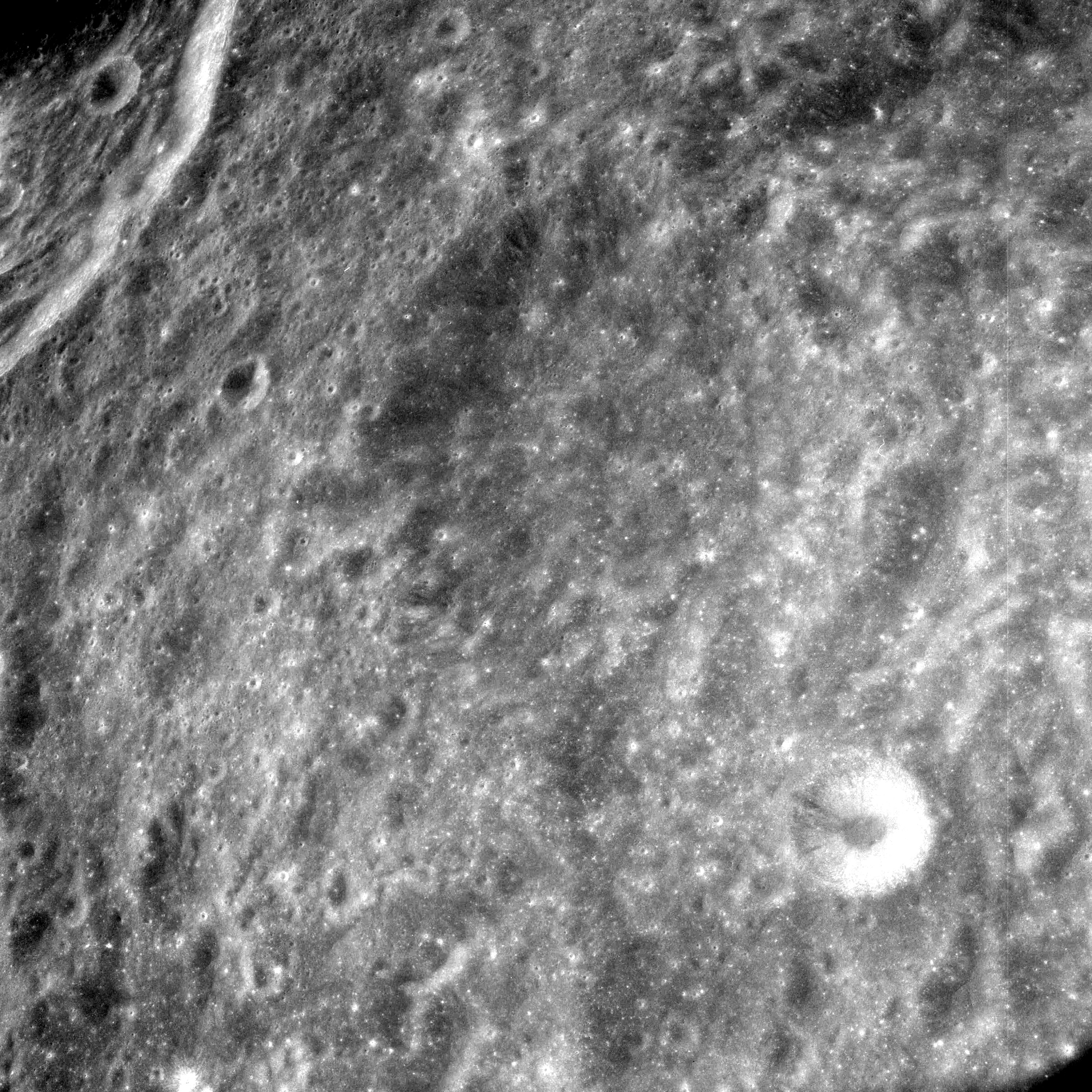 AS08-17-2681 269 kB or 2,096 kB Far-side Crater Amici T. This lies directly south of crater Icarus. Icarus Q is cut off top left. Image credit: Image Science and Analysis Laboratory, NASA-Johnson Space Center. |