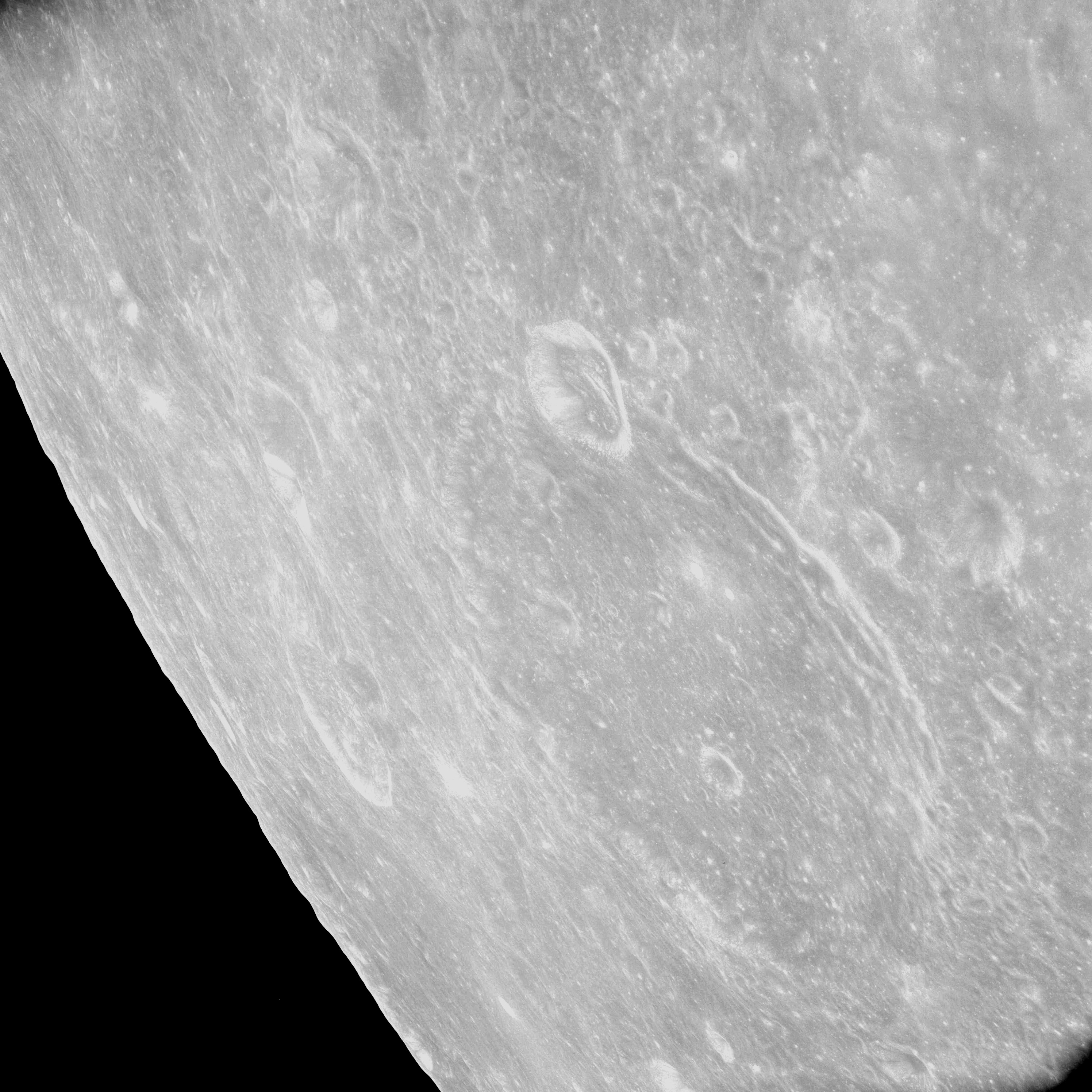AS08-17-2670 330 kB or 2,415 kB Western rim of the far-side multi-ring basin Korolev. Image credit: Image Science and Analysis Laboratory, NASA-Johnson Space Center. |