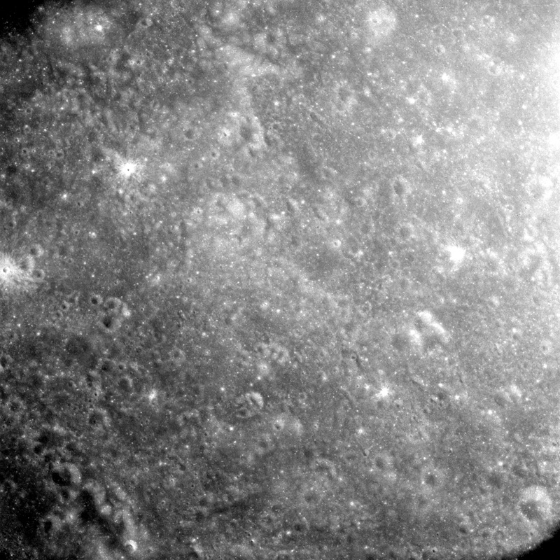 AS08-17-2827 415 kB or 2,921 kB Crater cluster within the western floor of far-side multi-ring basin Korolev. Image credit: Image Science and Analysis Laboratory, NASA-Johnson Space Center. |