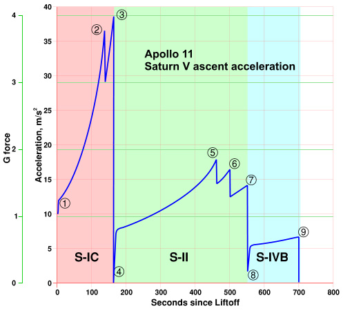 On the S-II, the strategy was for most of the burn to be made at a high MR of 5.5:1 which also yielded the stage's maximum thrust. Once a specific velocity had been reached, which occurred 5 minutes, 31.8 seconds after the engines were commanded to start, the MR for the remaining four engines was reduced to 4.34:1 for the rest of the burn. The effect of this was two-fold: it reduced the thrust from the stage by a quarter but it also increased the specific impulse and therefore the efficiency of the engines. If engineers had the timing of the MR change right, the intention was that both the LH2 and LOX tanks should both be as close as possible to depletion when sensors indicated it would be prudent to shut down the stage.