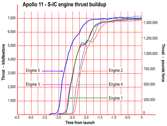 As the thrust of each second stage engine reaches 65 per cent, it causes its indicator light on the Main Display Console to be extinguished.