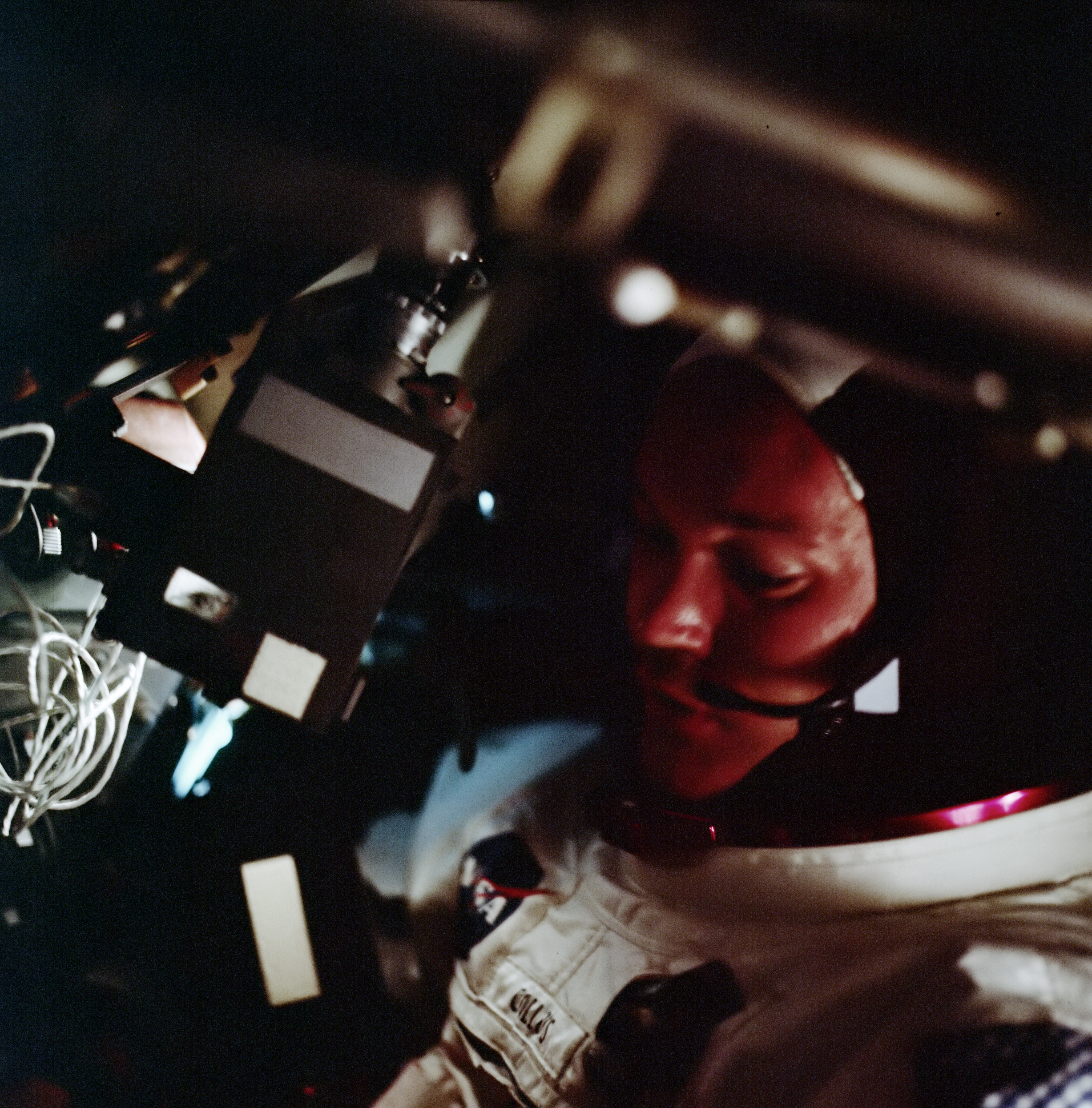 000:30:39 Collins (onboard): Alright, Buzz, here's one Hasselblad for you. Coming around the right-hand couch.