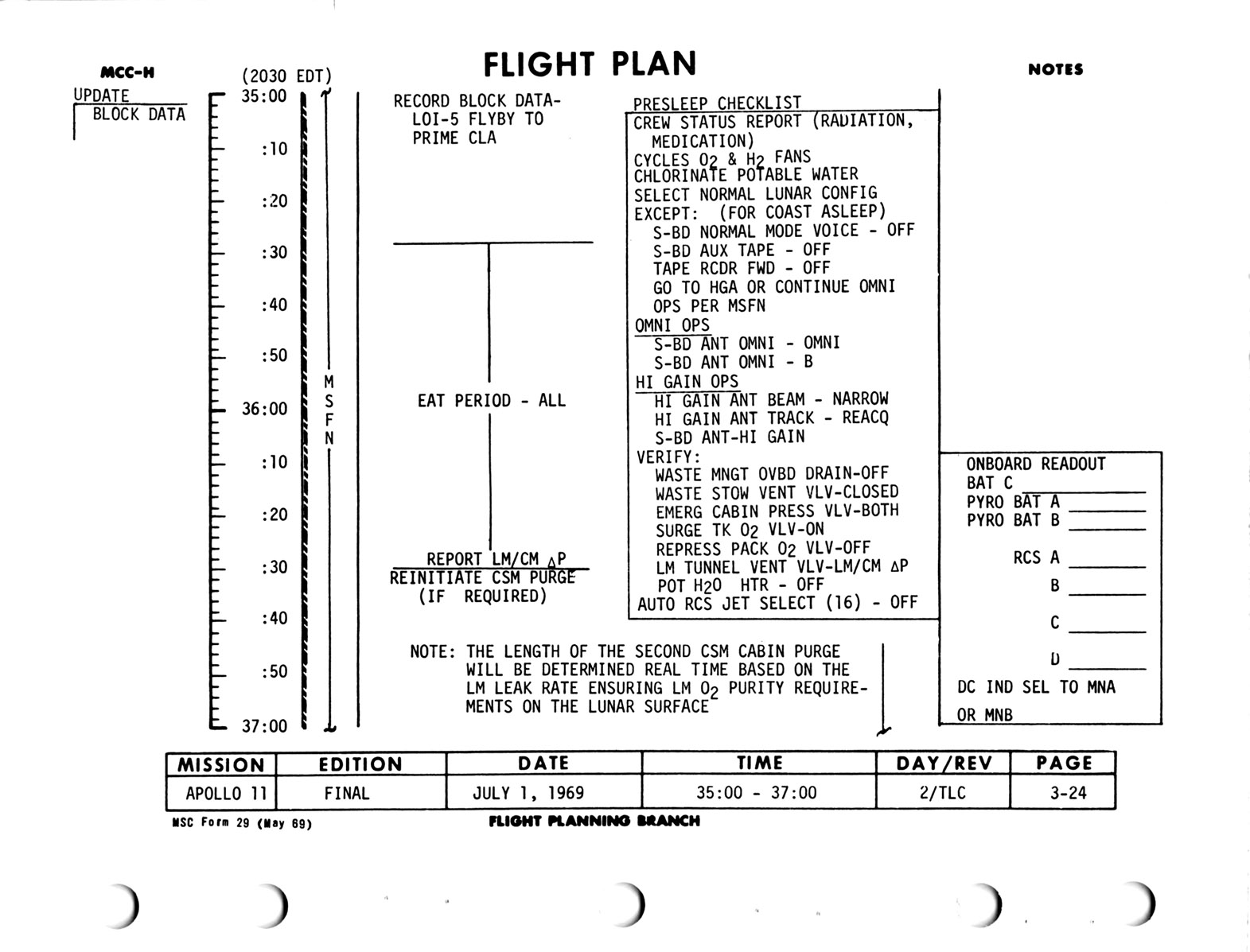 035:08:50 Duke: And Apollo 11, Houston. We have your fly-by PAD if you're ready to copy. Over.