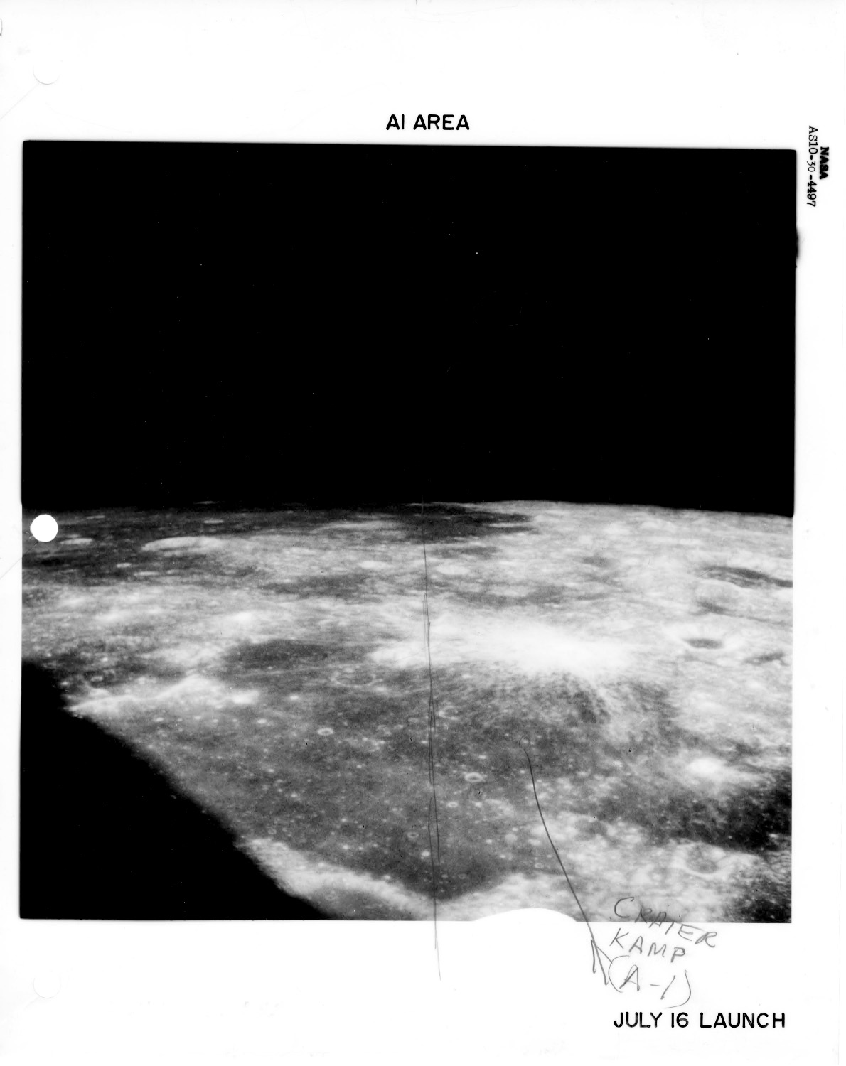 086:08:12 Armstrong (onboard): You got a crater coming up, Buzz? Right through here. I don't know if you can see it or not. If not, let me get a picture of it because it's really - got big [garble] on the bottom of it. It don't look good.