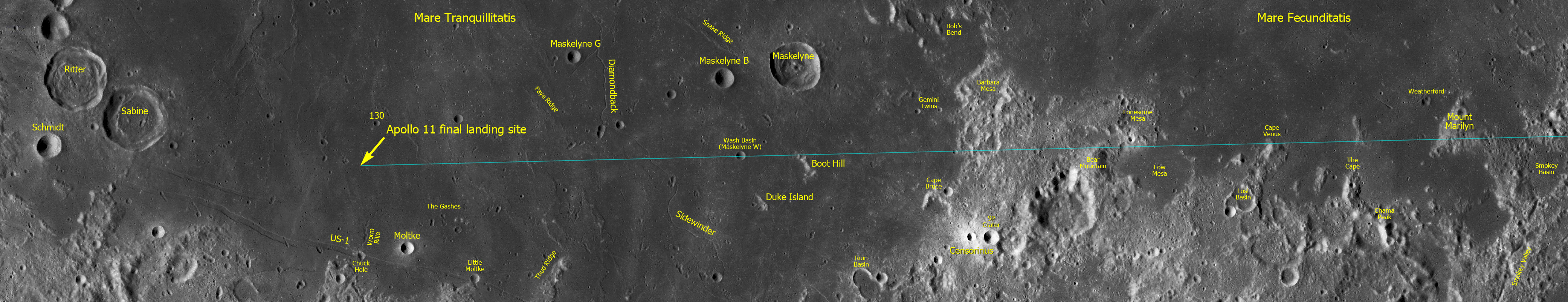 080:57:06 Armstrong: It isn't true everywhere, but there's certainly places where there seems to be a slope downward towards the shoreline on the mare. In other words, from the mare down to the shoreline is a downward slope indicating that it might be a lava front.