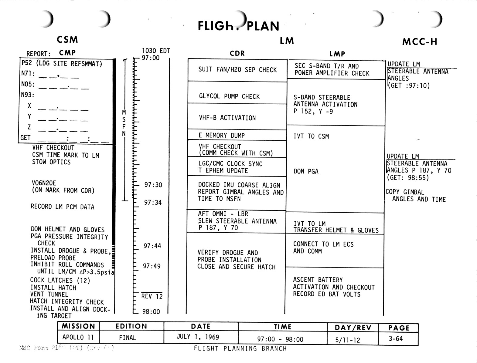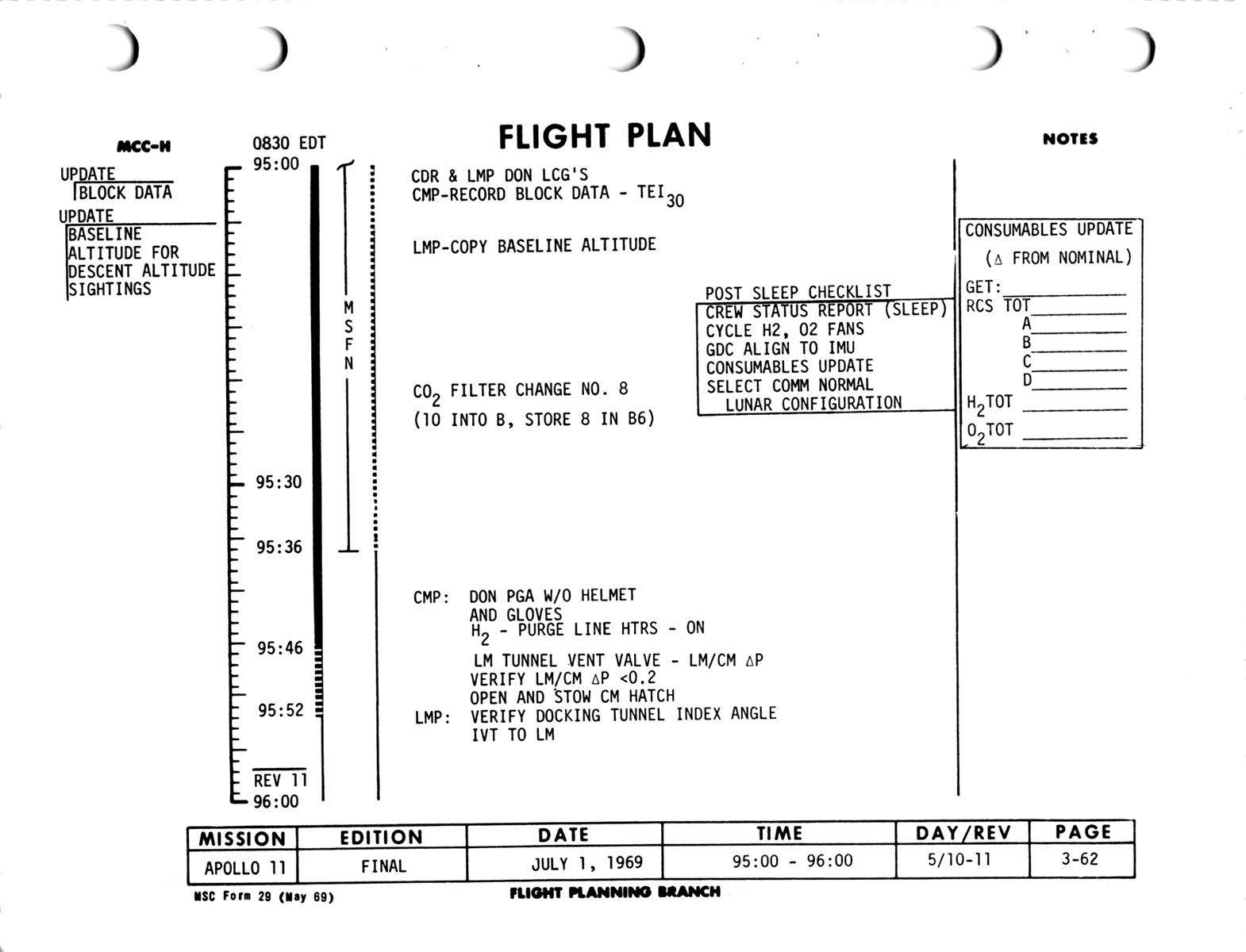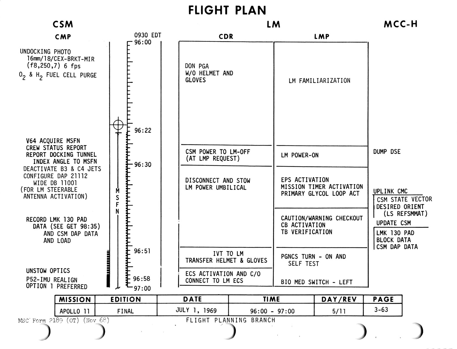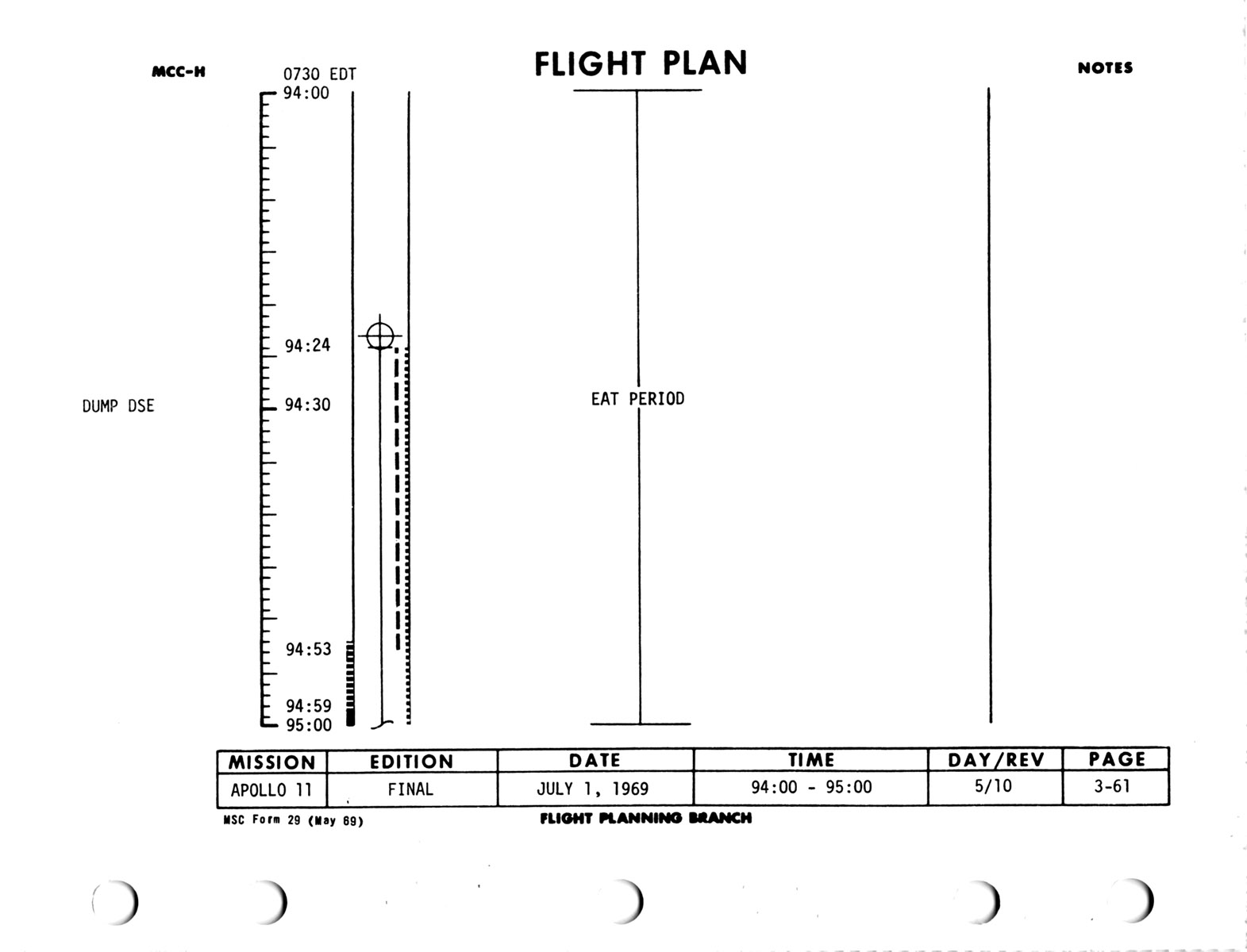 094:16:51 Collins (onboard): Now I can take care of all that stuff in the Flight Plan. I'm trying to get breakfast out of the way.