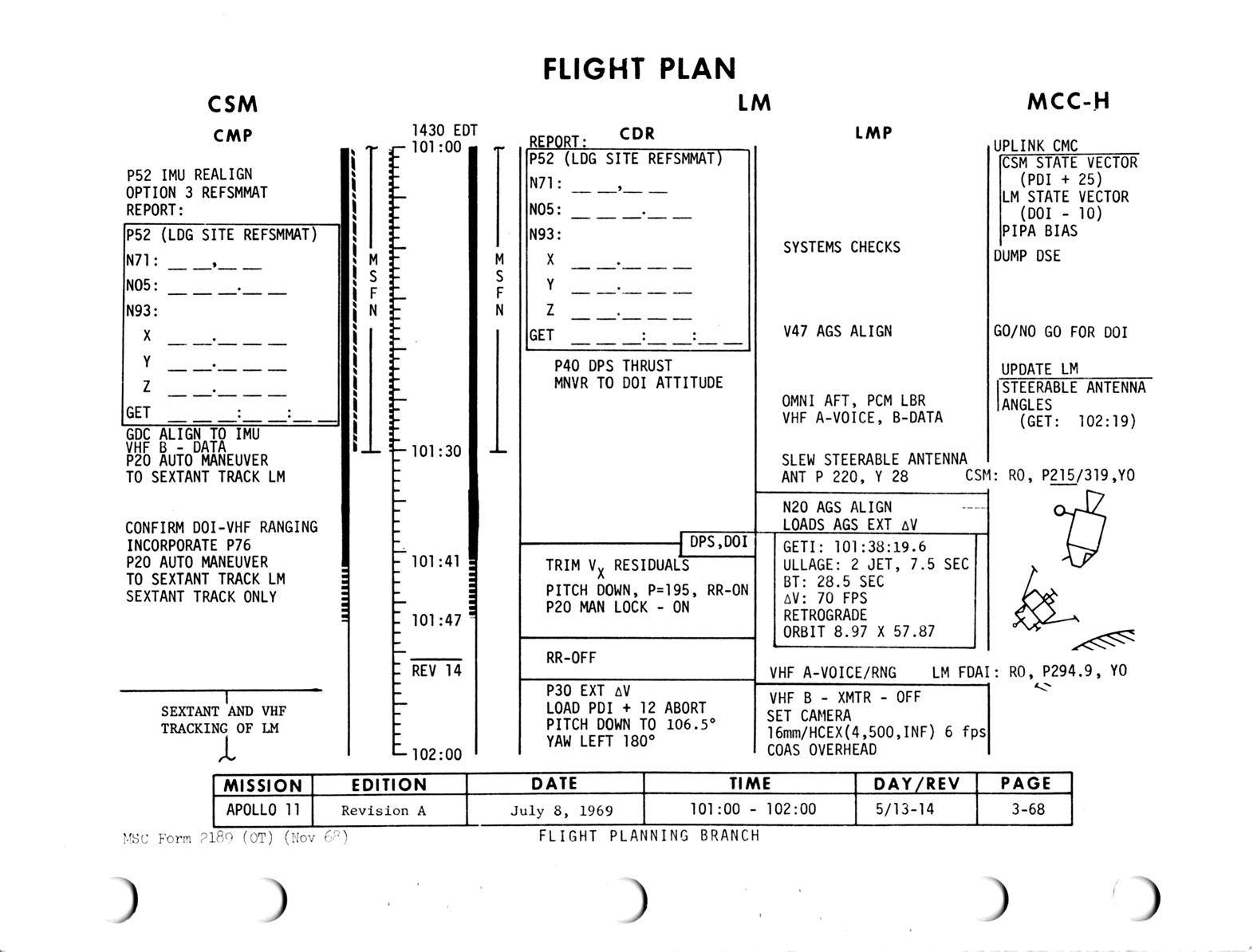 099:42:23 Collins (onboard): I'm surprised they didn't update it by 3 or 4 minutes to, you know, make that Delta-V be in the same position that they wanted.
