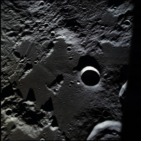 This part of the transcript commences as Apollo 11 passes behind the Moon on its last orbit before undocking. It re-emerges as two separate spacecraft with their own call signs, Columbia and Eagle. They make one further lunar orbit, then the Eagle enters its descent orbit by firing its main engine behind the Moon. This section of the transcript ends with the spacecraft re-appearing from behind the Moon, prior to the Eagle making its final descent and the first lunar landing in the Sea of Tranquillity, an account of which is continued in the Apollo Lunar Surface Journal.