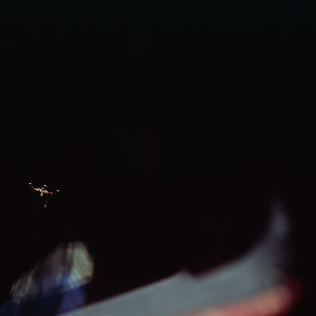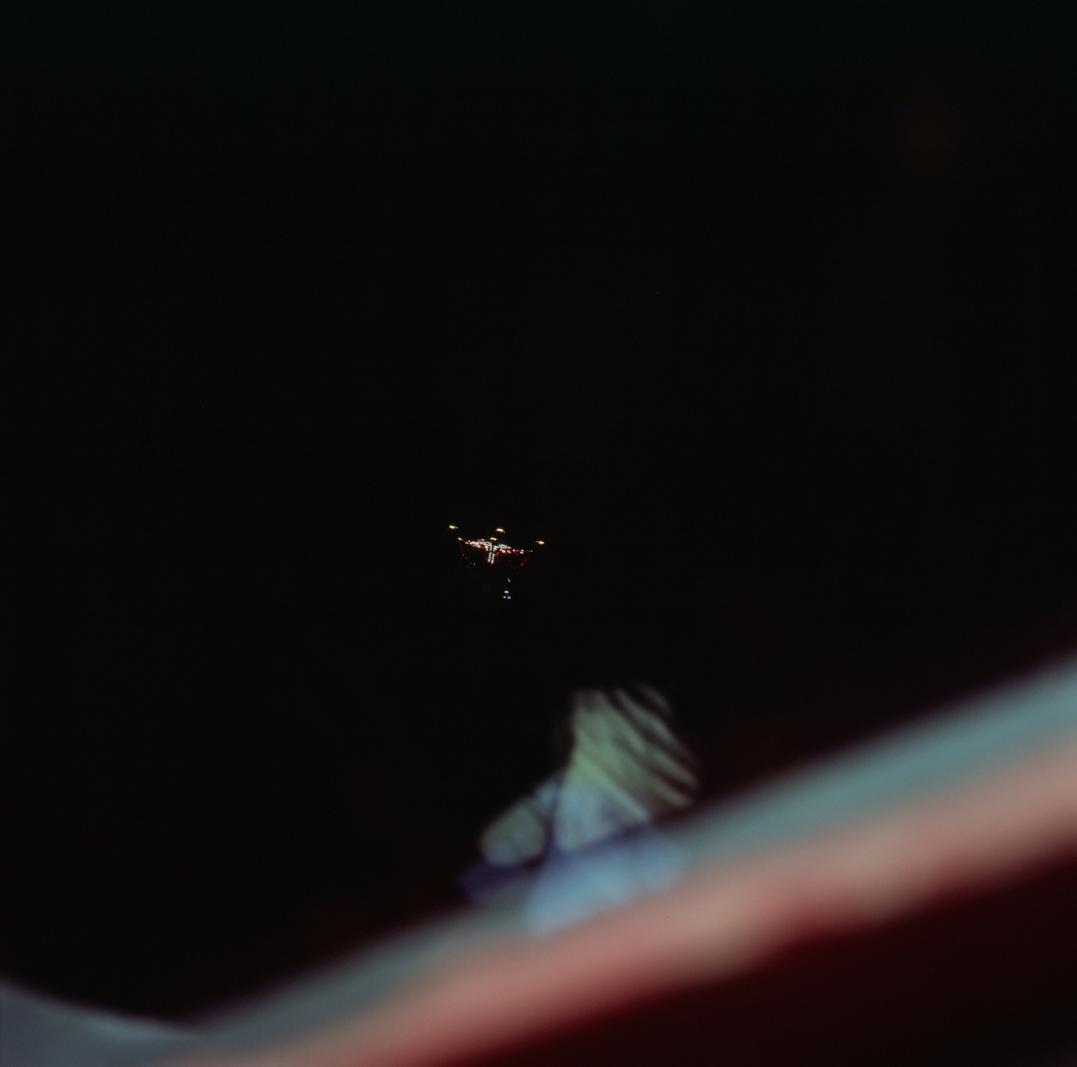 Simultaneously with his cine filming, Mike takes a sequence of 36 stills of the undocking on the Hasselblad camera with magazine V. This is also loaded with Ektachrome-type colour reversal film known as SO-368.