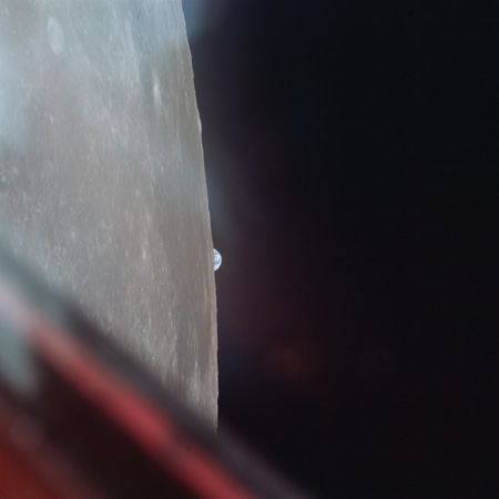 Being in a higher orbit, Columbia regains contact with Mission Control first. Eagle is now flying faster in its lower descent orbit, dropping towards the surface. Although somewhat closer to Earth than Columbia, Eagle is more closely hugging the surface and remains hidden behind the Moon for almost two minutes longer.