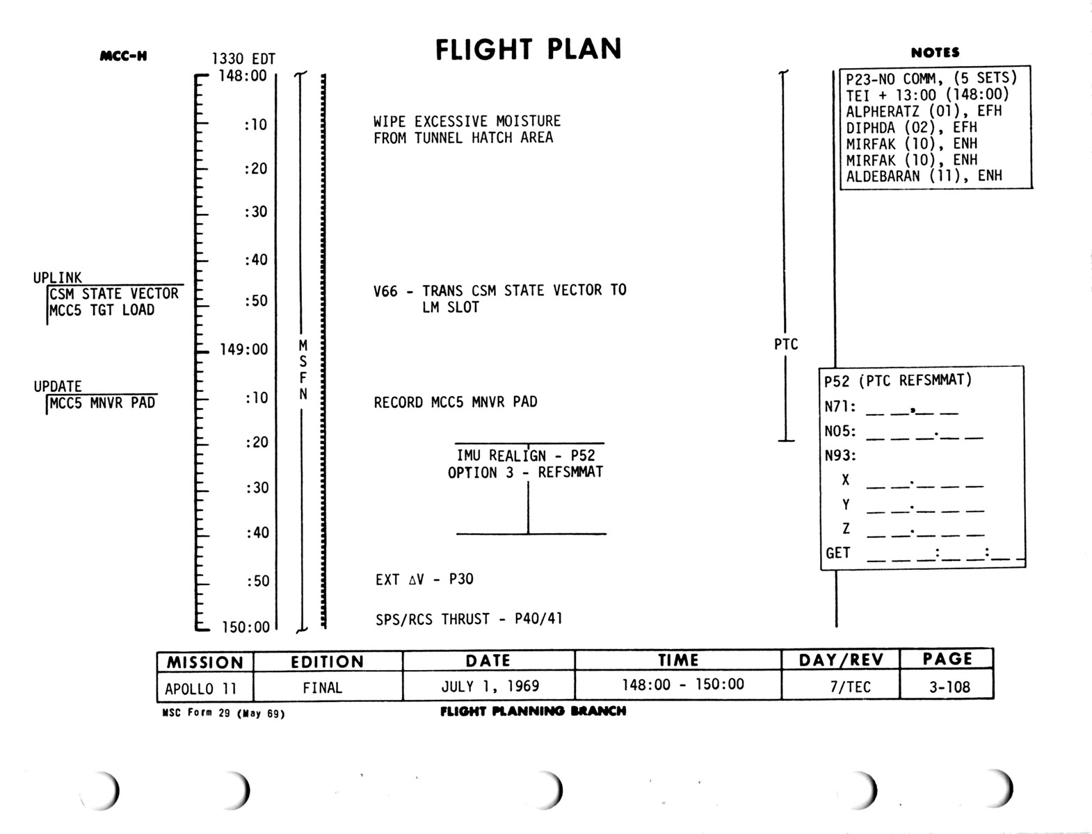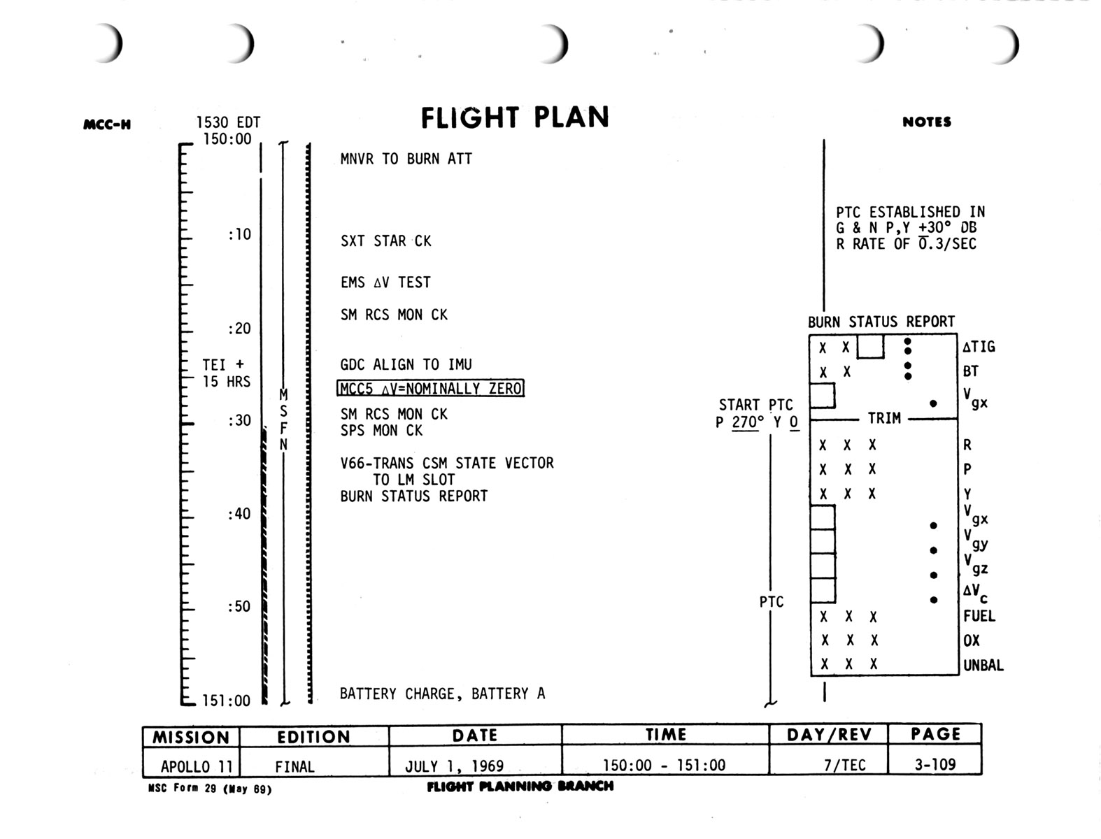 148:50:48 McCandless: Apollo 11, this is Houston. I have your Midcourse Correction 5 PAD available when you're ready to copy.