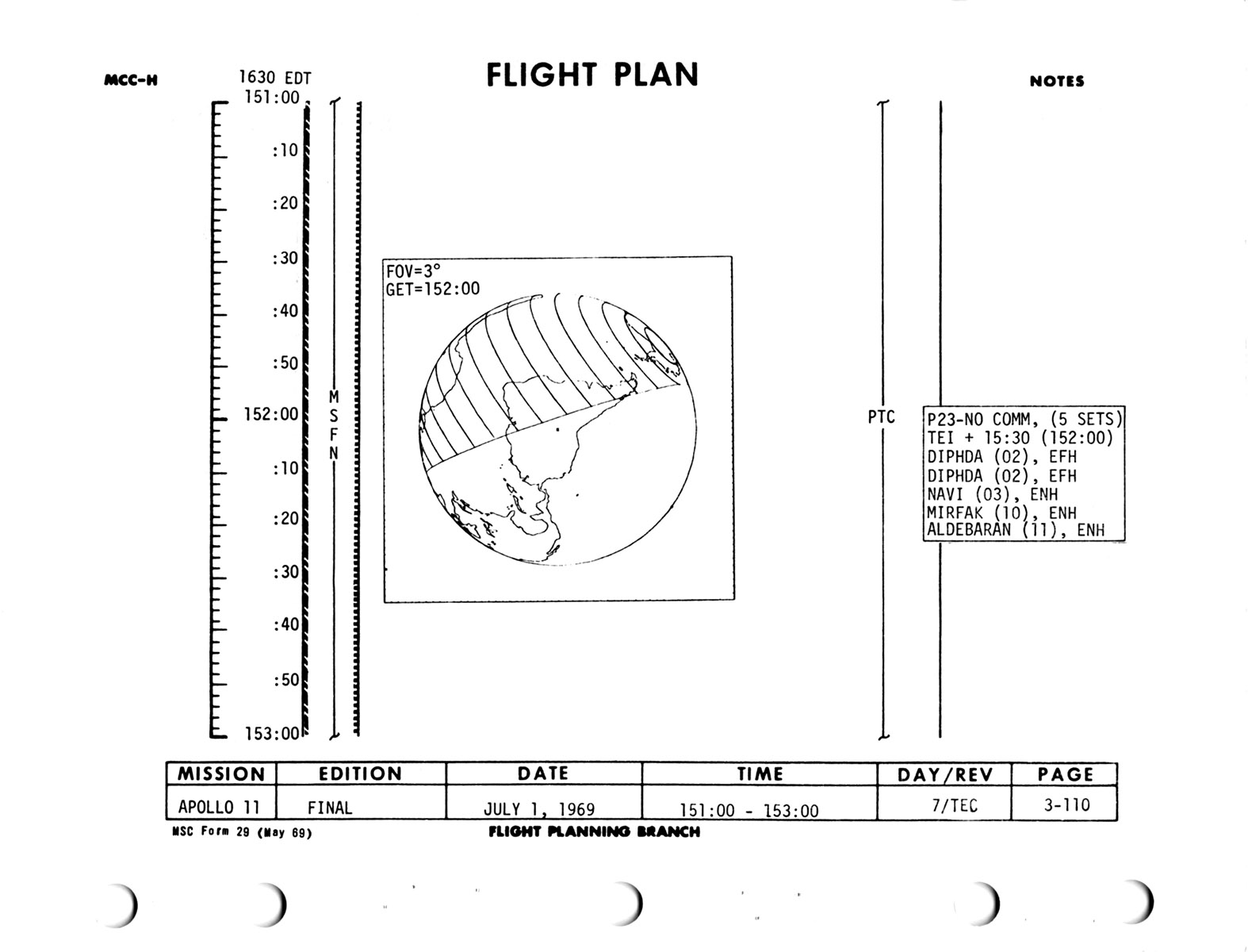 153:34:14 McCandless: Roger. And if you would, when you're making your DSKY entries to set up for PTC, go a little slower, and we'll try to follow each entry from down here. Over.