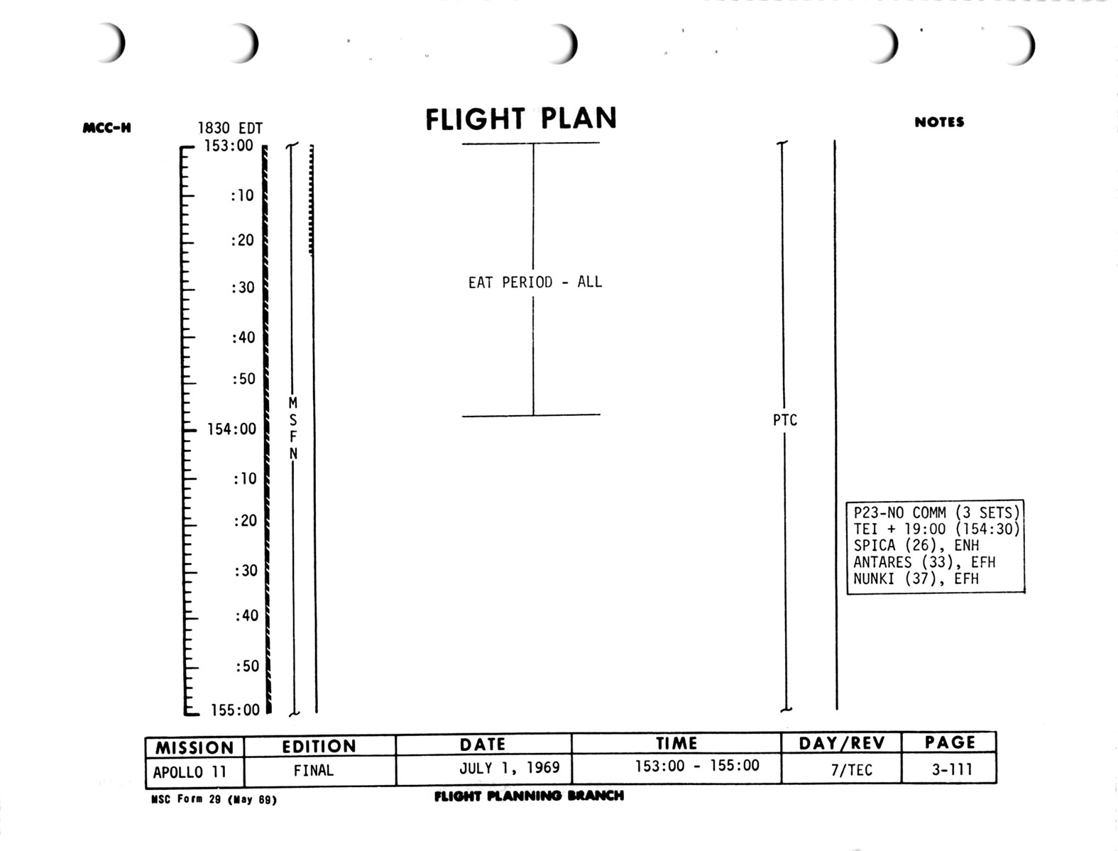 153:45:42 Duke: Hello, Apollo 11, Houston. Your White Team is now on. We're standing by for an exciting evening of TV and a pre-sleep report. Over.