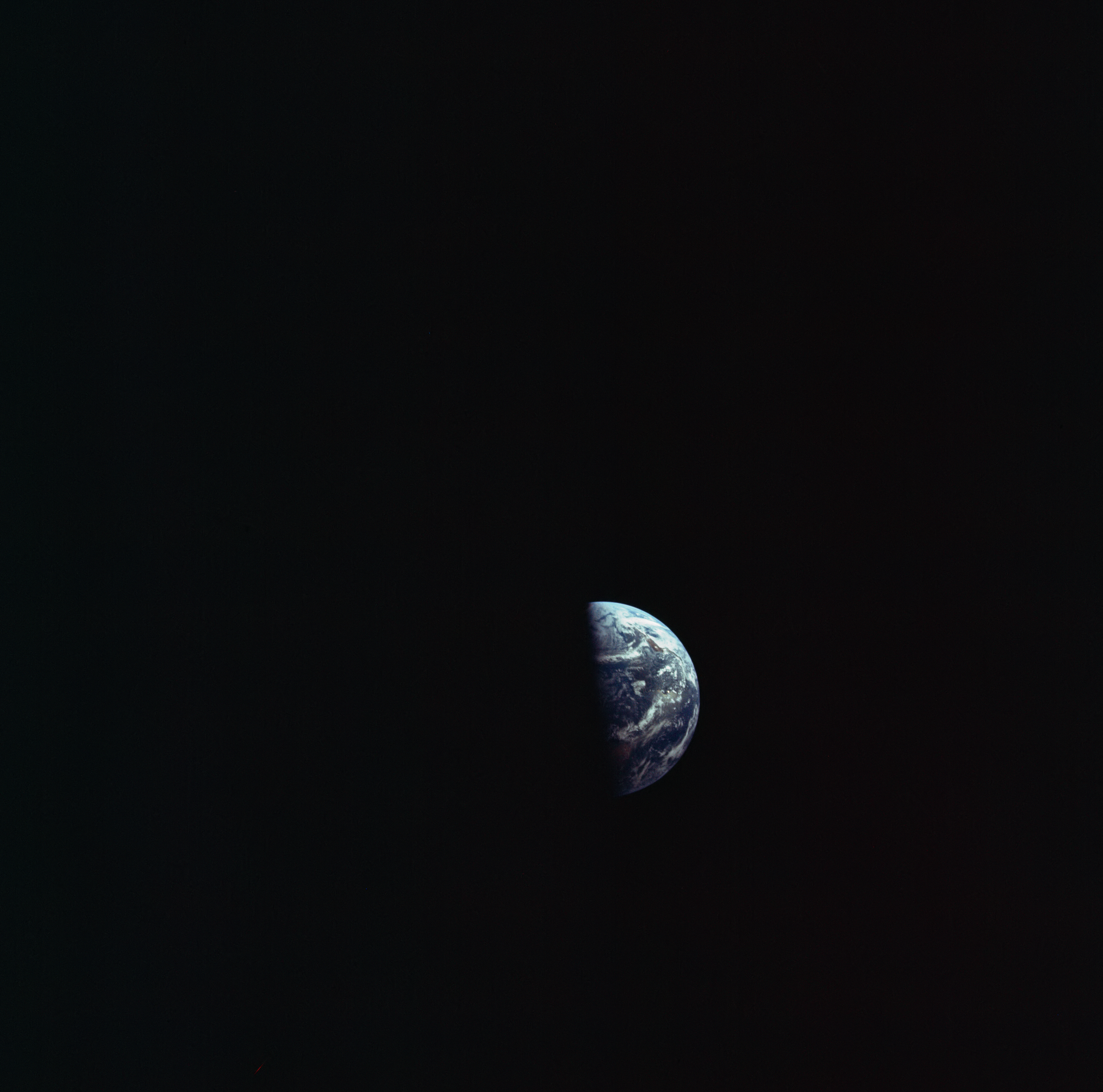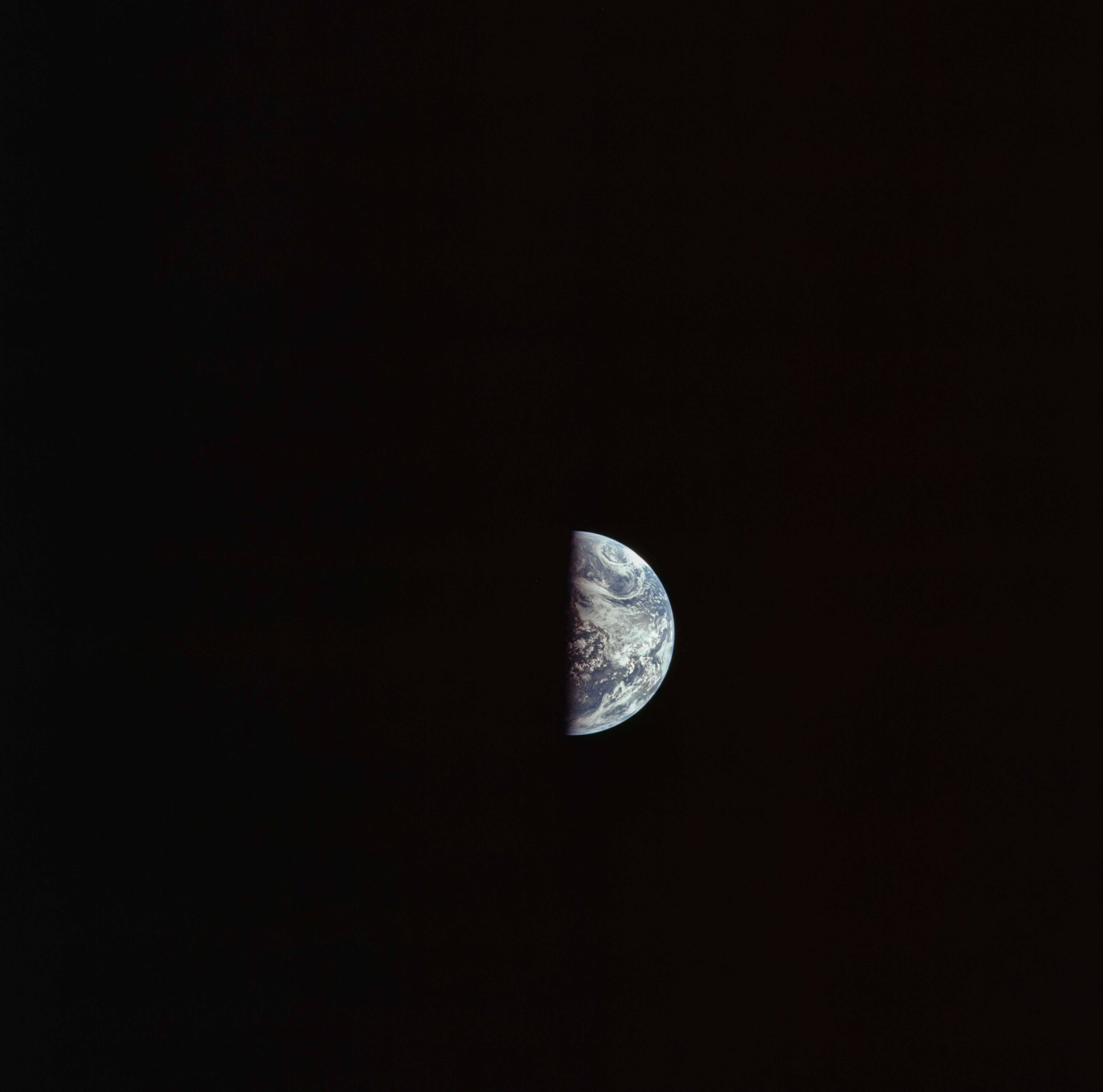 152:48:29 Collins: Nice to sit here and watch the Earth getting larger and larger and the Moon smaller and smaller.