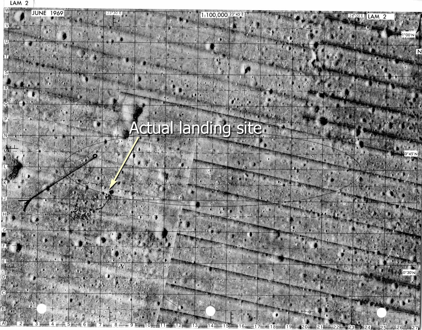 A copy of the LAM-2 chart showing the landing ellipse is included in Mike's Solo Book. This version has the actual landing site marked for comparison