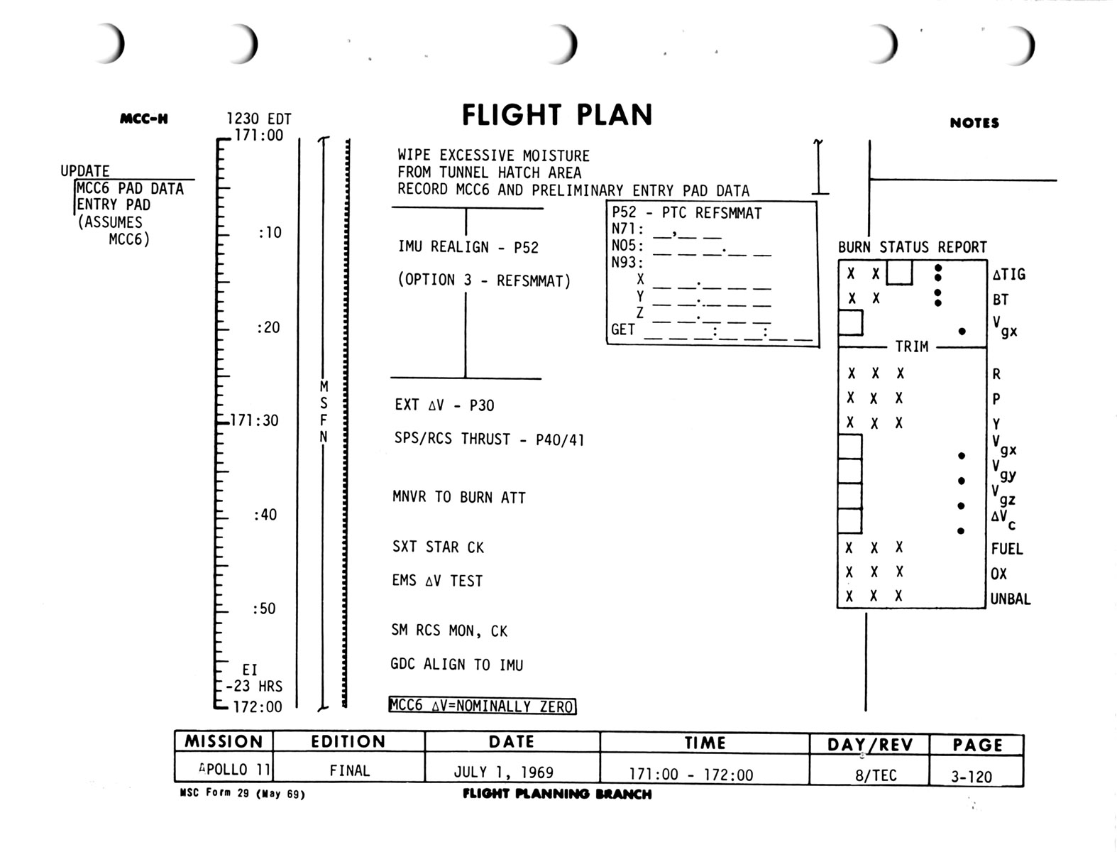 175:07:21 McCandless: 11, this is Houston. Do you all have 'Change Lima' to your entry operations checklist dated July 23? Over.