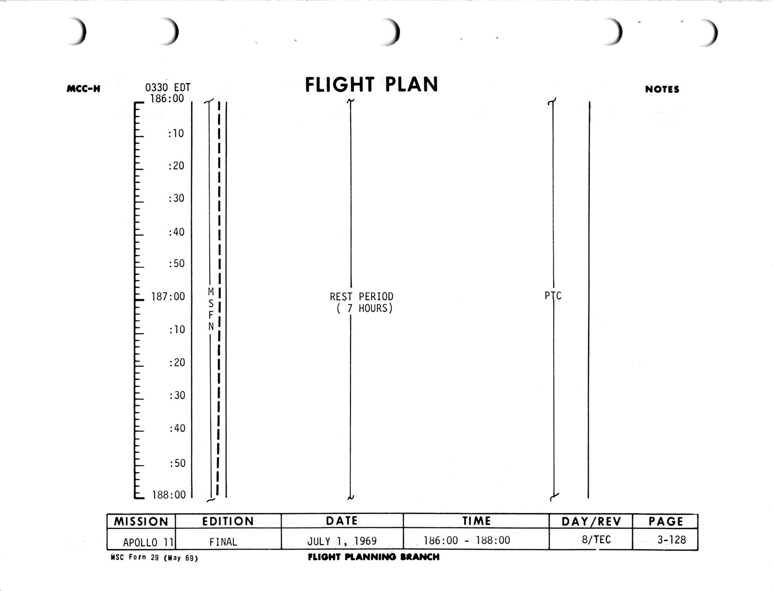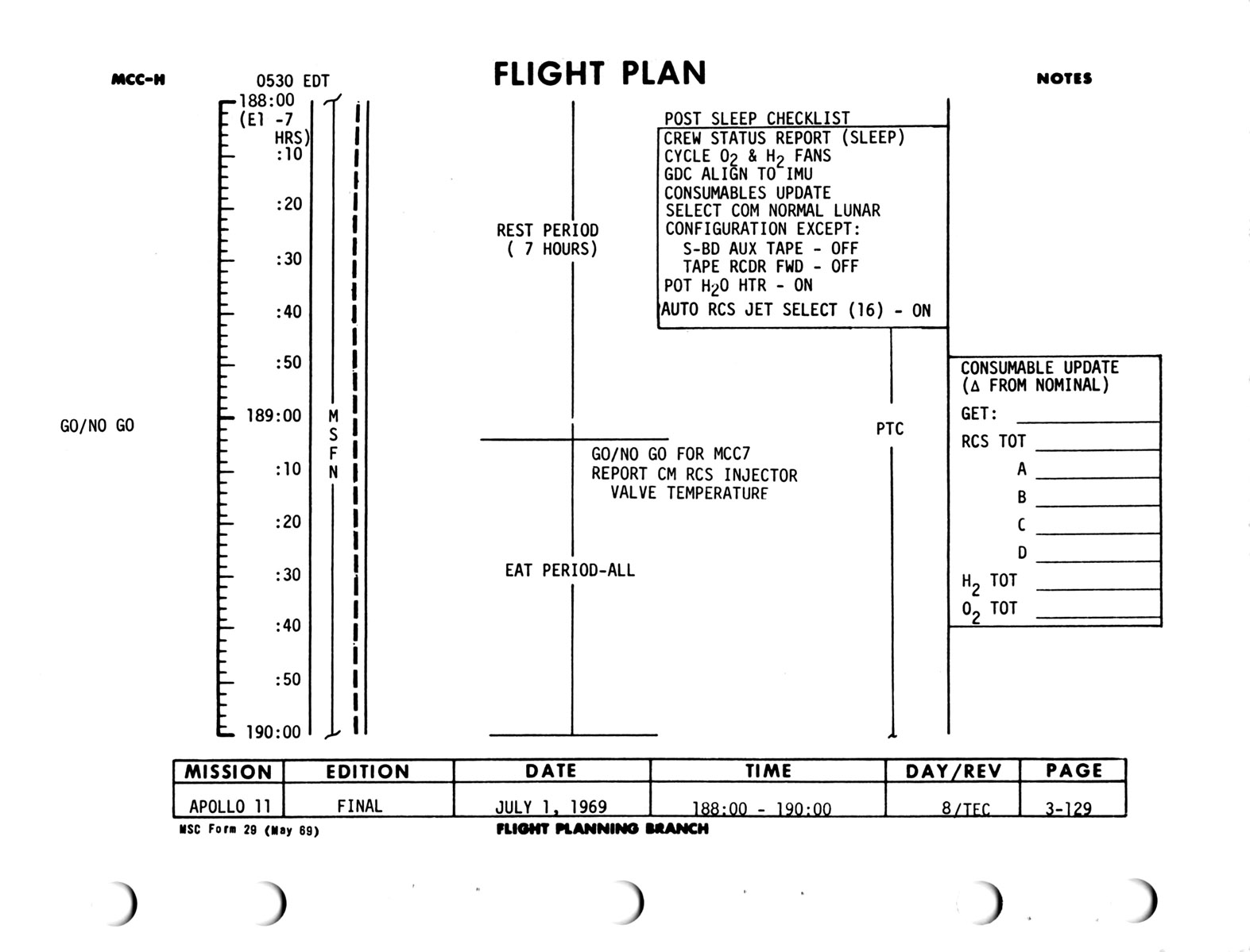 190:31:52 Evans: Apollo 11, Houston. Roger. We copy. And I have your consumables update, if you're ready to copy.
