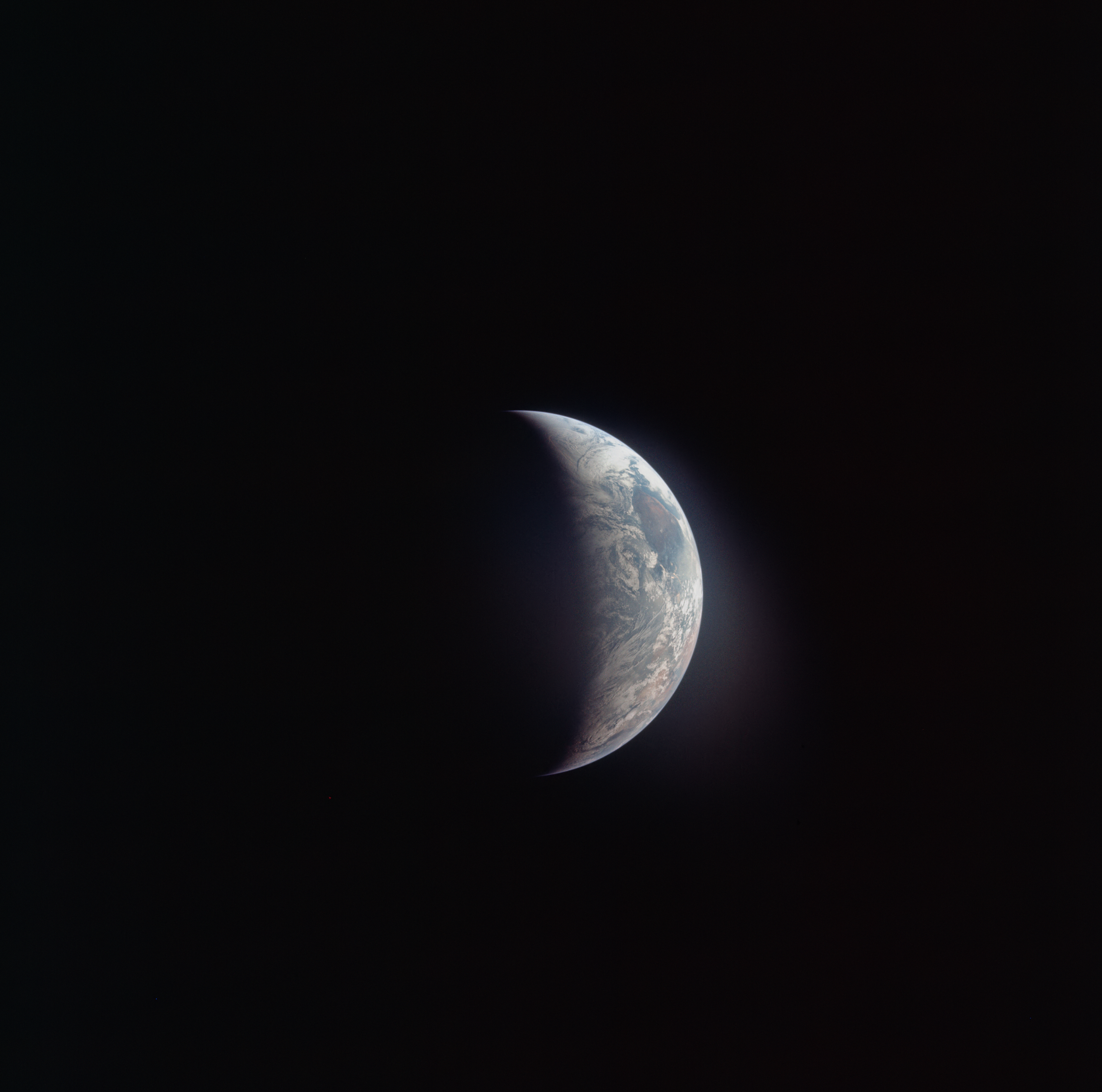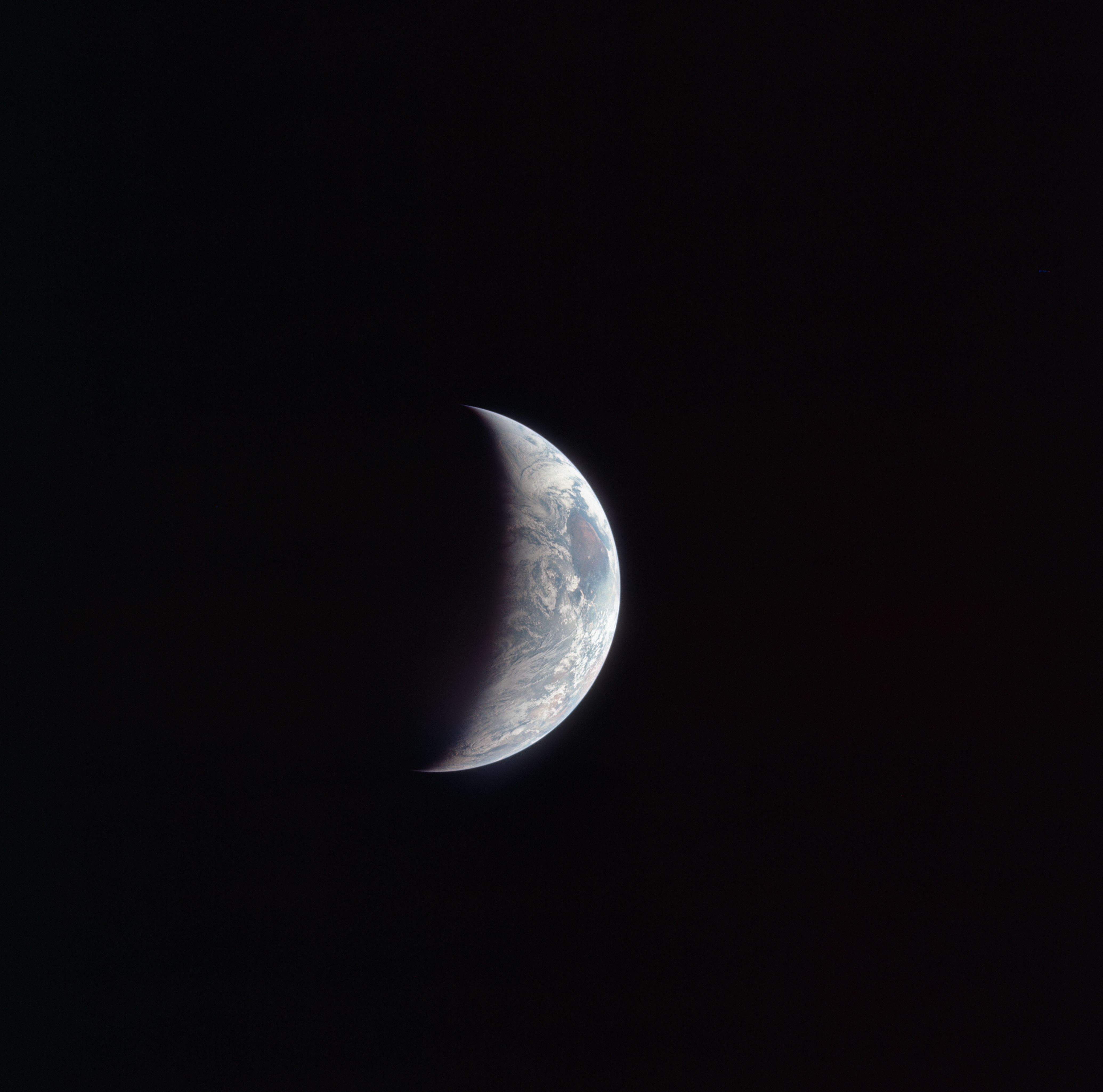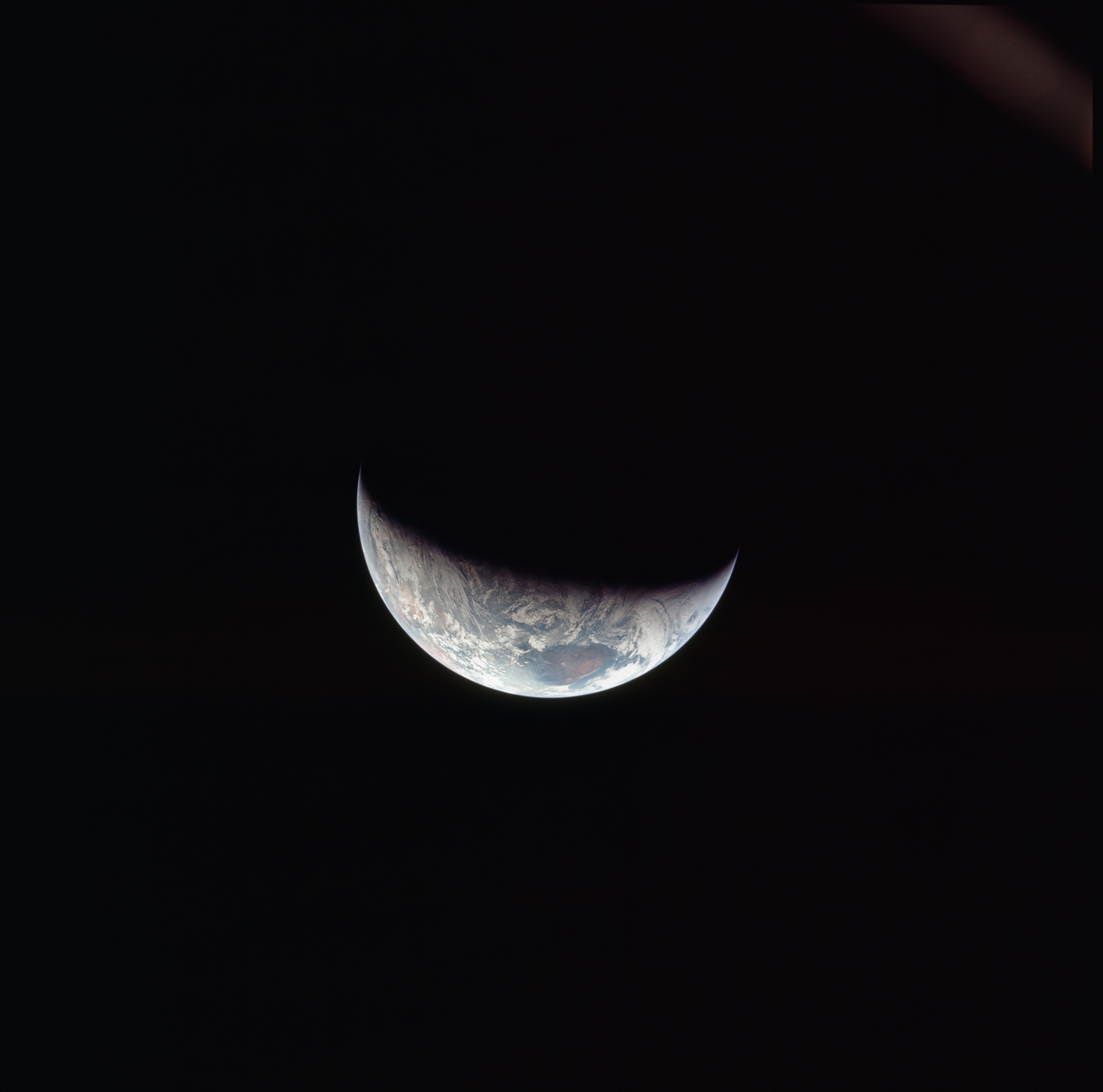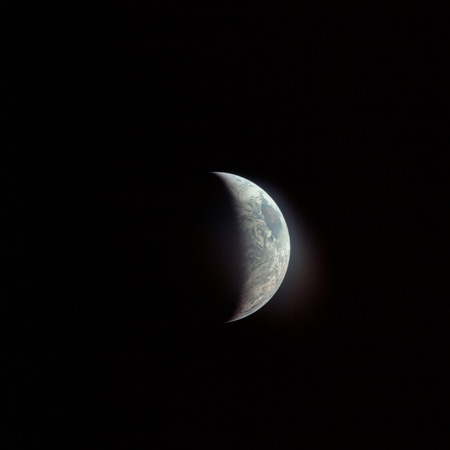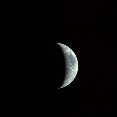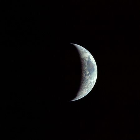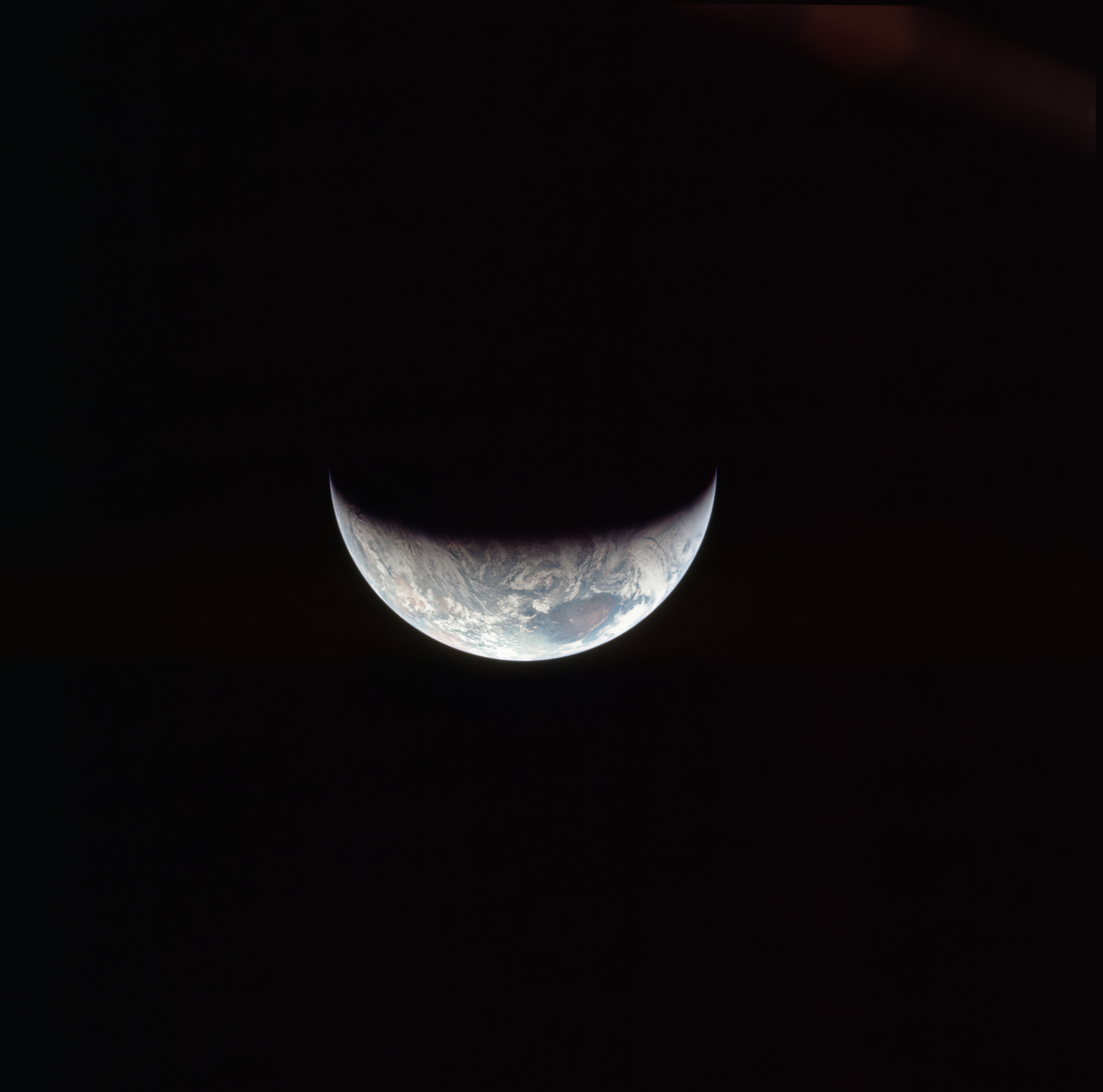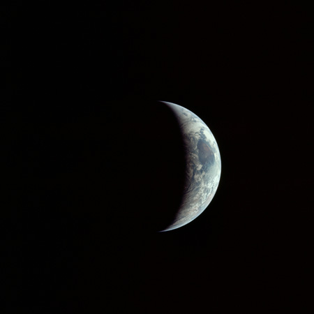AS11-44-6694 - Earth during approach. The northern part of Earth's crescent. 80-mm lens. Image credit: Image Science and Analysis Laboratory, NASA-Johnson Space Center.