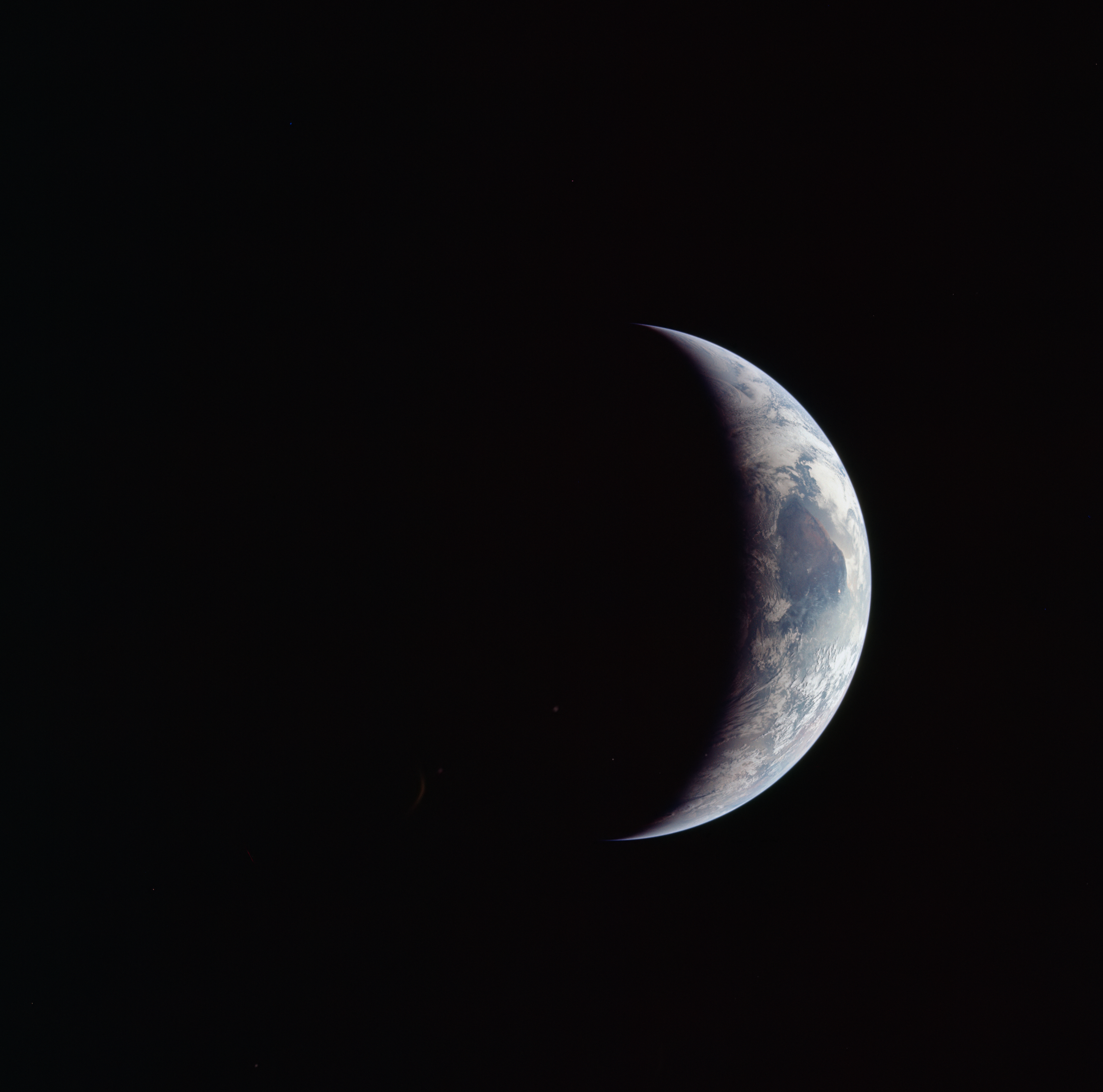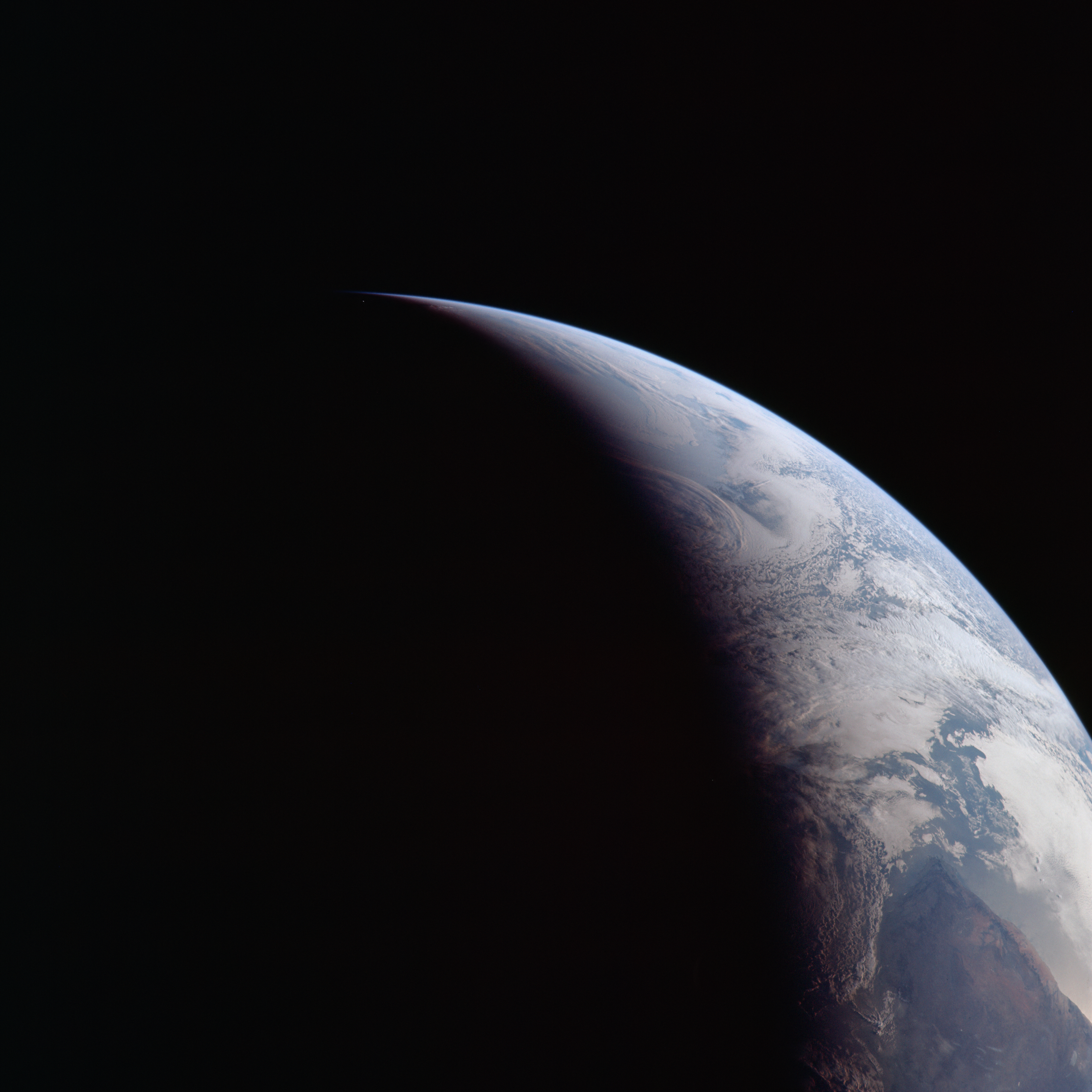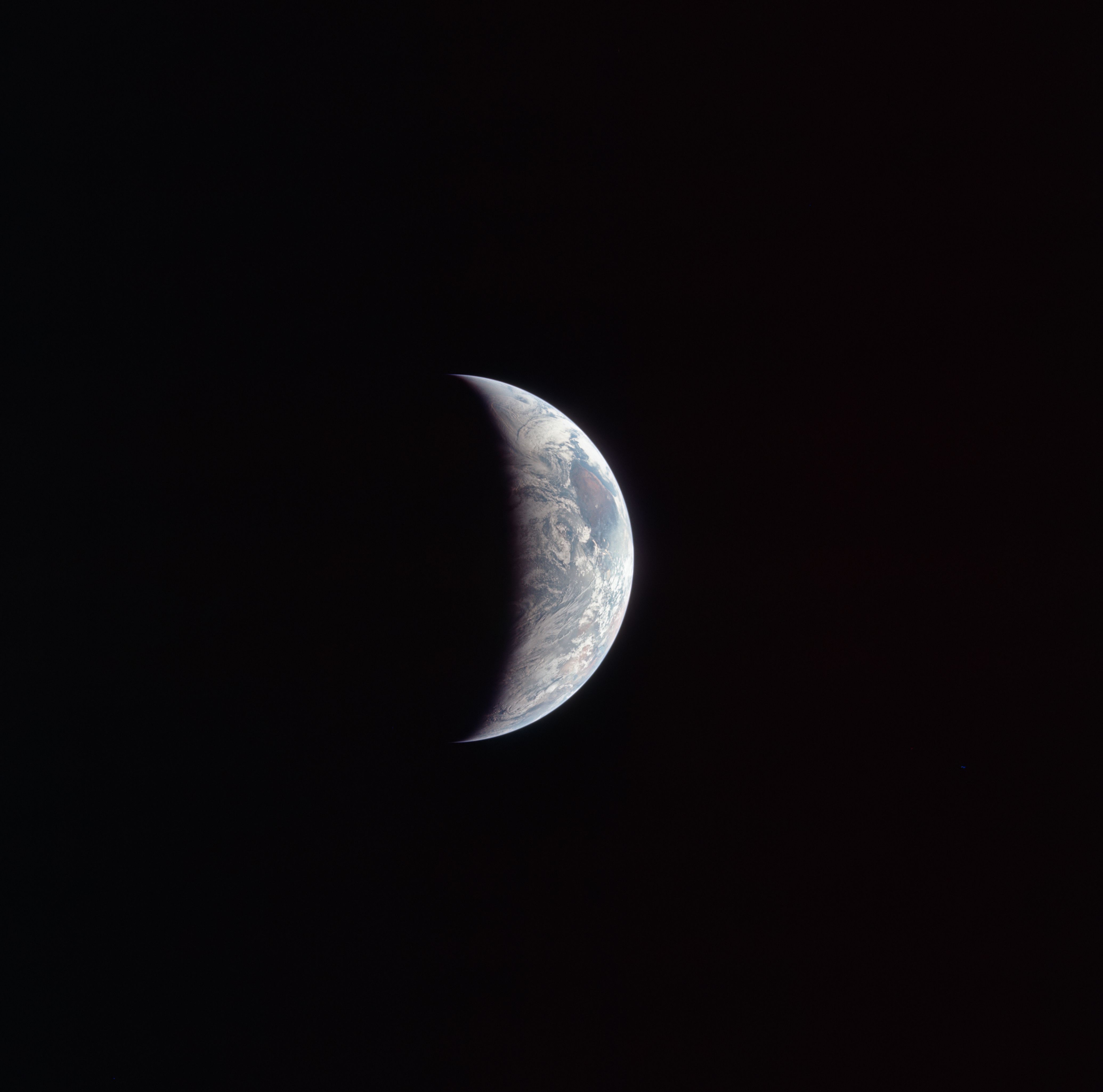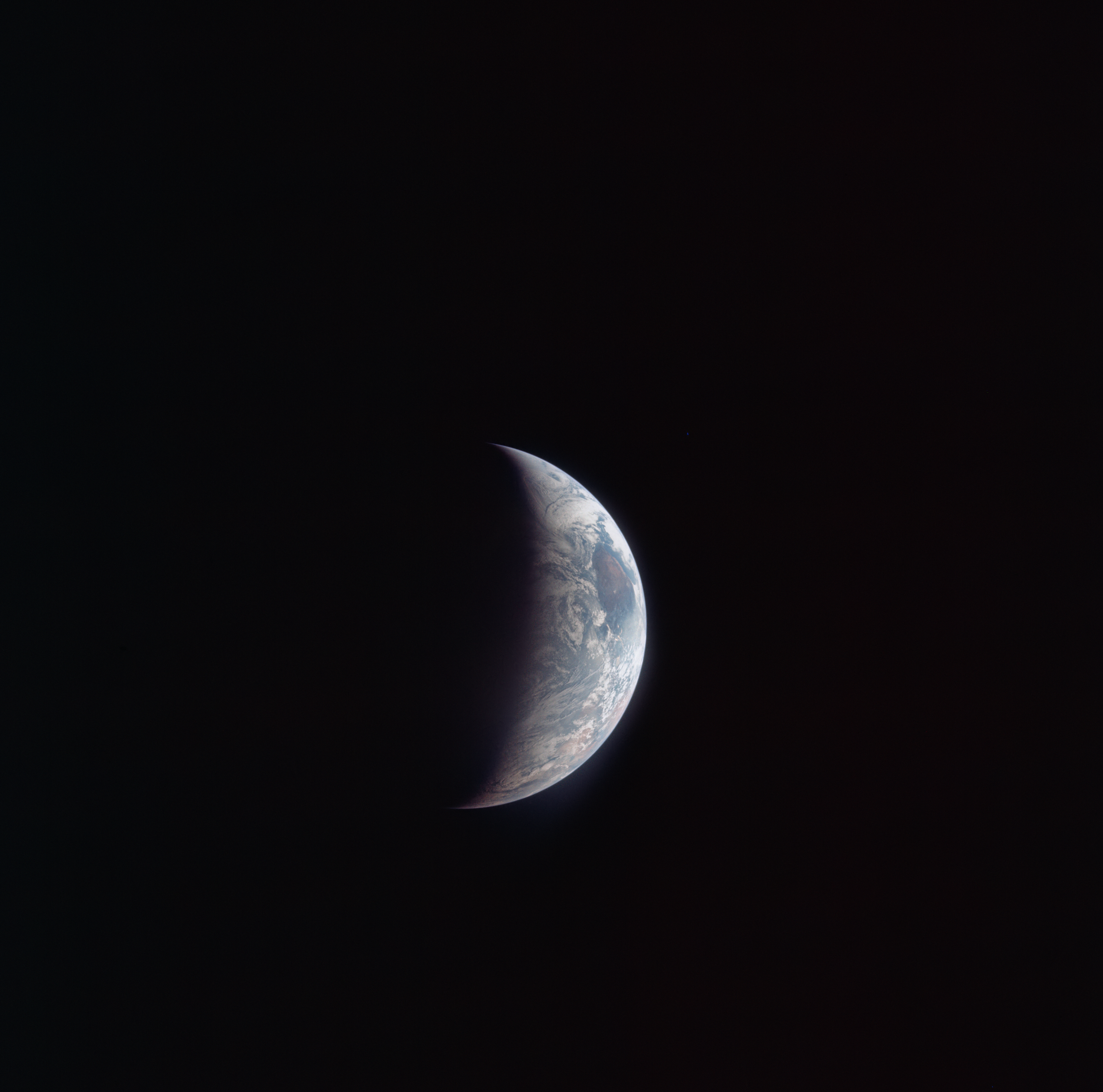 AS11-44-6694 - Earth during approach. The northern part of Earth's crescent. 80-mm lens. Image credit: Image Science and Analysis Laboratory, NASA-Johnson Space Center.