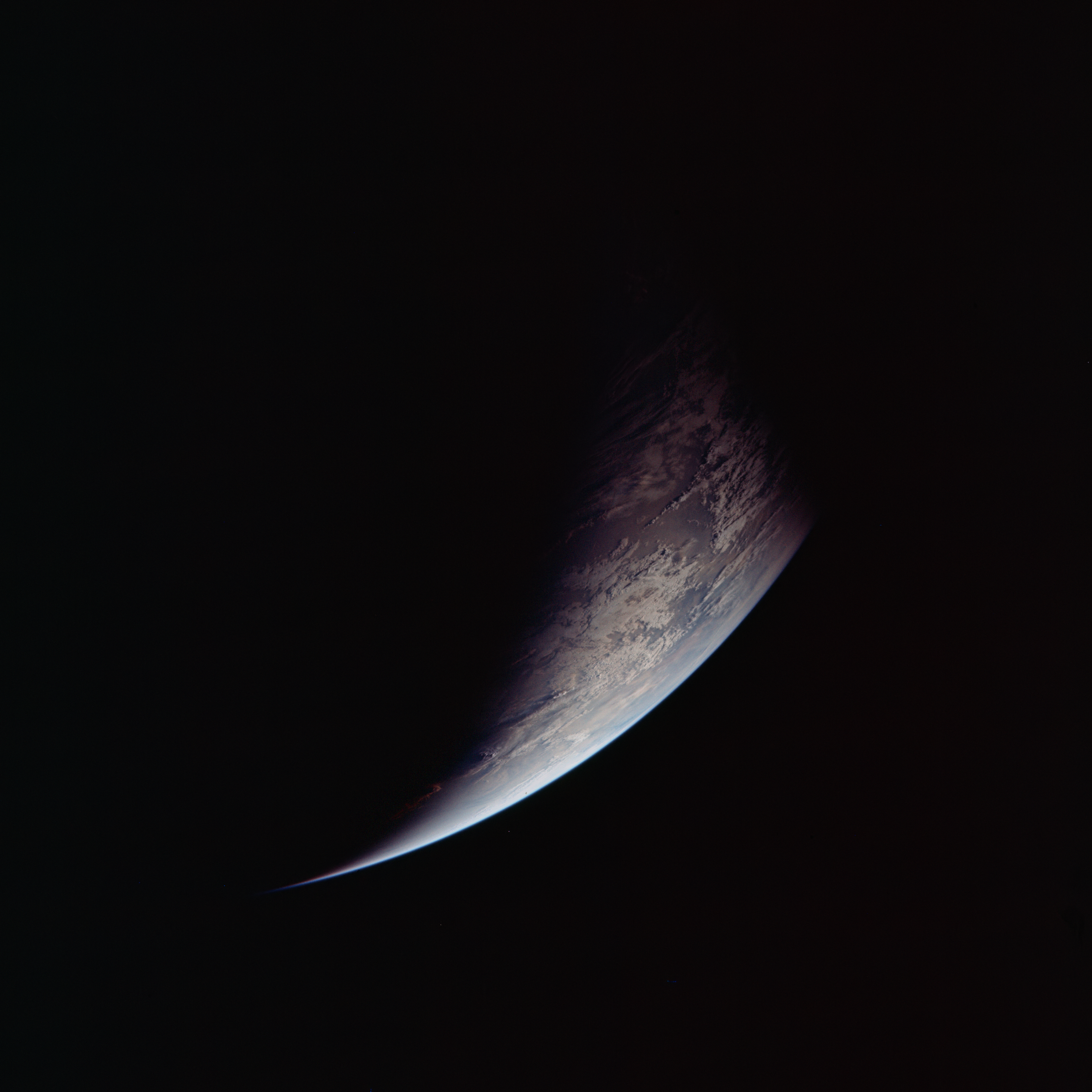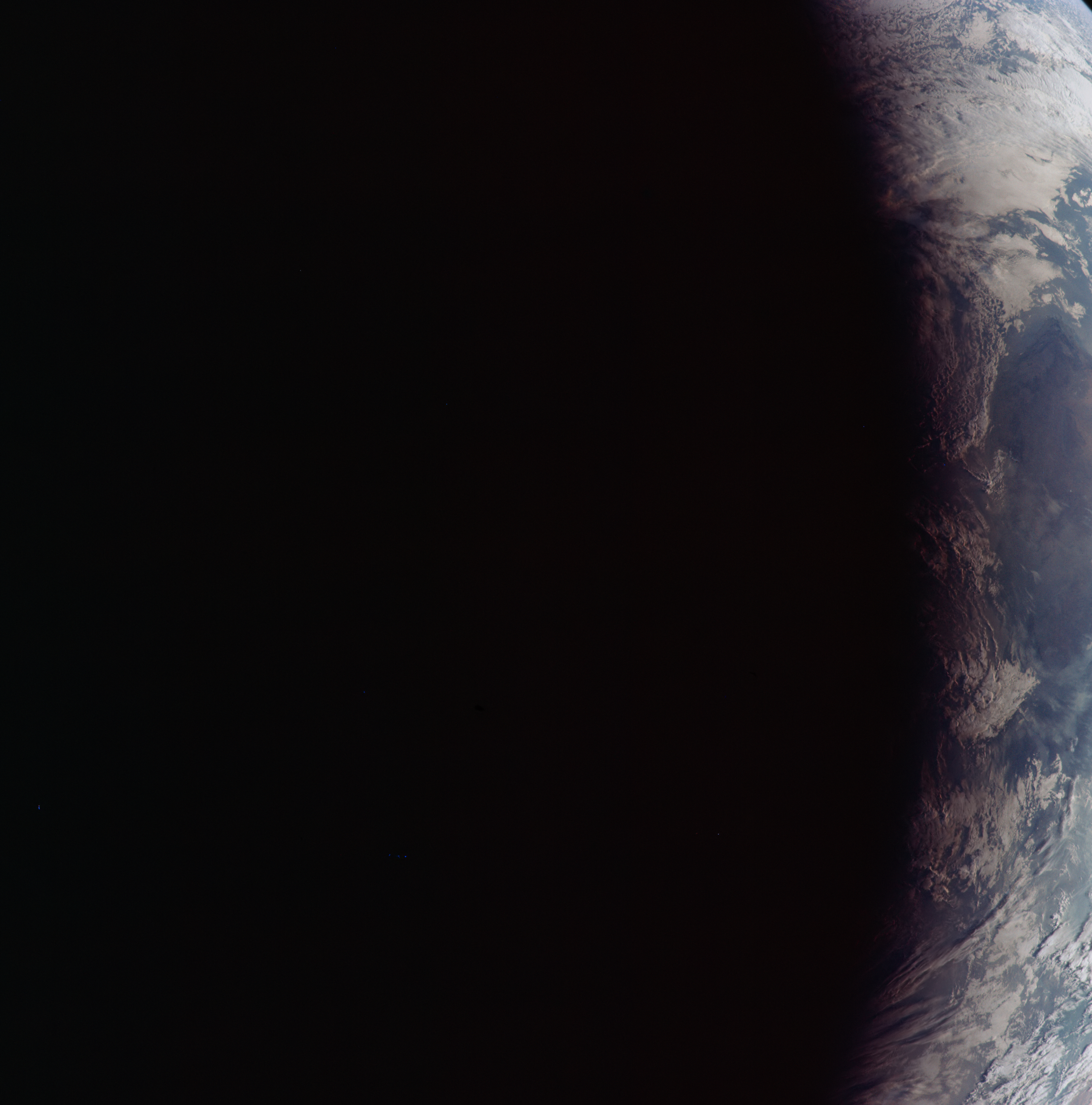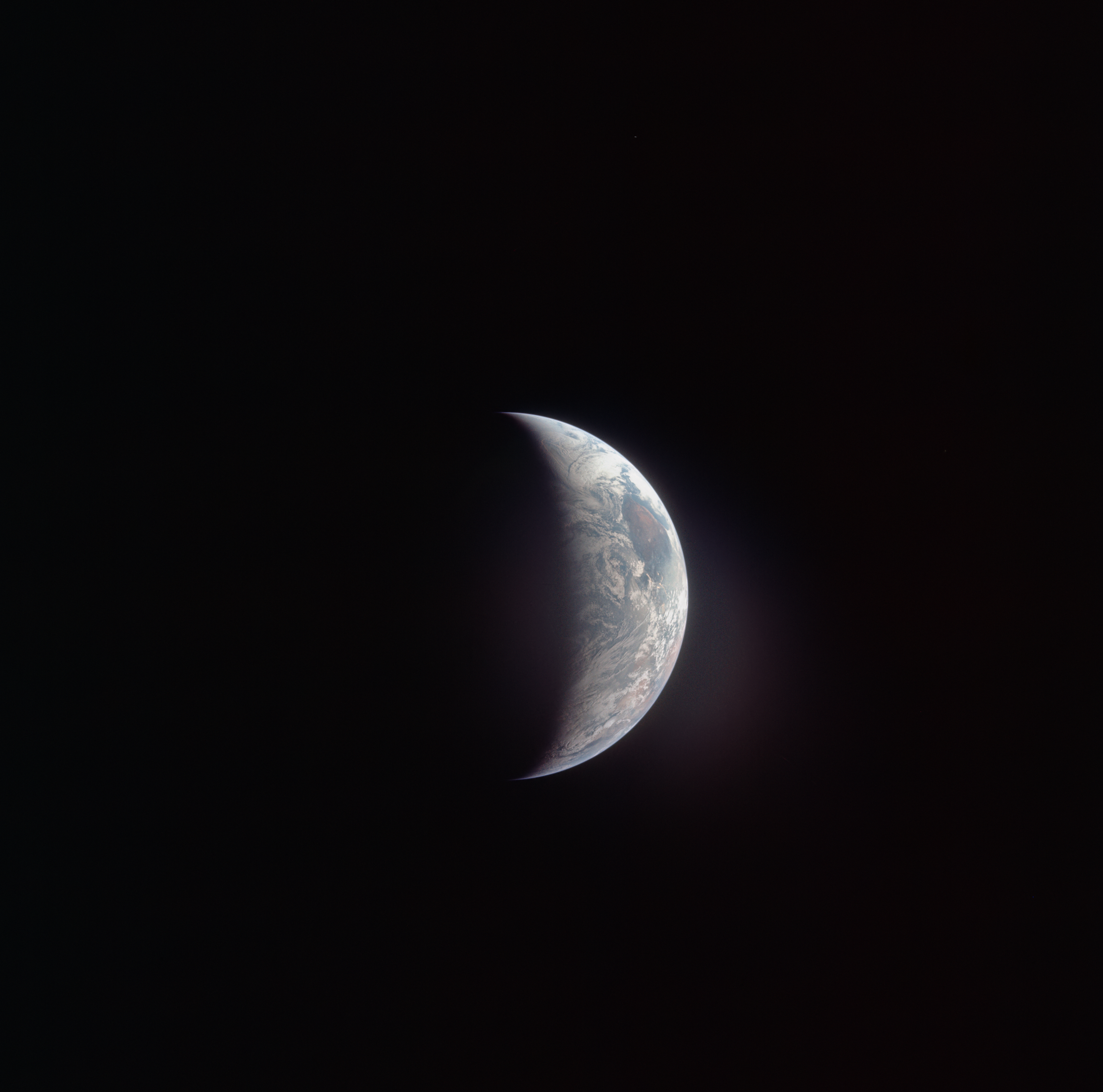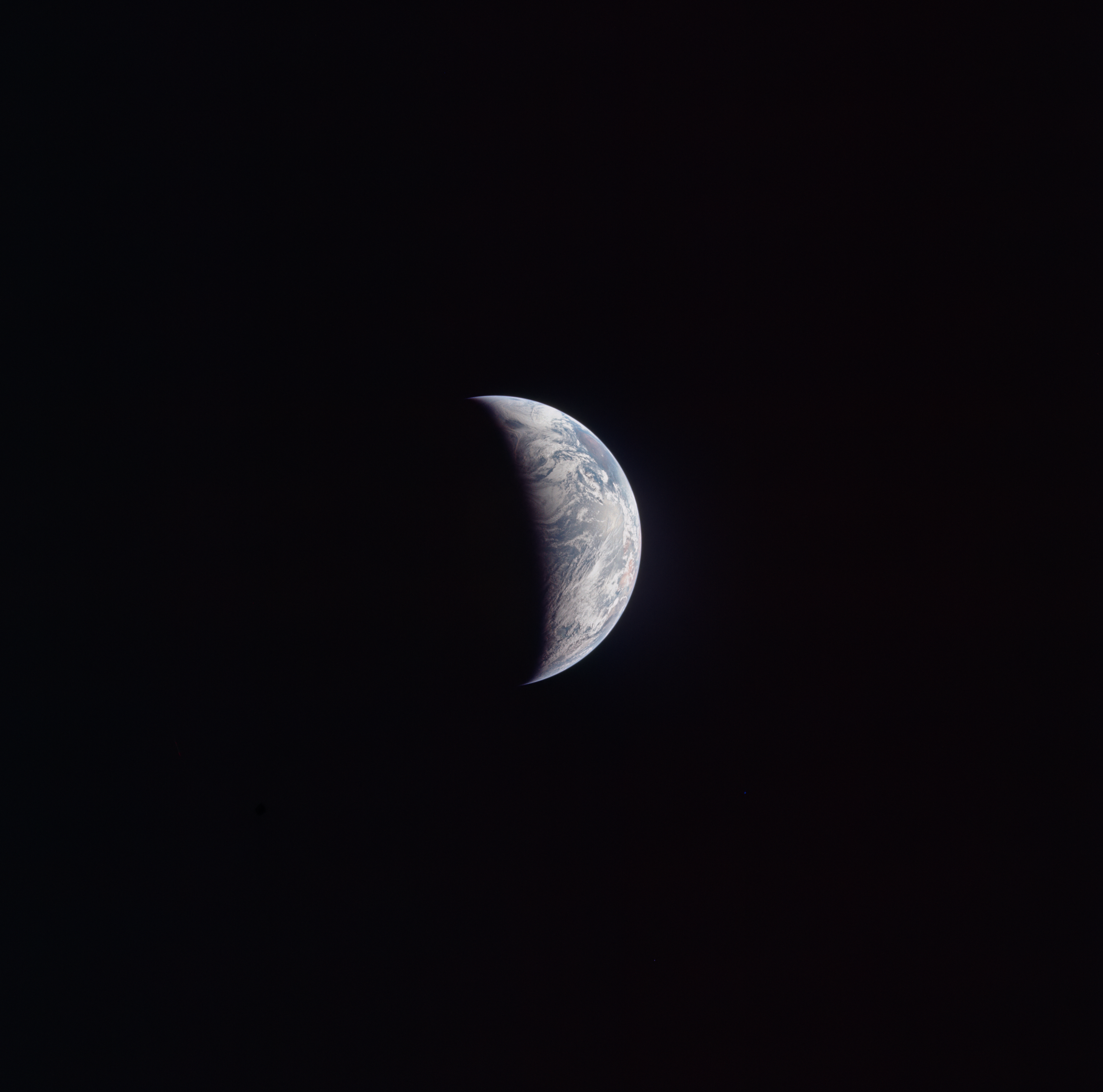 AS11-44-6694 - Earth during approach. The northern part of Earth's crescent. 80-mm lens. Image credit: Image Science and Analysis Laboratory, NASA-Johnson Space Center.
