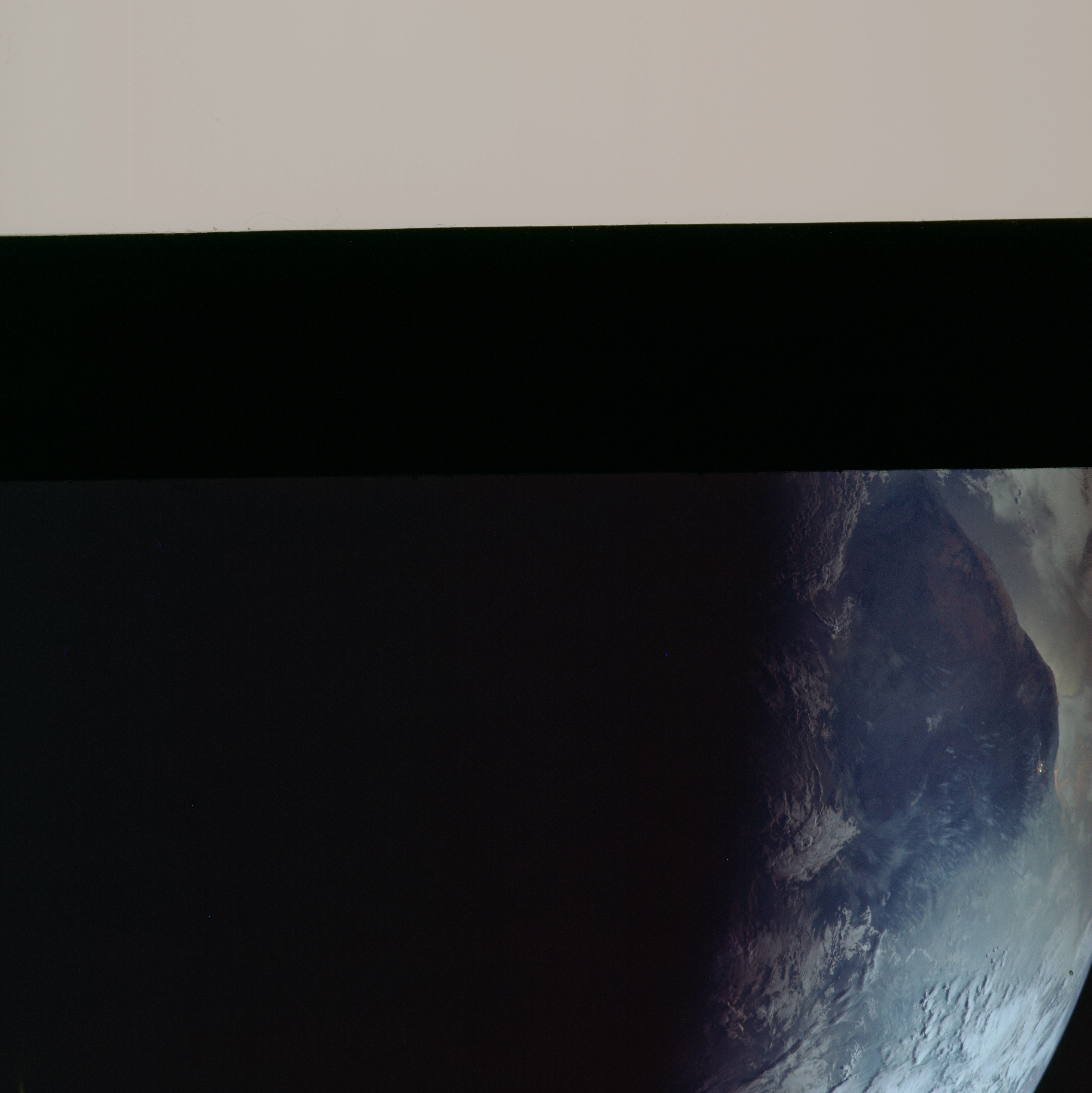 AS11-44-6696 - Partial frame of Earth during approach. South is up. Namibia is on the right. 80-mm lens. Image credit: Image Science and Analysis Laboratory, NASA-Johnson Space Center.