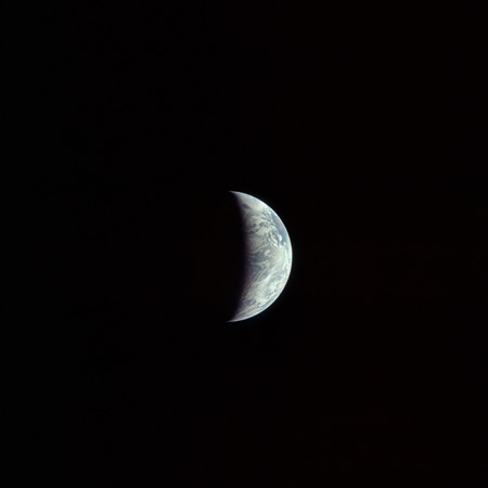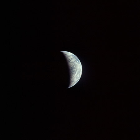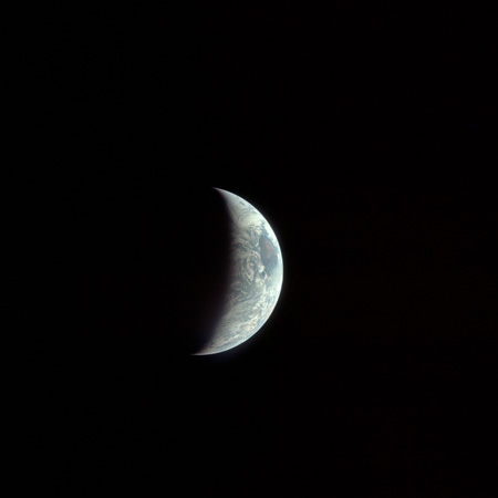 193:03:03 Collins: The Earth is really getting bigger up here and, of course, we see a crescent.