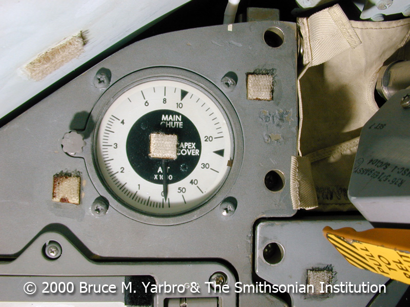 The Command Module Altimeter at the top of panel 1, as photographed in the cabin of Odyssey, the Apollo 13 CM.