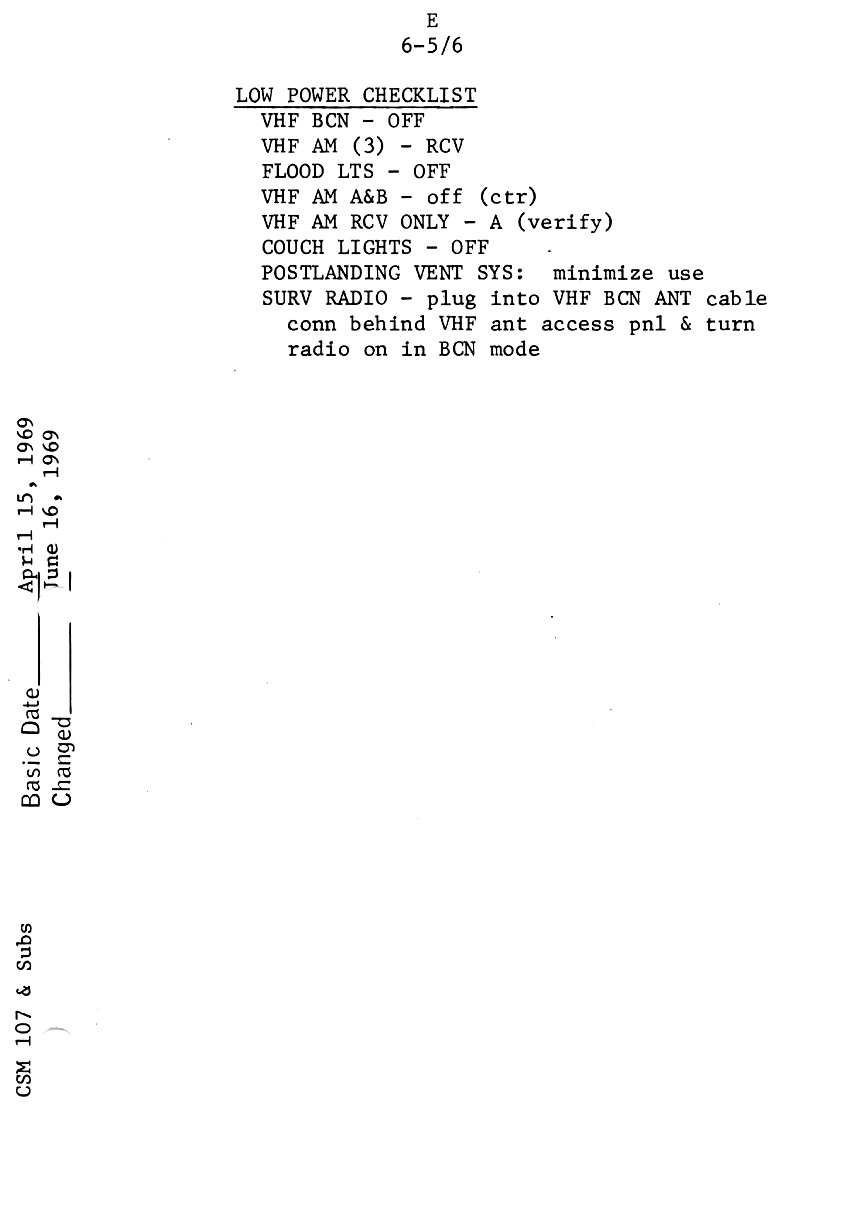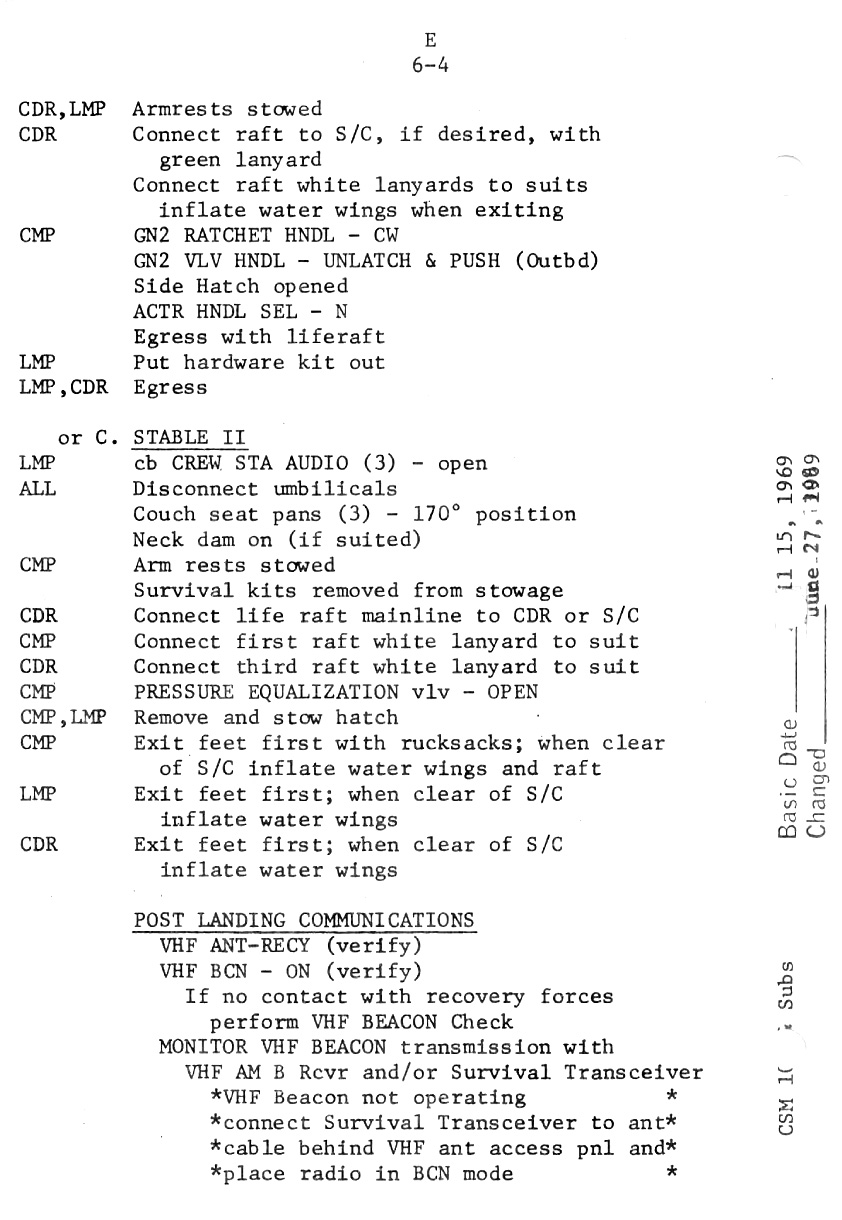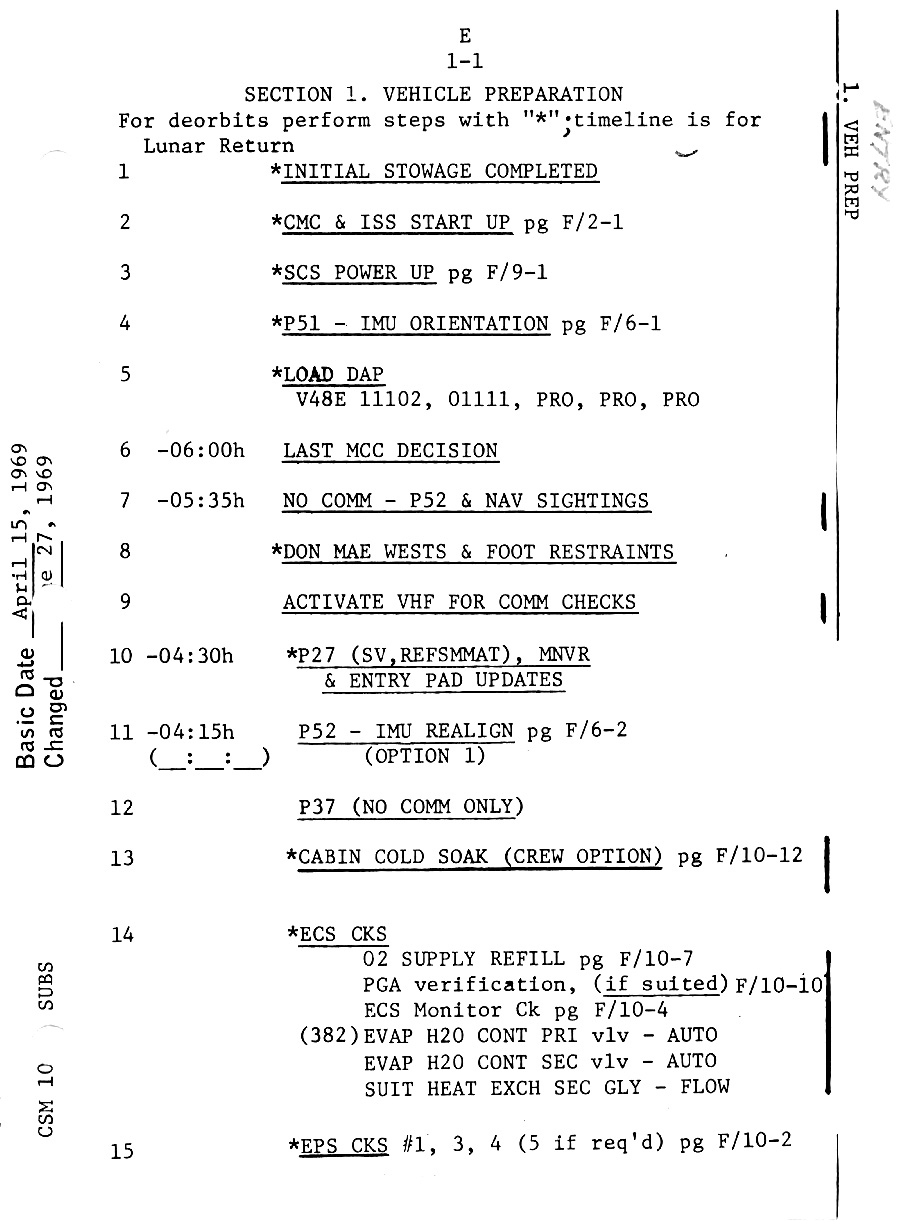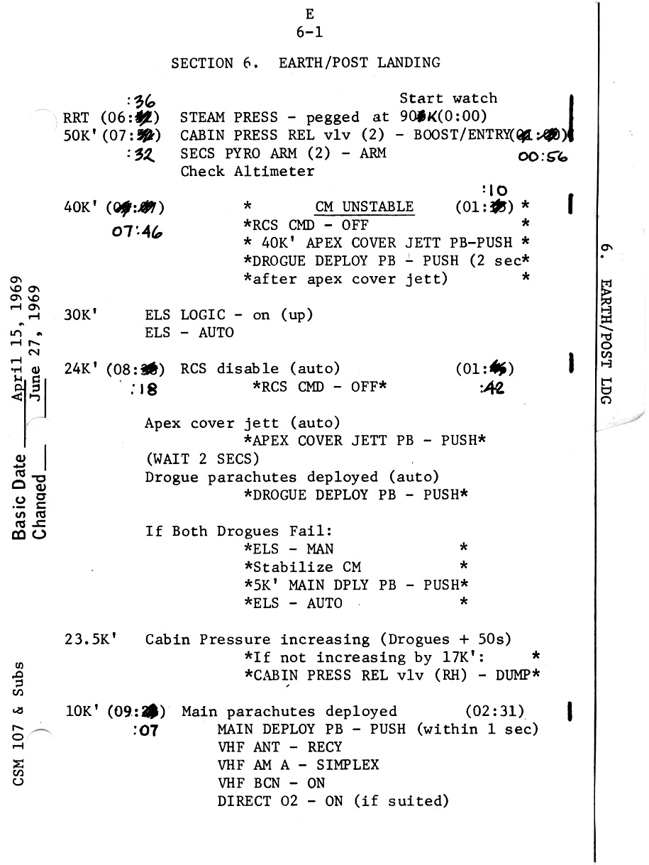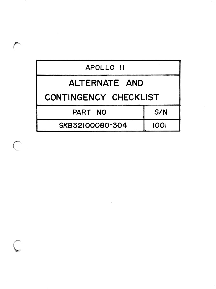 The Alternate And Contingency Checklist presented here was derived from scans of Mike Collins' flown copy, currently in the collection of the Smithsonian's National Air and Space Museum (Catalog number A19980018000). All of the annotations are on the original. These images are presented with permission of the Smithsonian, National Air and Space Museum subject to its terms of use policy.