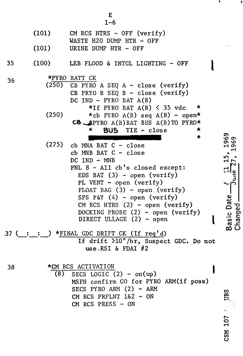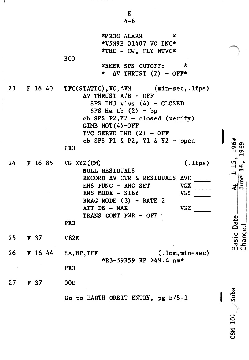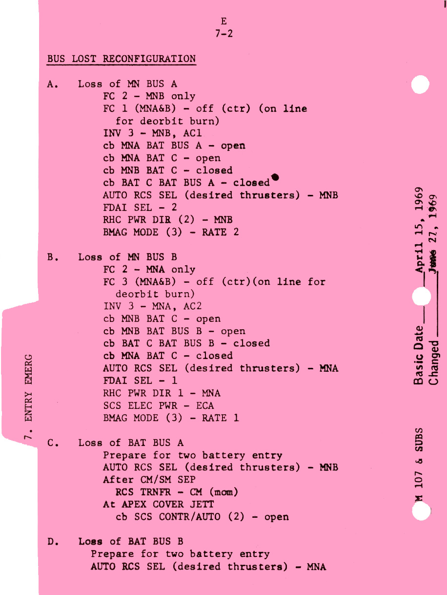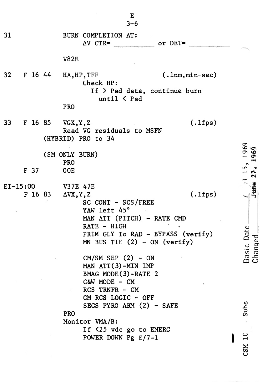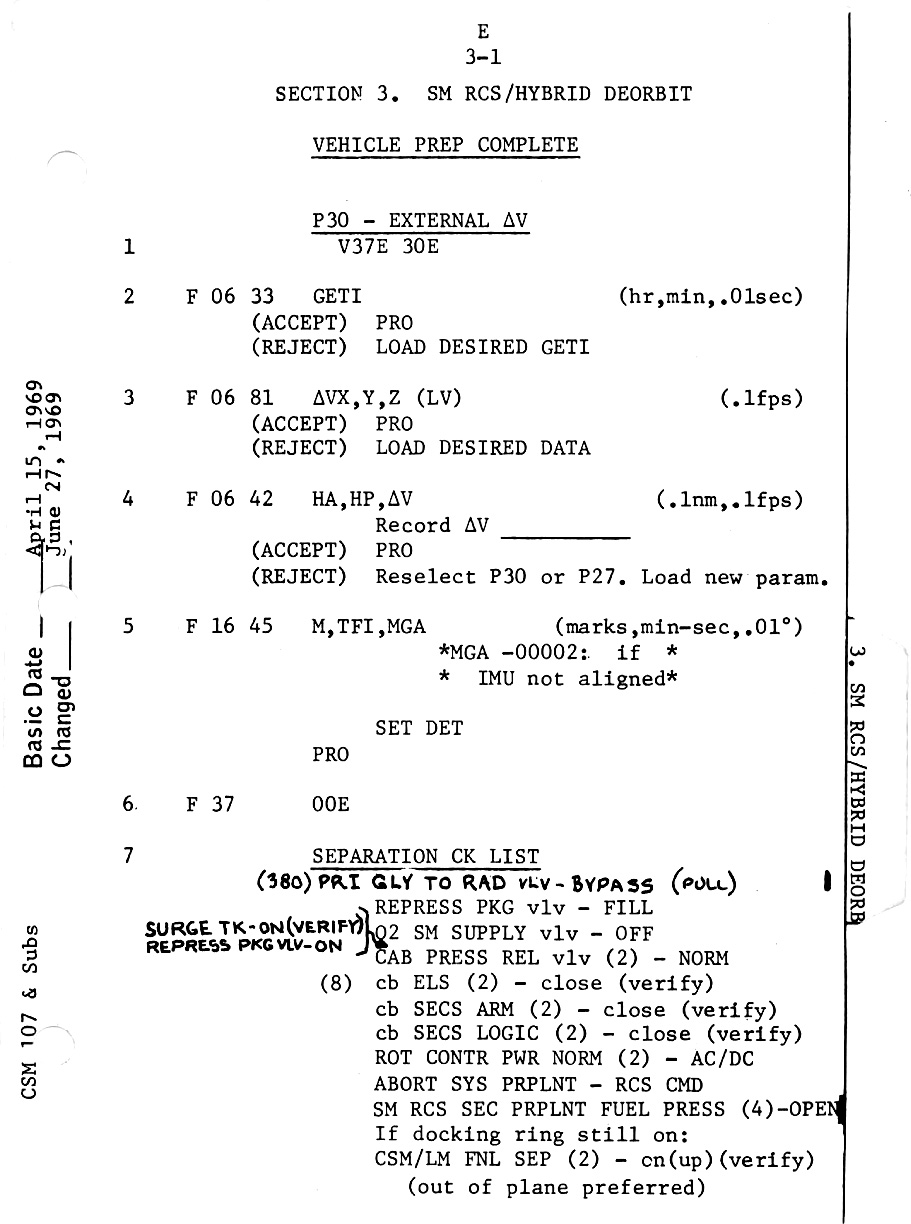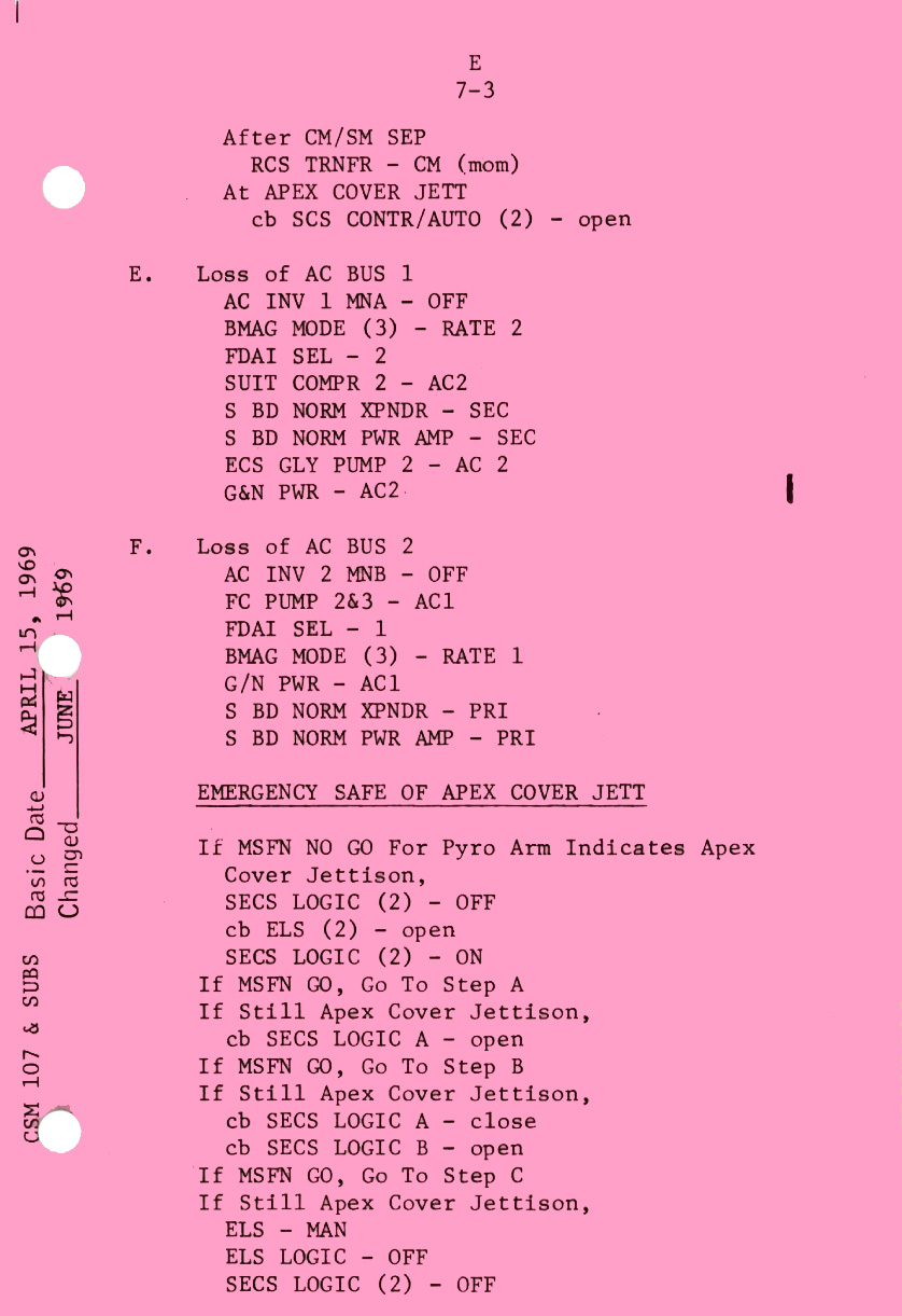 The Alternate And Contingency Checklist presented here was derived from scans of Mike Collins' flown copy, currently in the collection of the Smithsonian's National Air and Space Museum (Catalog number A19980018000). All of the annotations are on the original. These images are presented with permission of the Smithsonian, National Air and Space Museum subject to its terms of use policy.