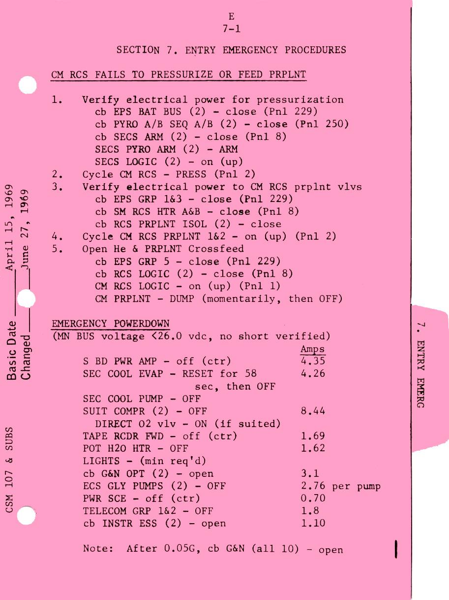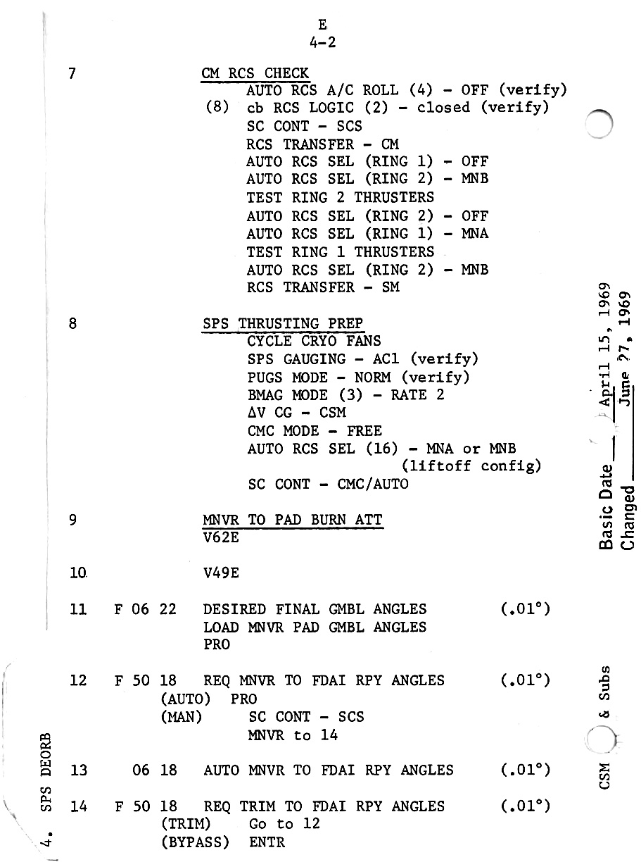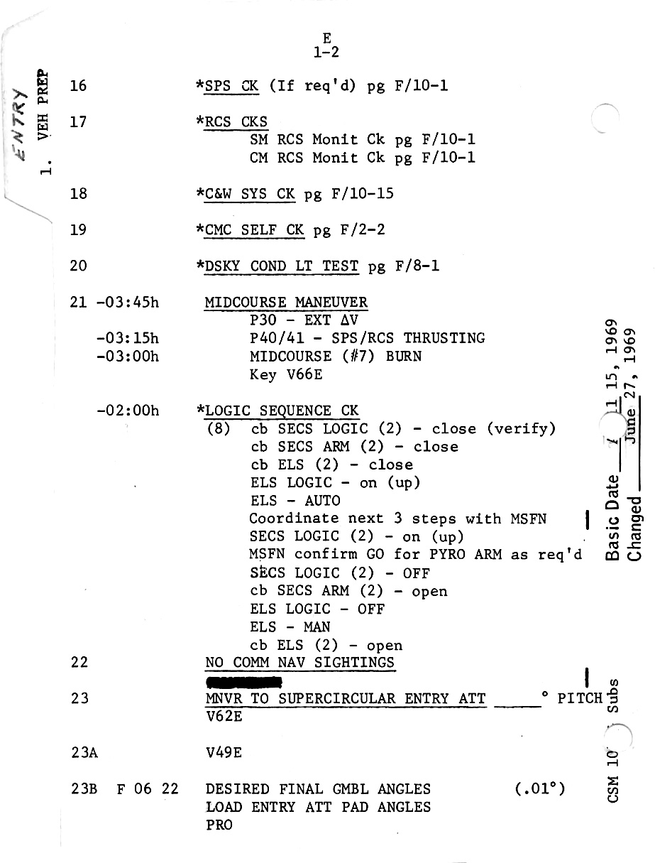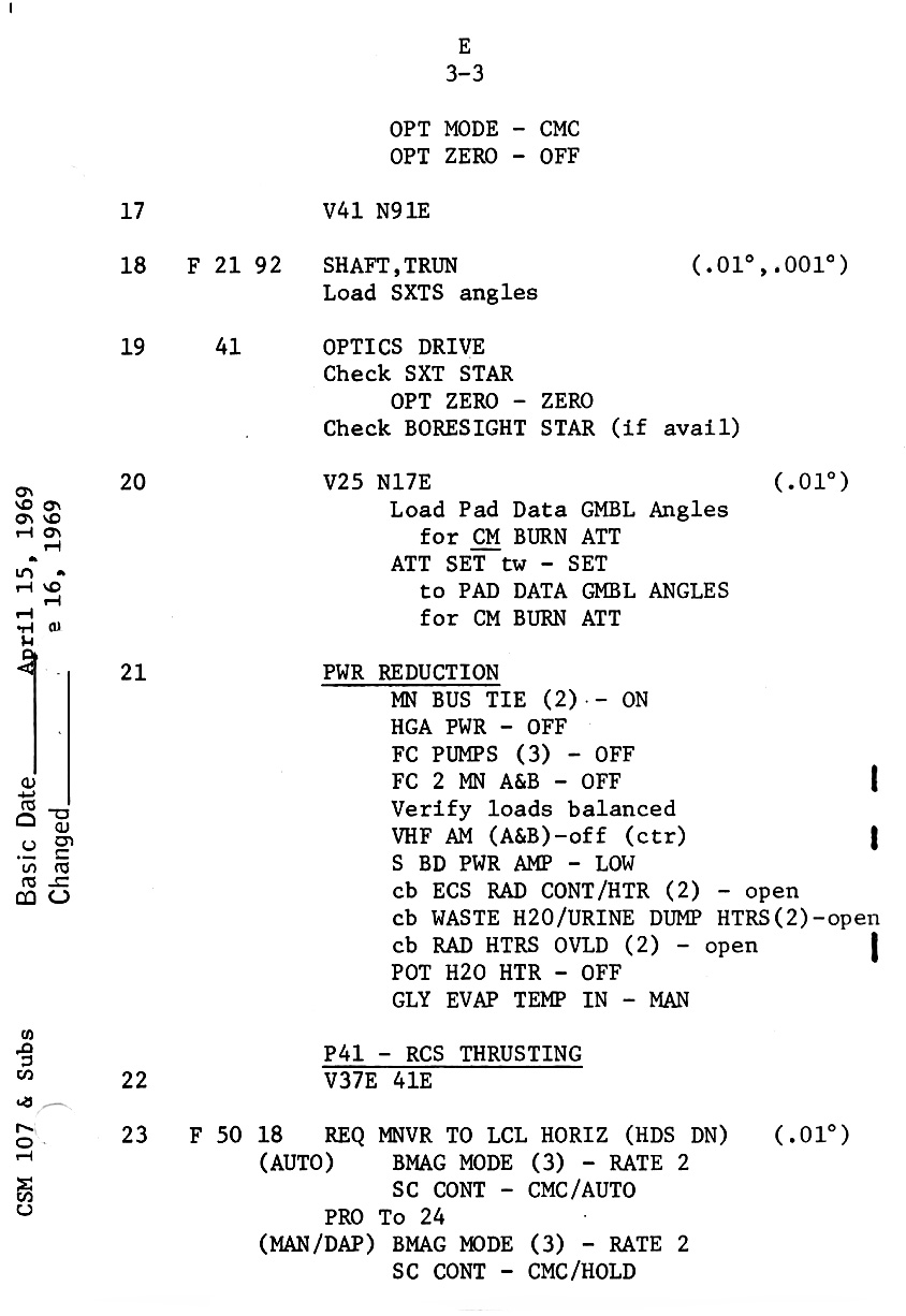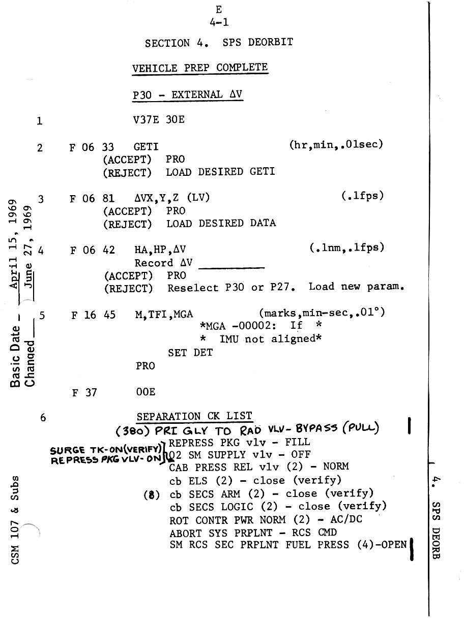 The Alternate And Contingency Checklist presented here was derived from scans of Mike Collins' flown copy, currently in the collection of the Smithsonian's National Air and Space Museum (Catalog number A19980018000). All of the annotations are on the original. These images are presented with permission of the Smithsonian, National Air and Space Museum subject to its terms of use policy.