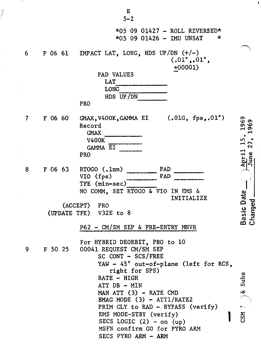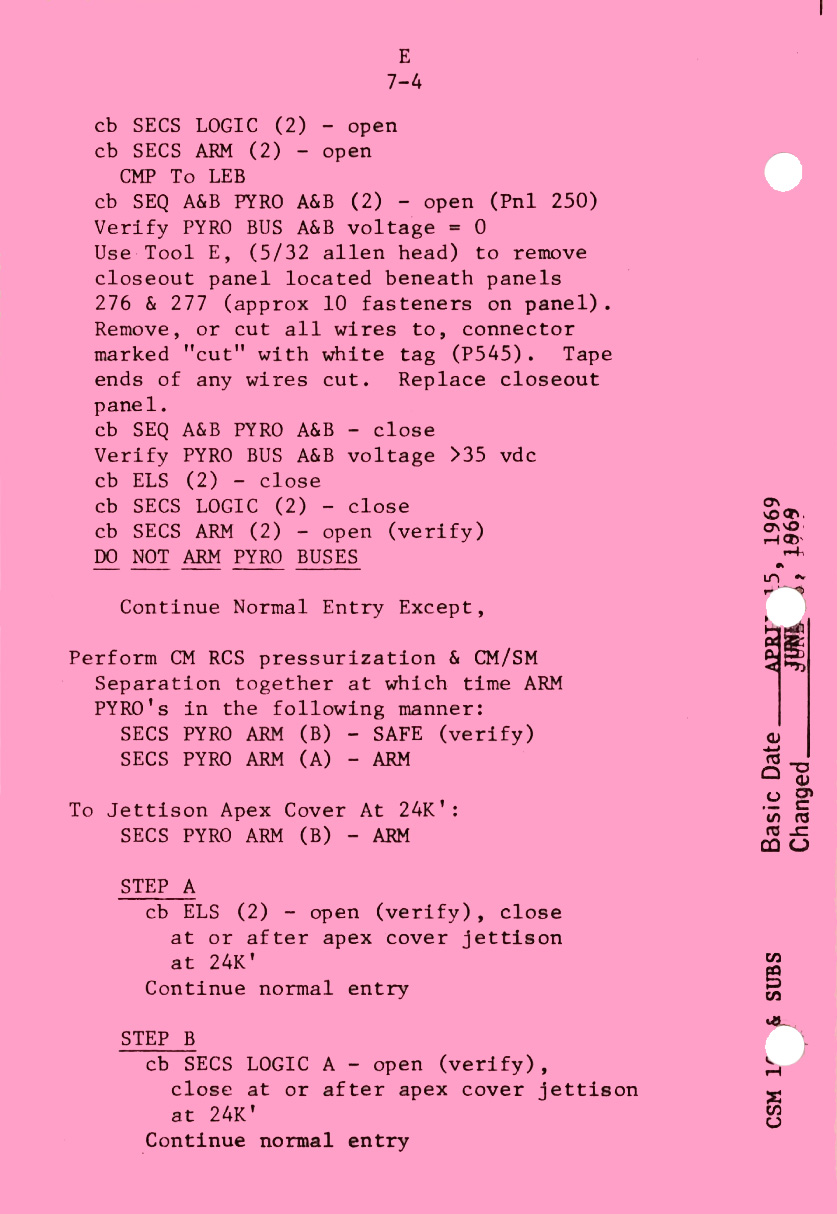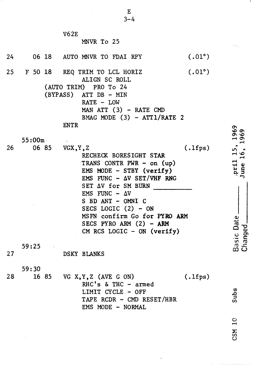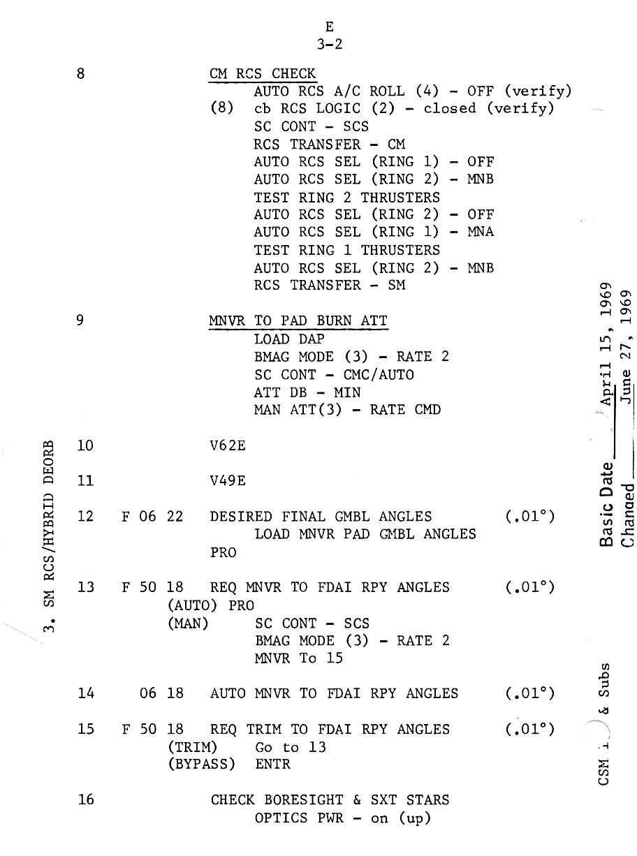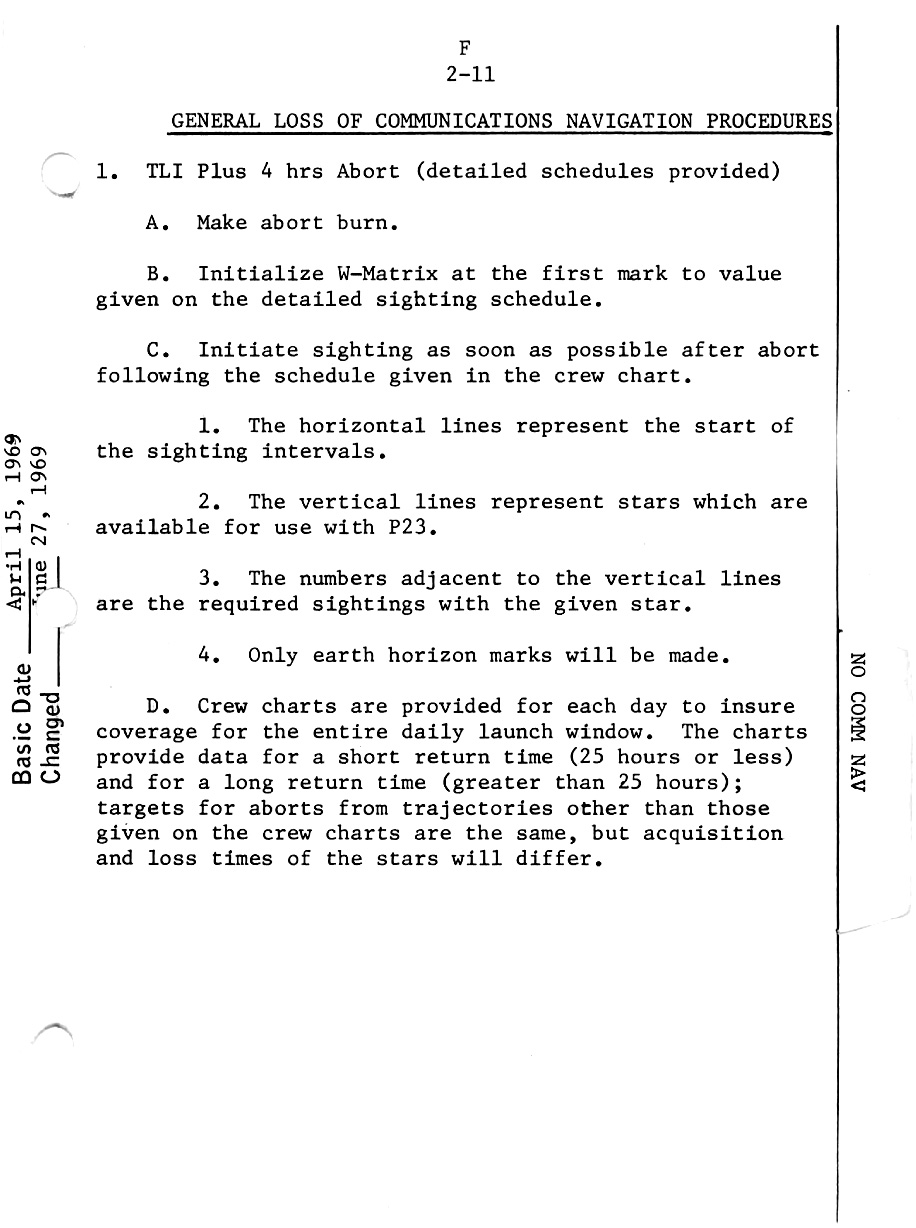 The Alternate And Contingency Checklist presented here was derived from scans of Mike Collins' flown copy, currently in the collection of the Smithsonian's National Air and Space Museum (Catalog number A19980018000). All of the annotations are on the original. These images are presented with permission of the Smithsonian, National Air and Space Museum subject to its terms of use policy.