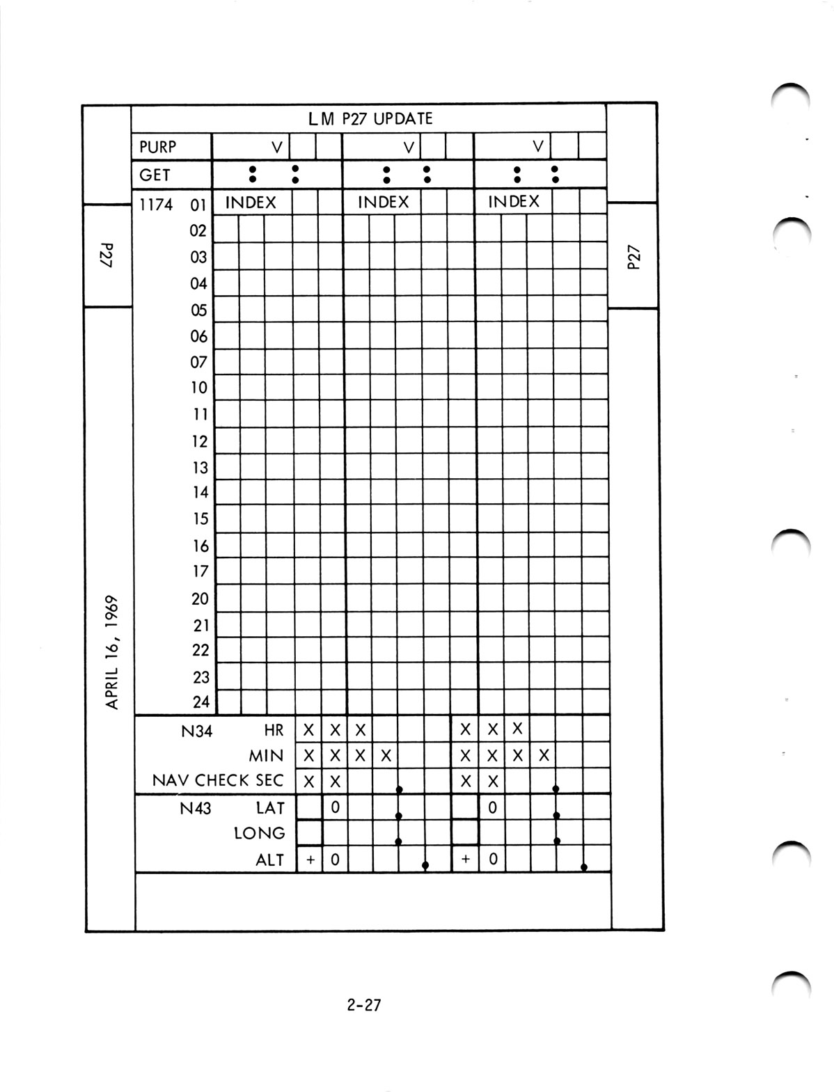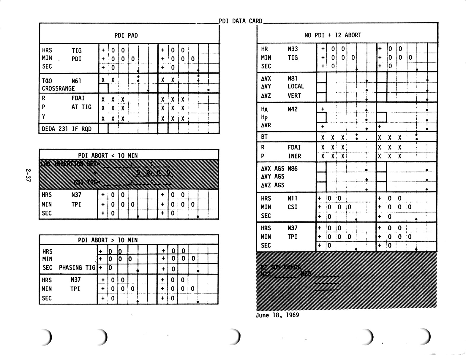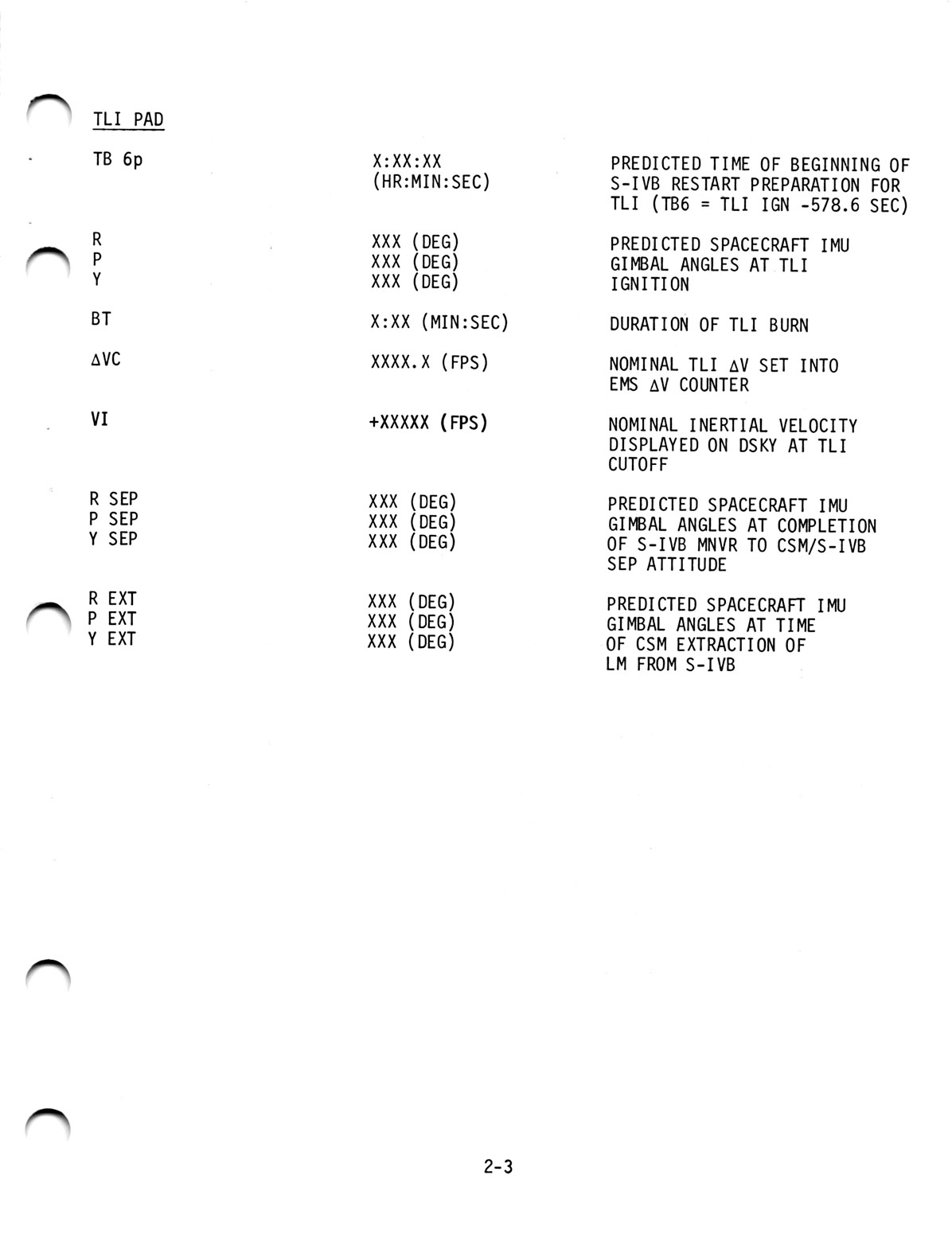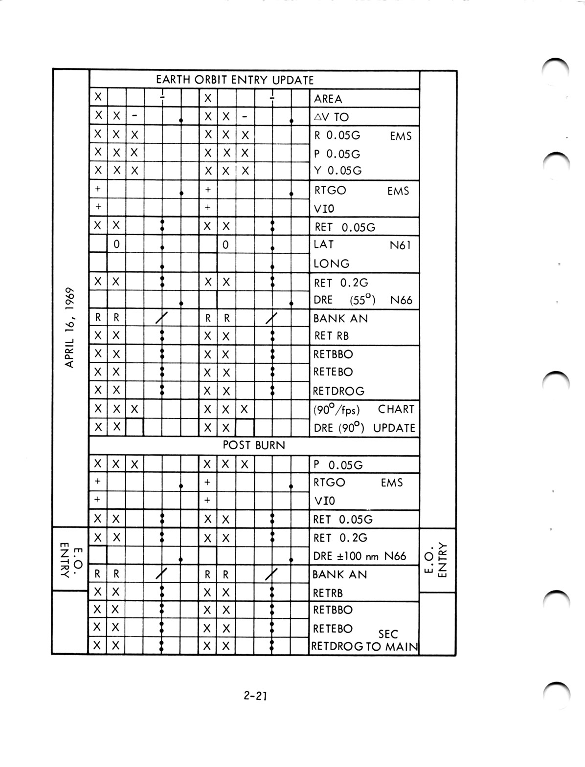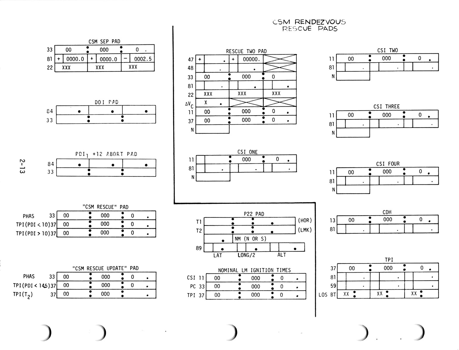 The Flight Plan presented here is not identical to that used on board but there are likely to be very few differences. These pages were derived from a PDF of a scan of the Flight Plan that was sent to the Honeysuckle Creek Tracking Station in Australia few days prior to the flight. The PDF was created by Colin Mackellar for the honeysucklecreek.net website and can be downloaded here.