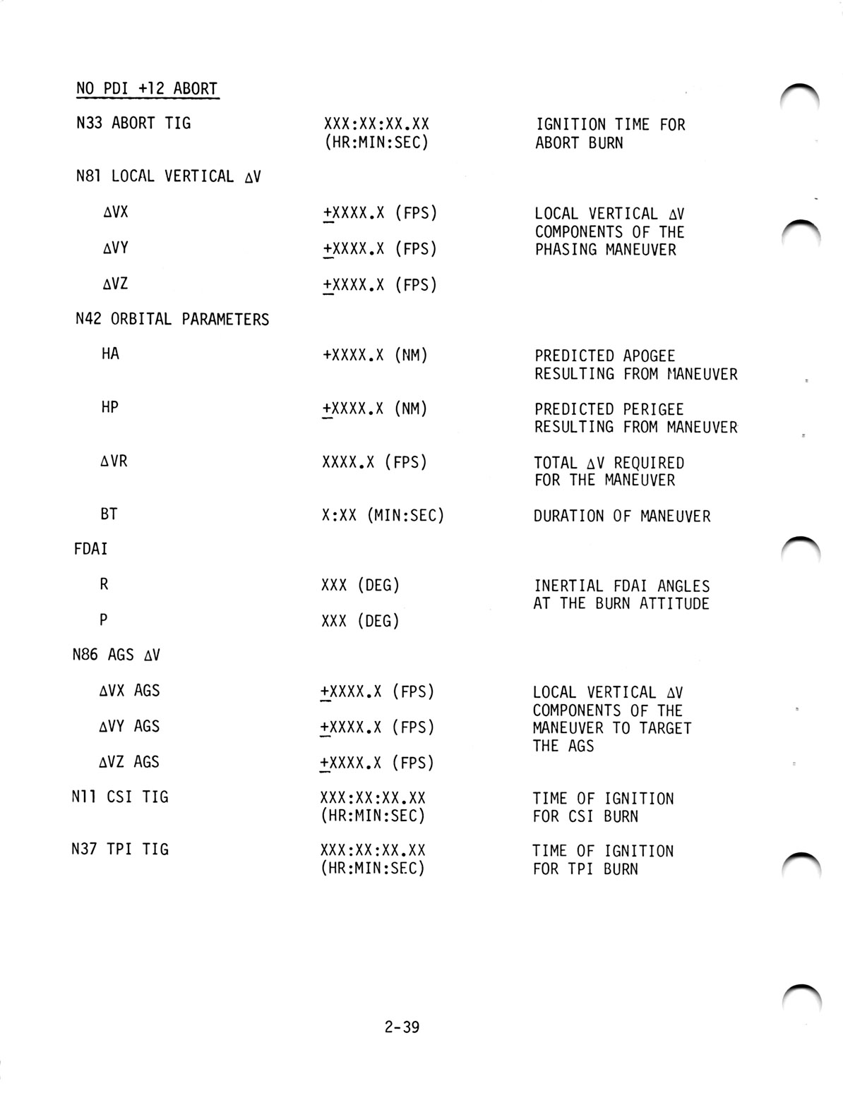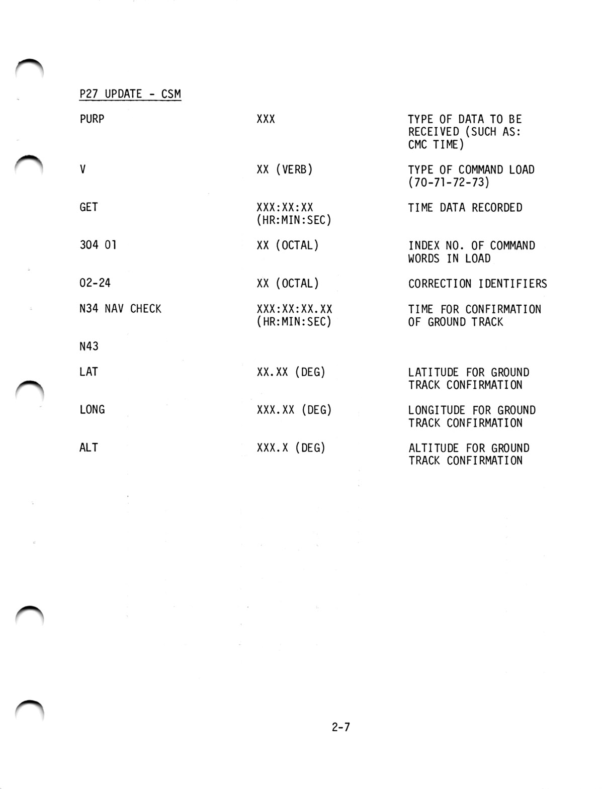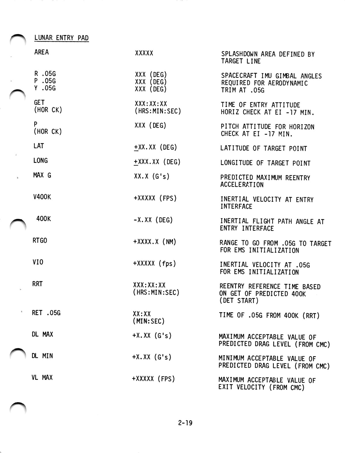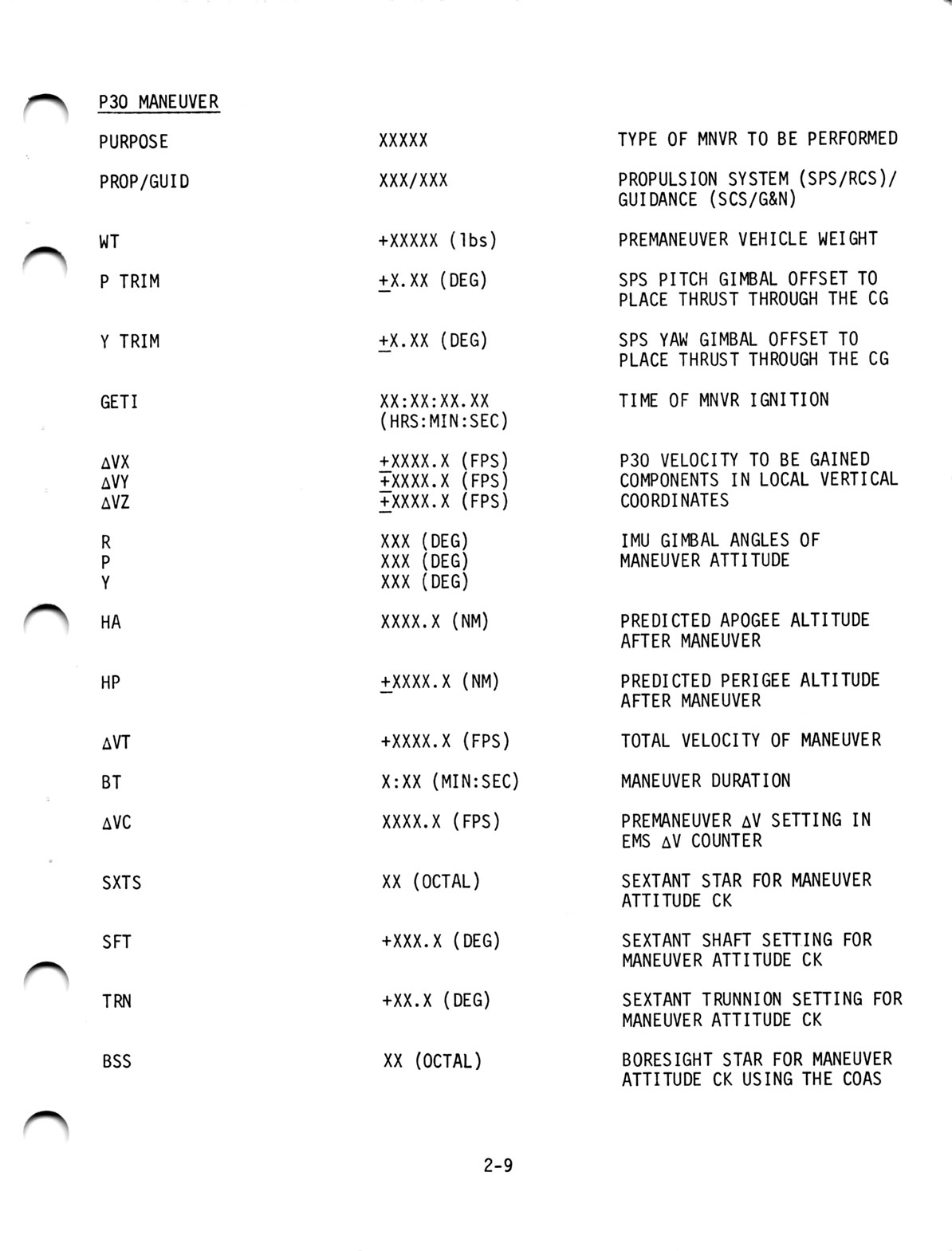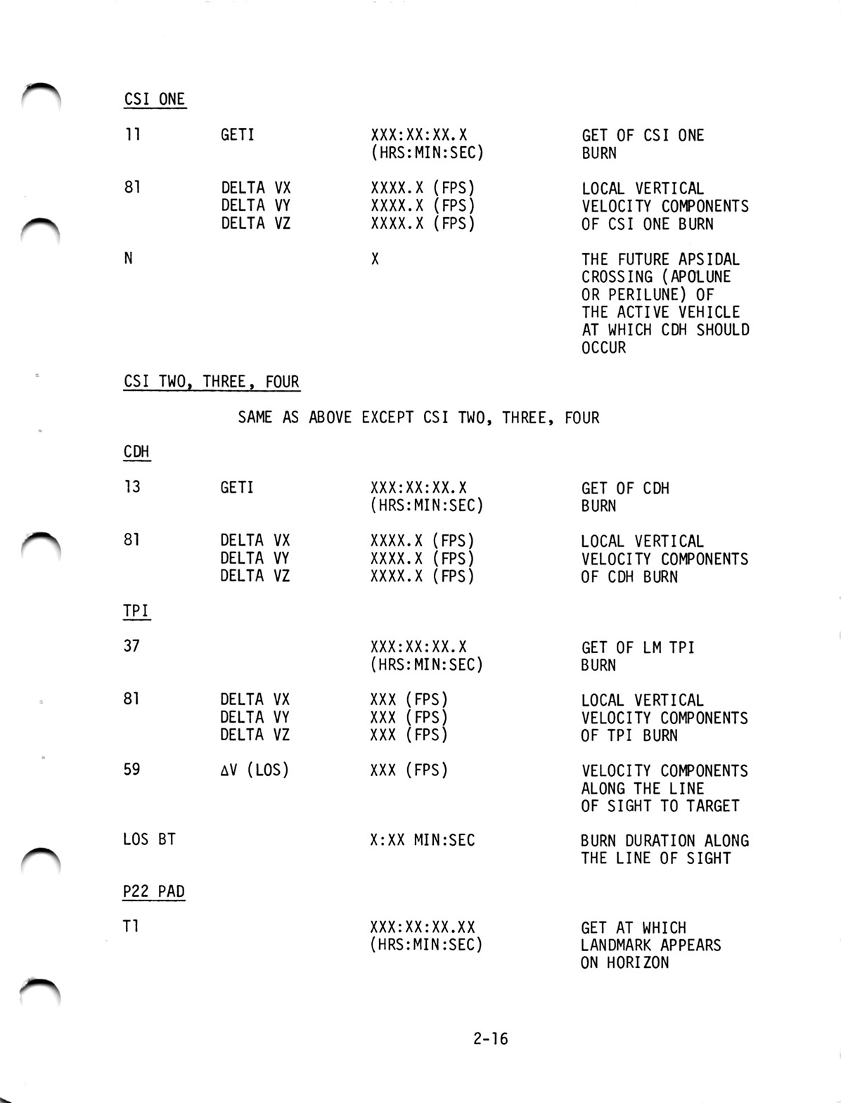 The Flight Plan presented here is not identical to that used on board but there are likely to be very few differences. These pages were derived from a PDF of a scan of the Flight Plan that was sent to the Honeysuckle Creek Tracking Station in Australia few days prior to the flight. The PDF was created by Colin Mackellar for the honeysucklecreek.net website and can be downloaded here.