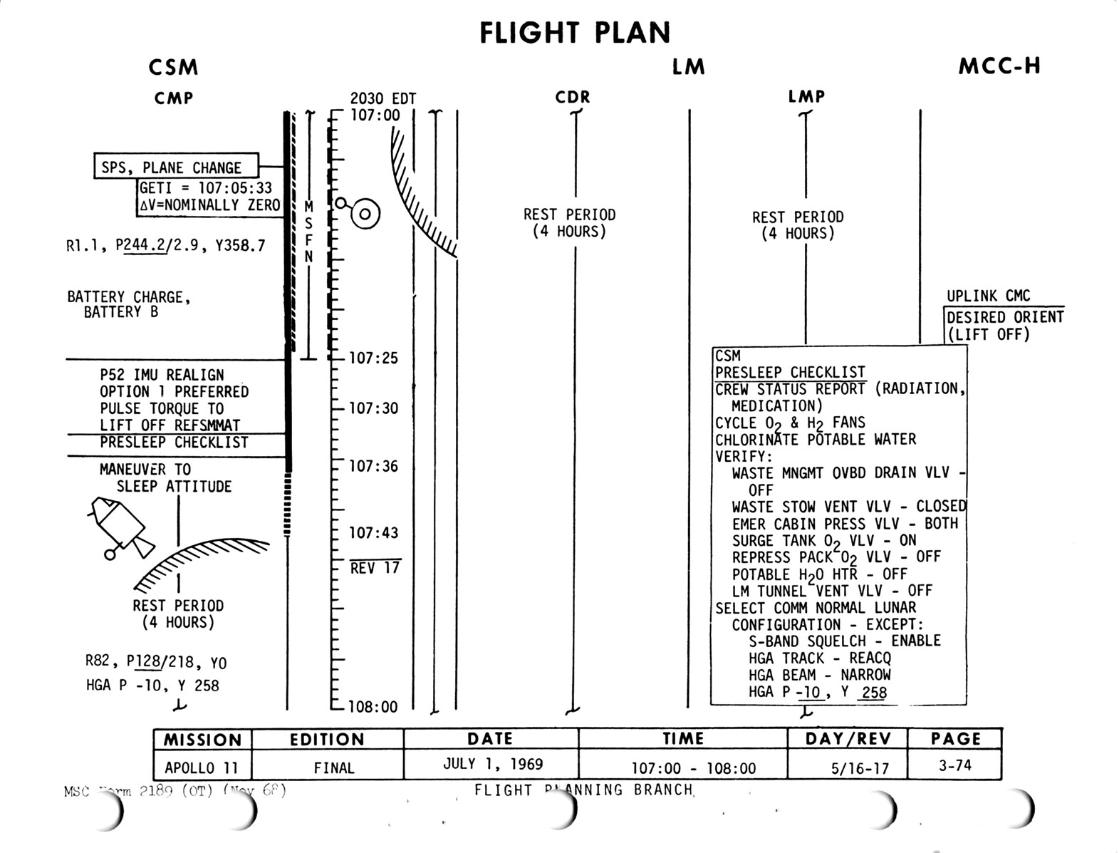 - 3-074 - 107 hours - Rev-17, CSM Plane Change, LM Rest Period