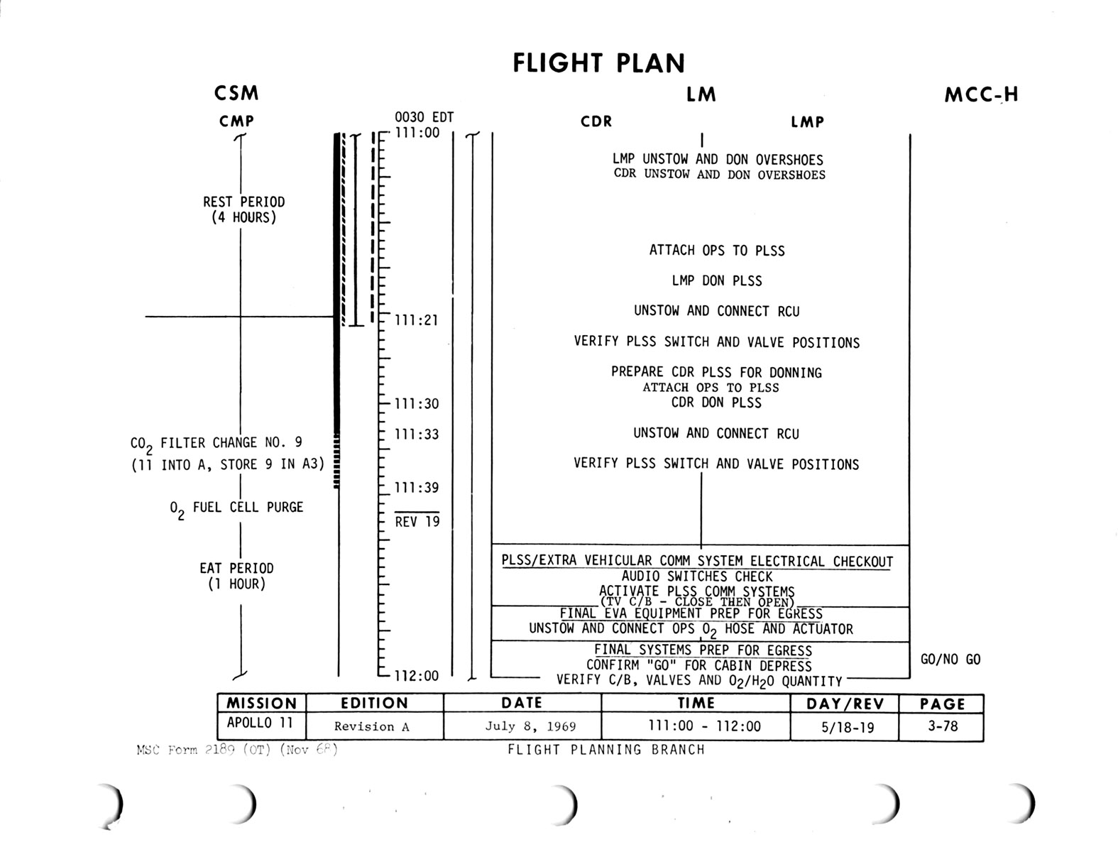 - 3-078 - 111 hours - Rev-19, CSM Rest & Eat Period, LM EVA Prep