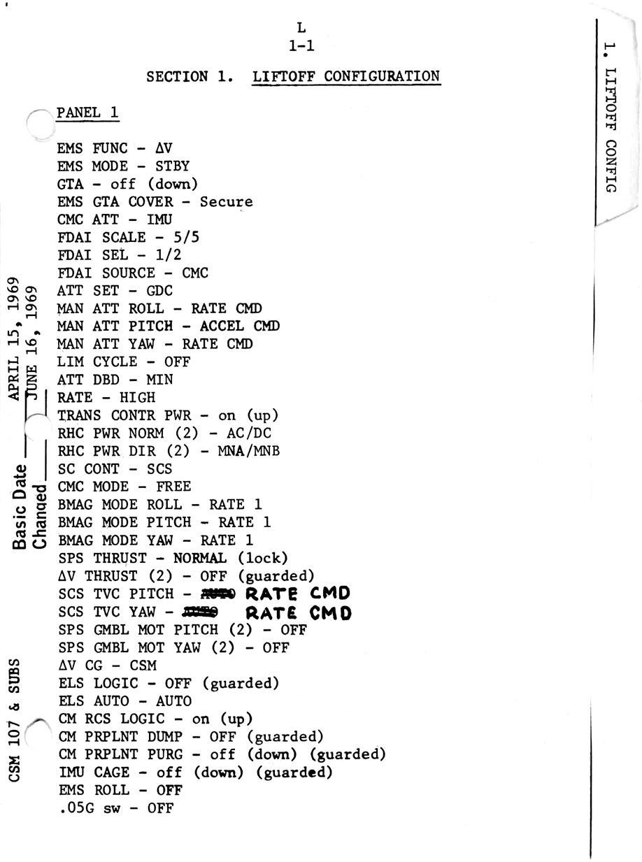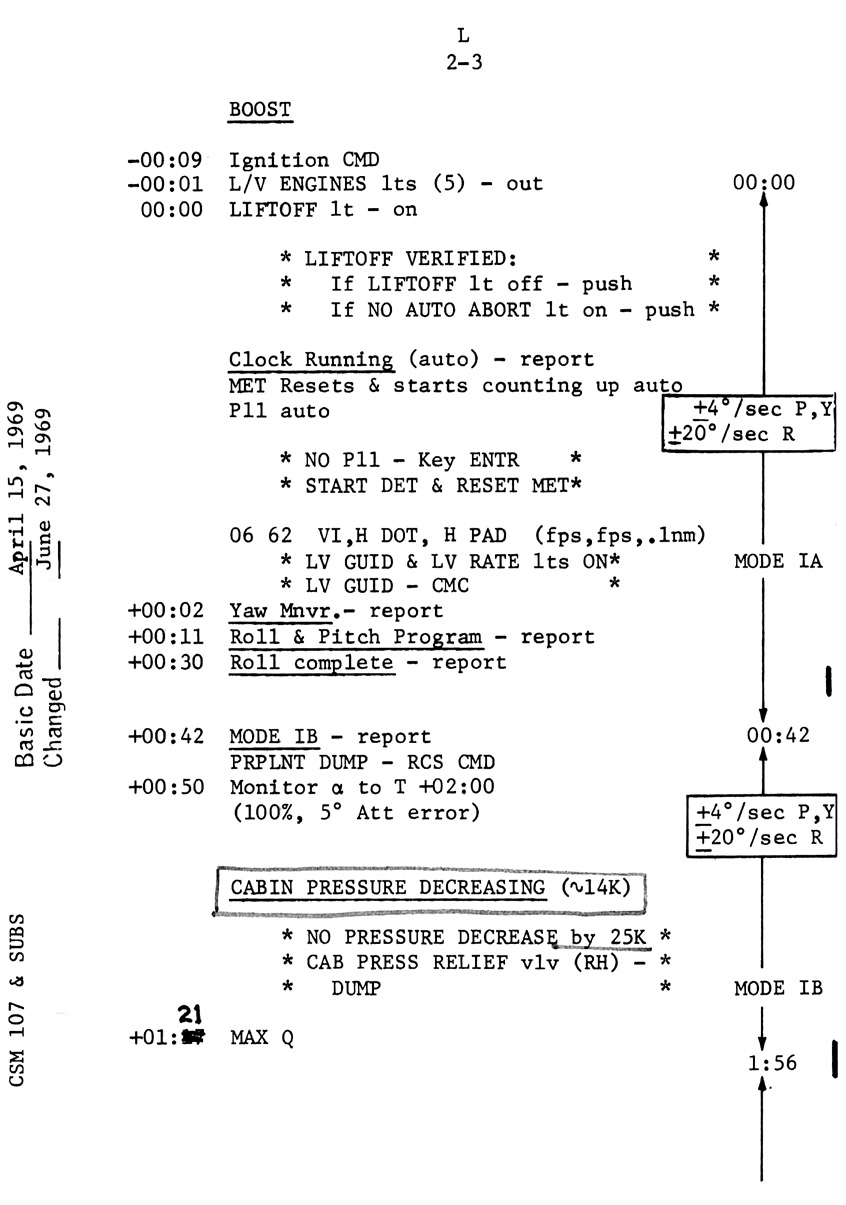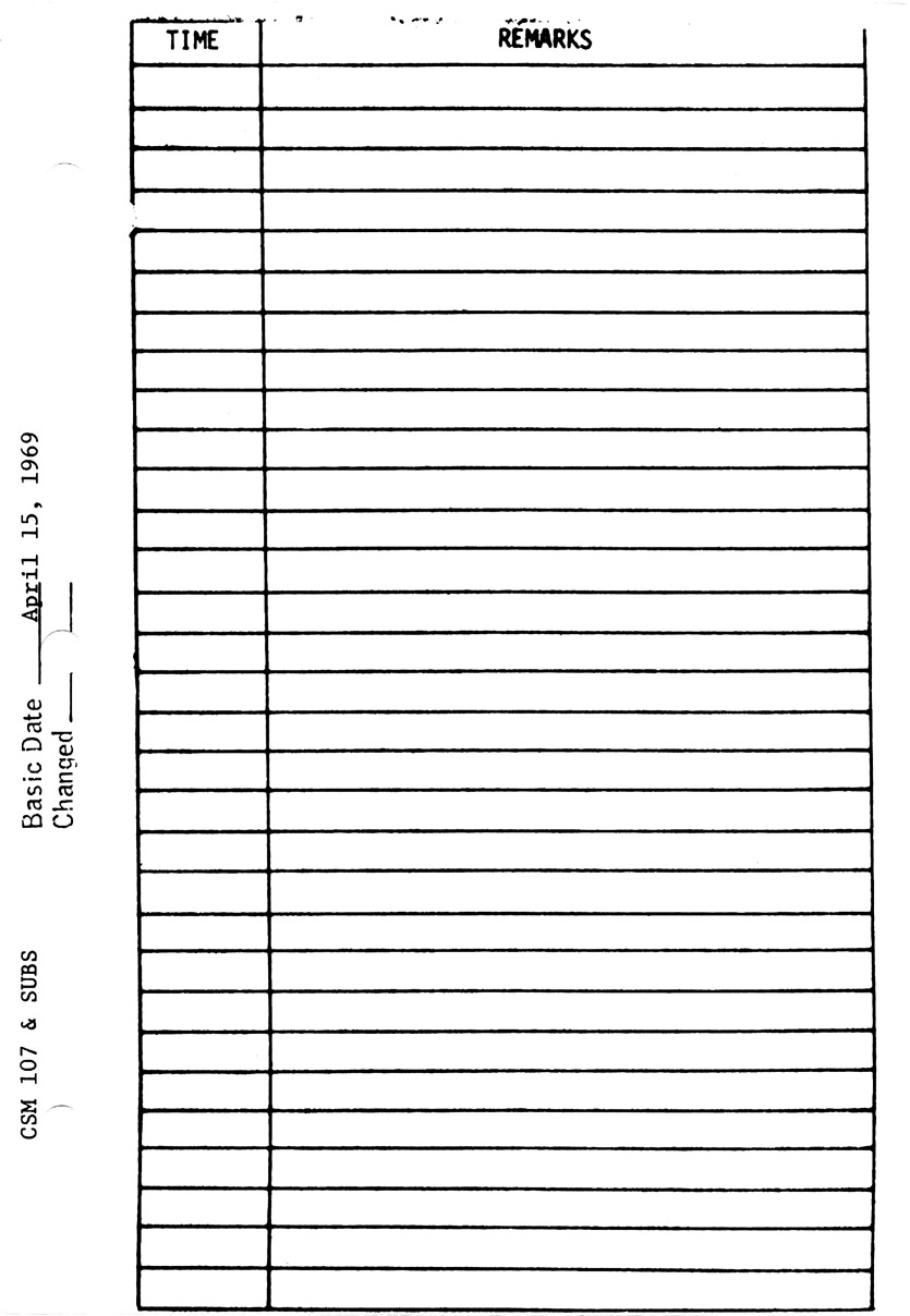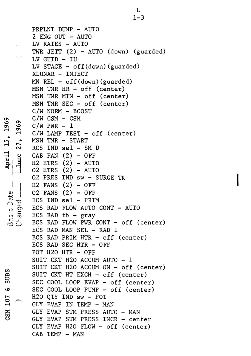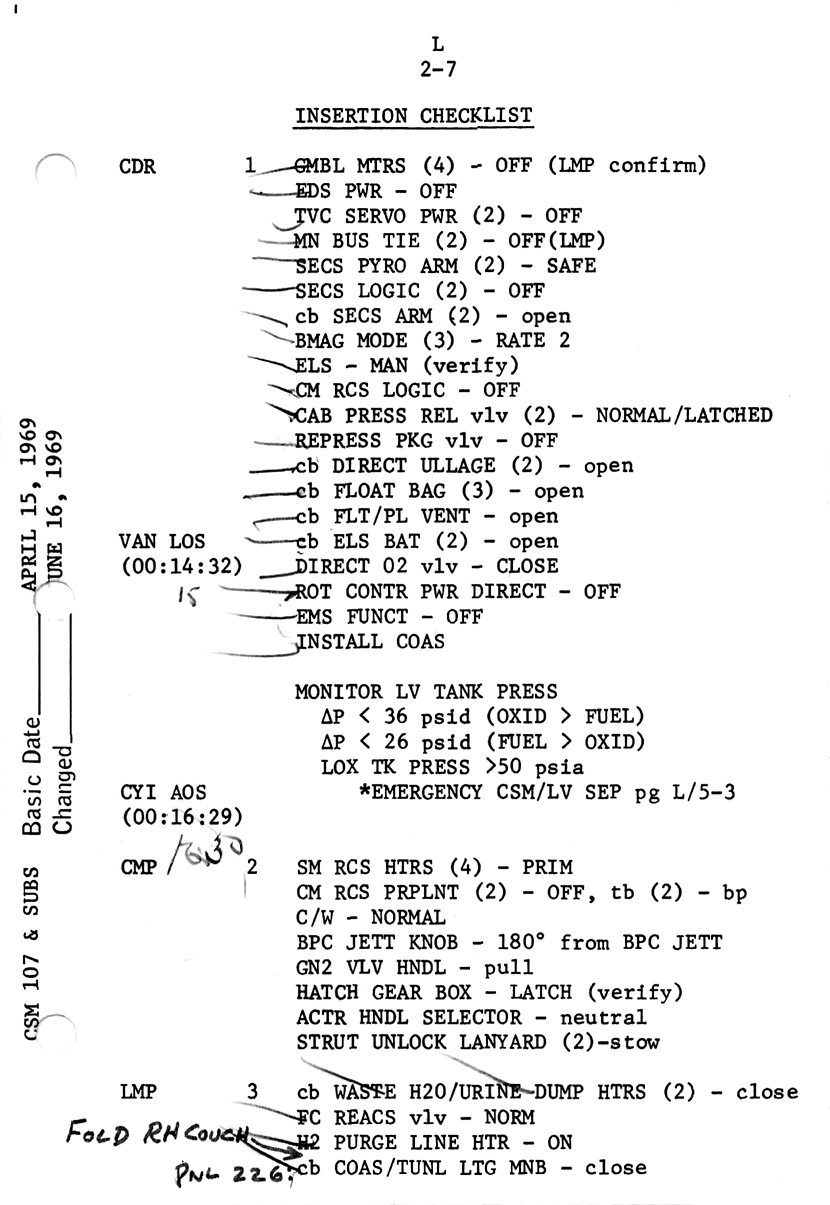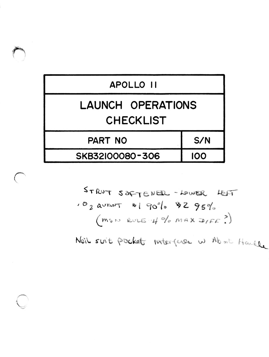 The Launch Operations Checklist presented here was derived from scans of the flown checklist, currently in the collection of the Smithsonian's National Air and Space Museum (Catalog number A19850131000). All of the annotations are on the original. These images are presented with permission of the Smithsonian, National Air and Space Museum subject to its terms of use policy.