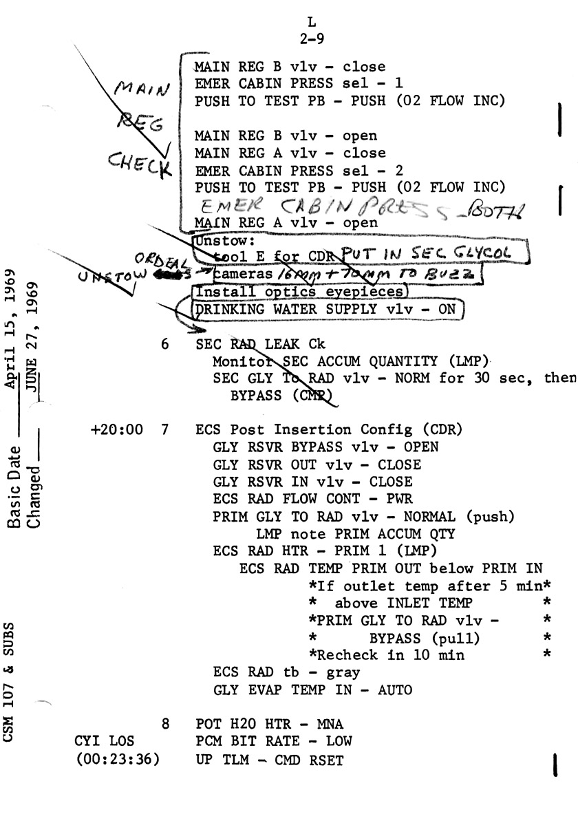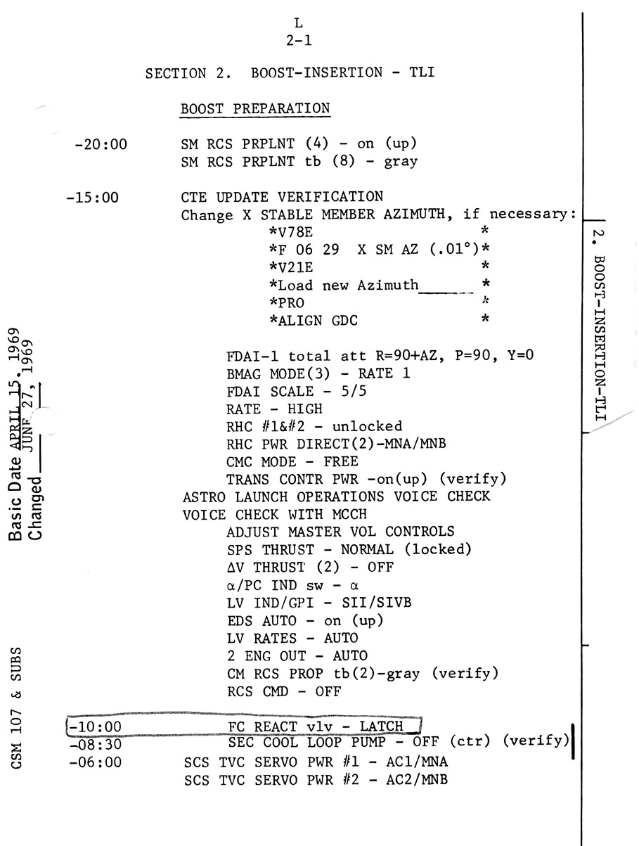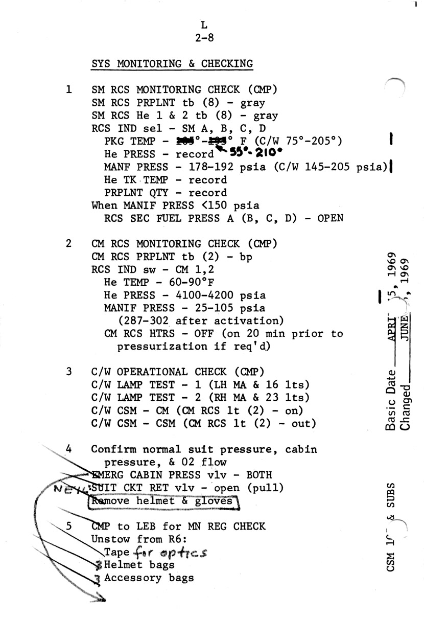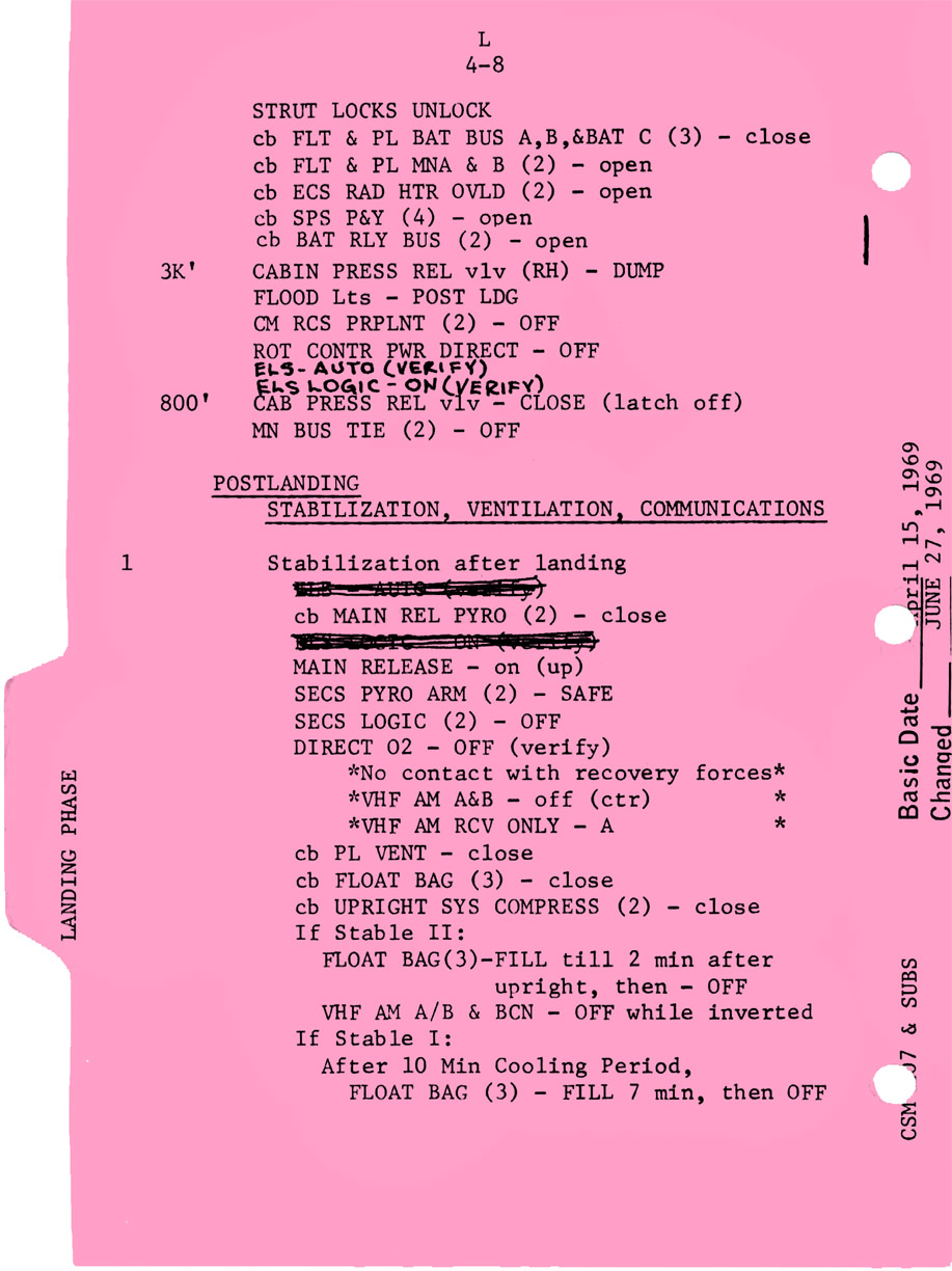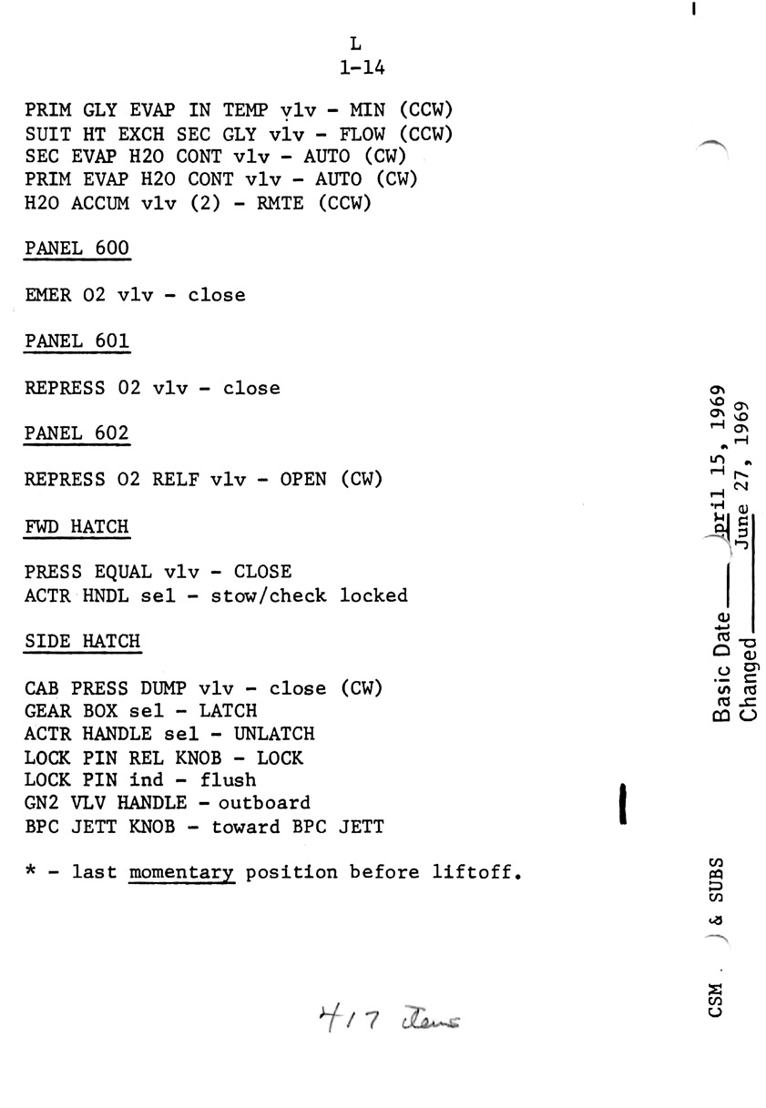 The Launch Operations Checklist presented here was derived from scans of the flown checklist, currently in the collection of the Smithsonian's National Air and Space Museum (Catalog number A19850131000). All of the annotations are on the original. These images are presented with permission of the Smithsonian, National Air and Space Museum subject to its terms of use policy.