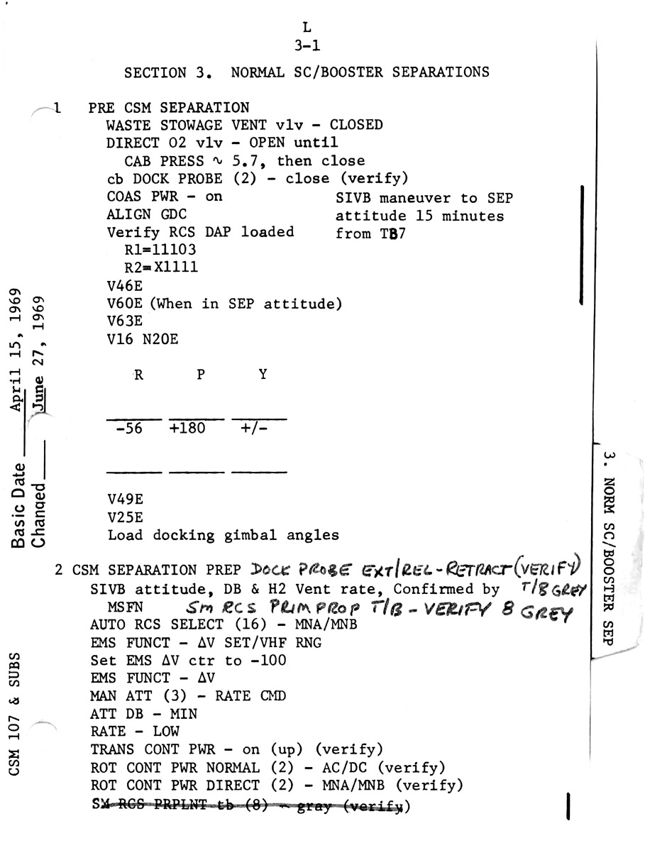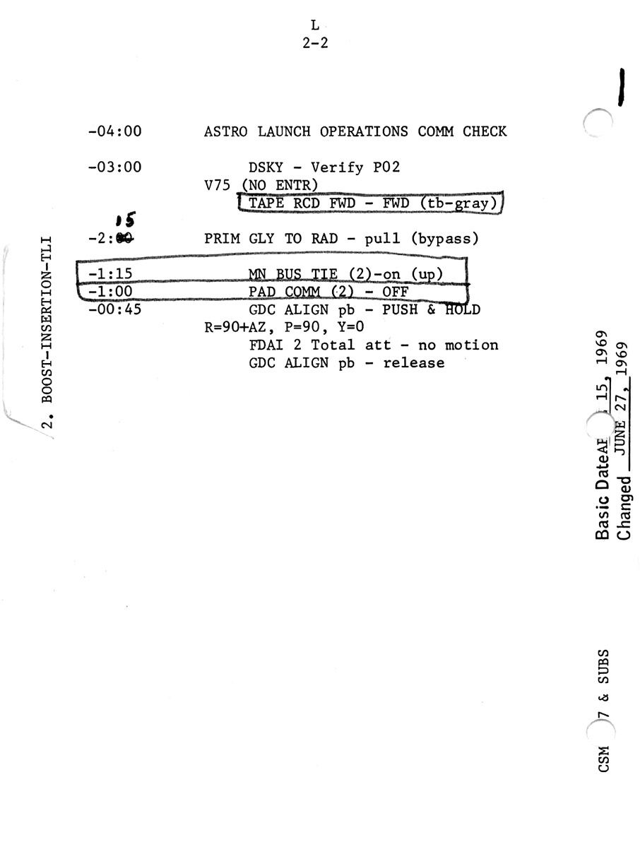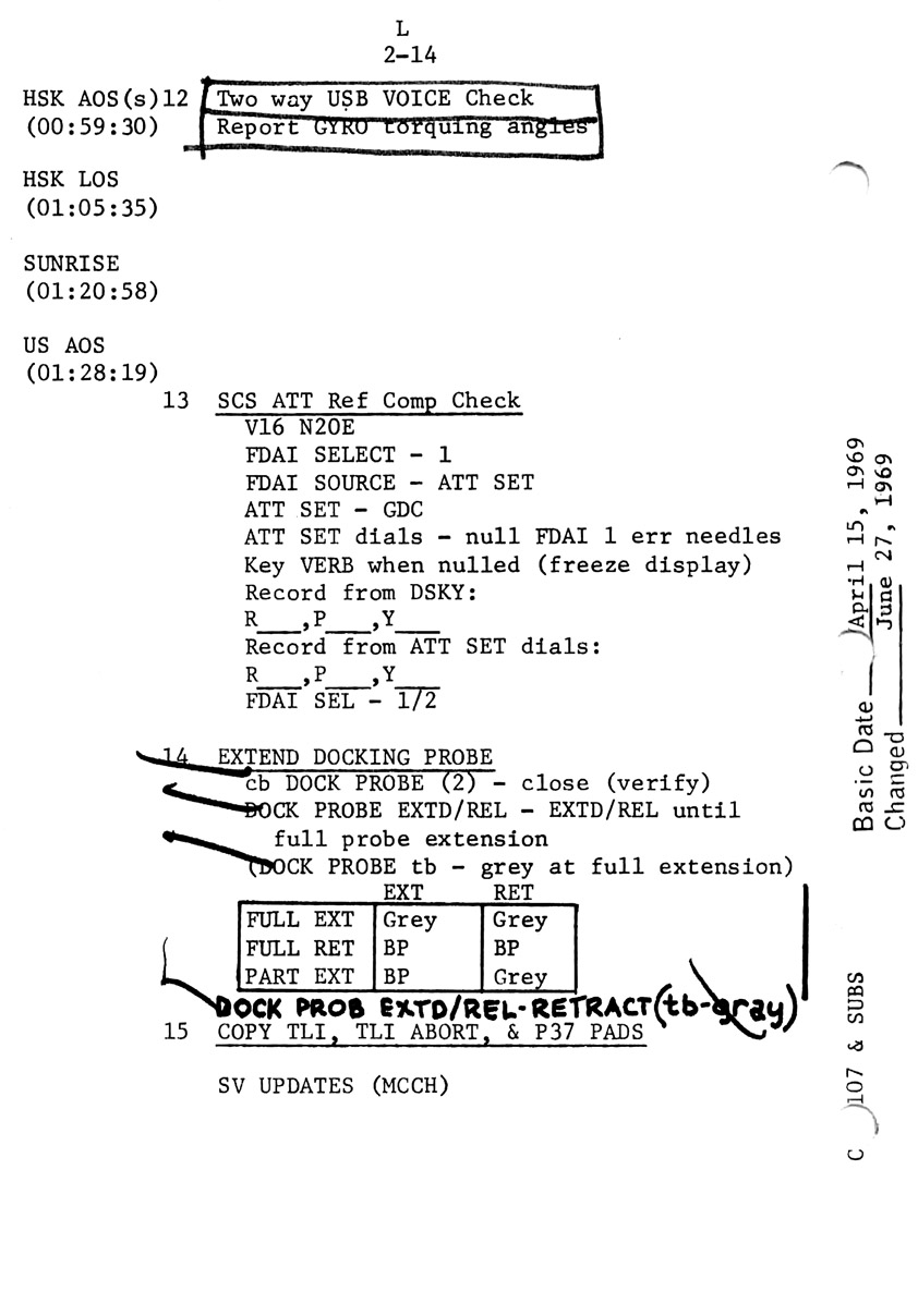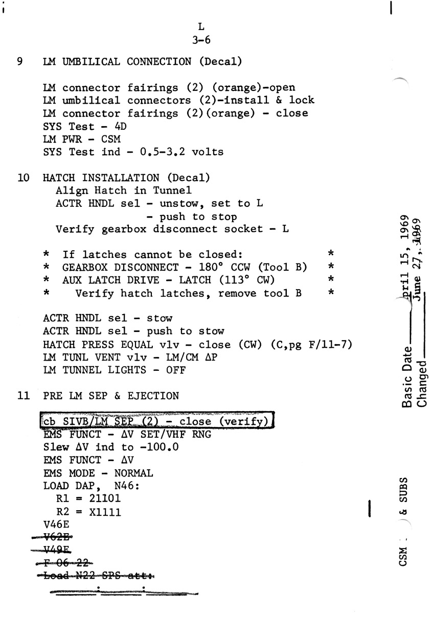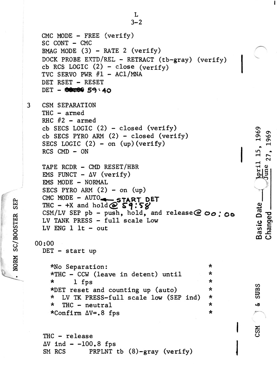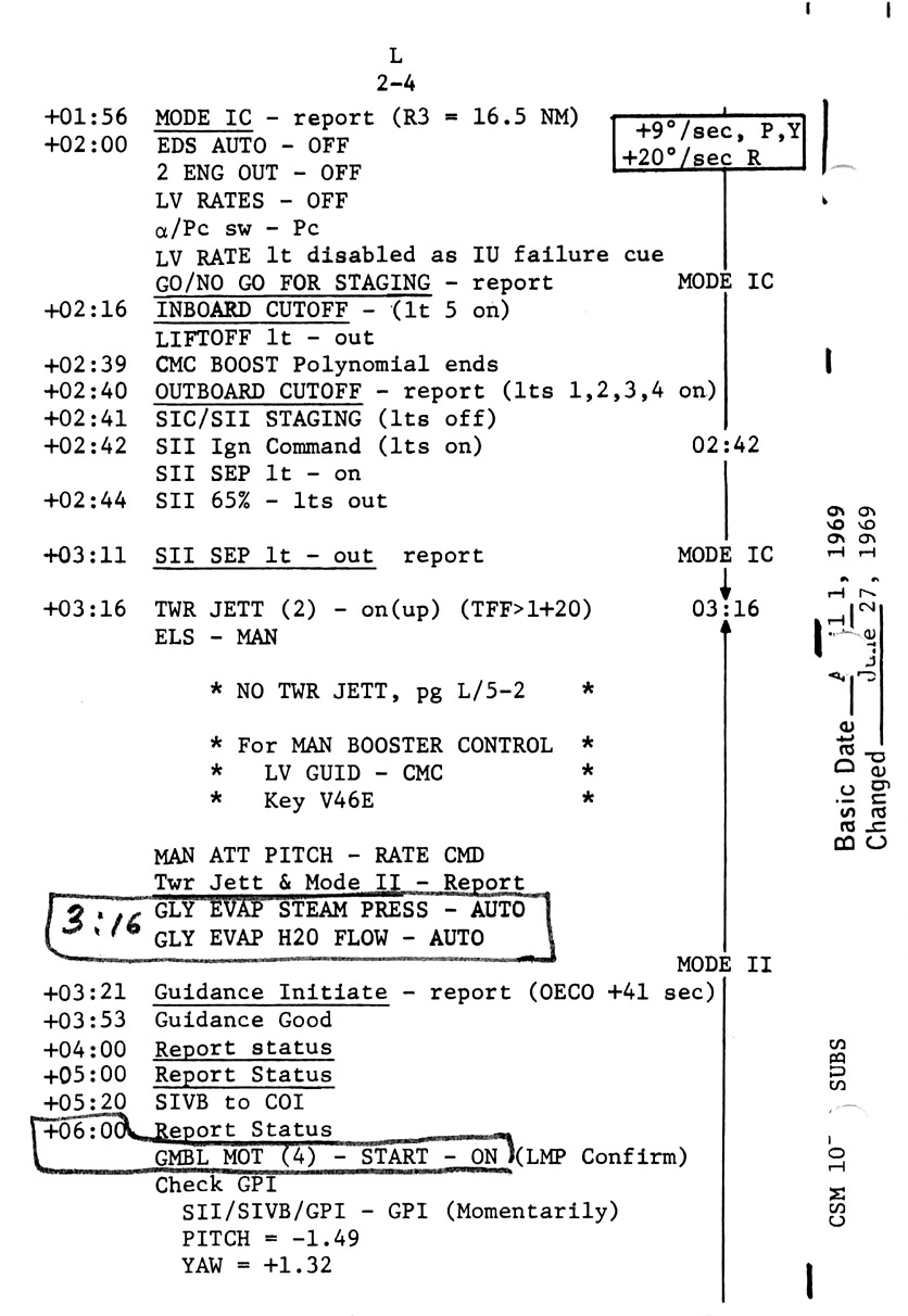 The Launch Operations Checklist presented here was derived from scans of the flown checklist, currently in the collection of the Smithsonian's National Air and Space Museum (Catalog number A19850131000). All of the annotations are on the original. These images are presented with permission of the Smithsonian, National Air and Space Museum subject to its terms of use policy.