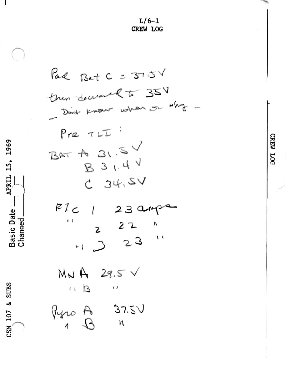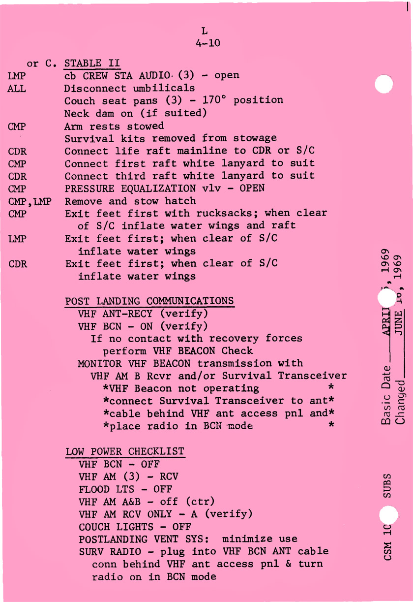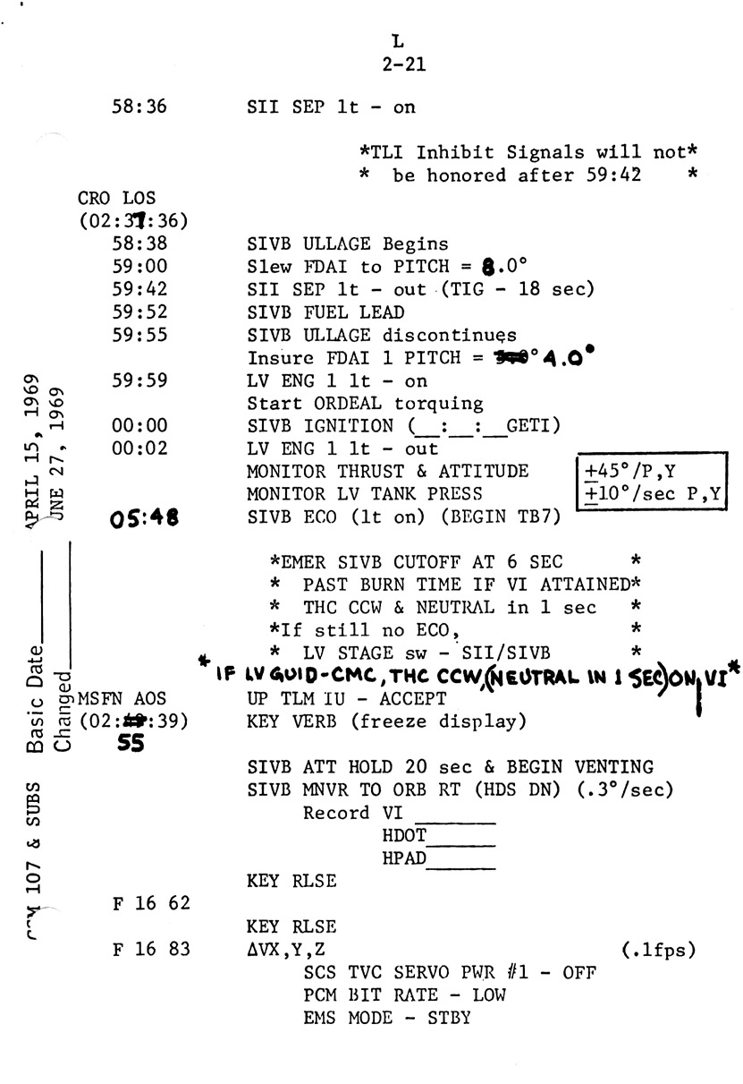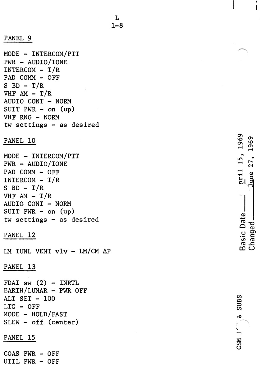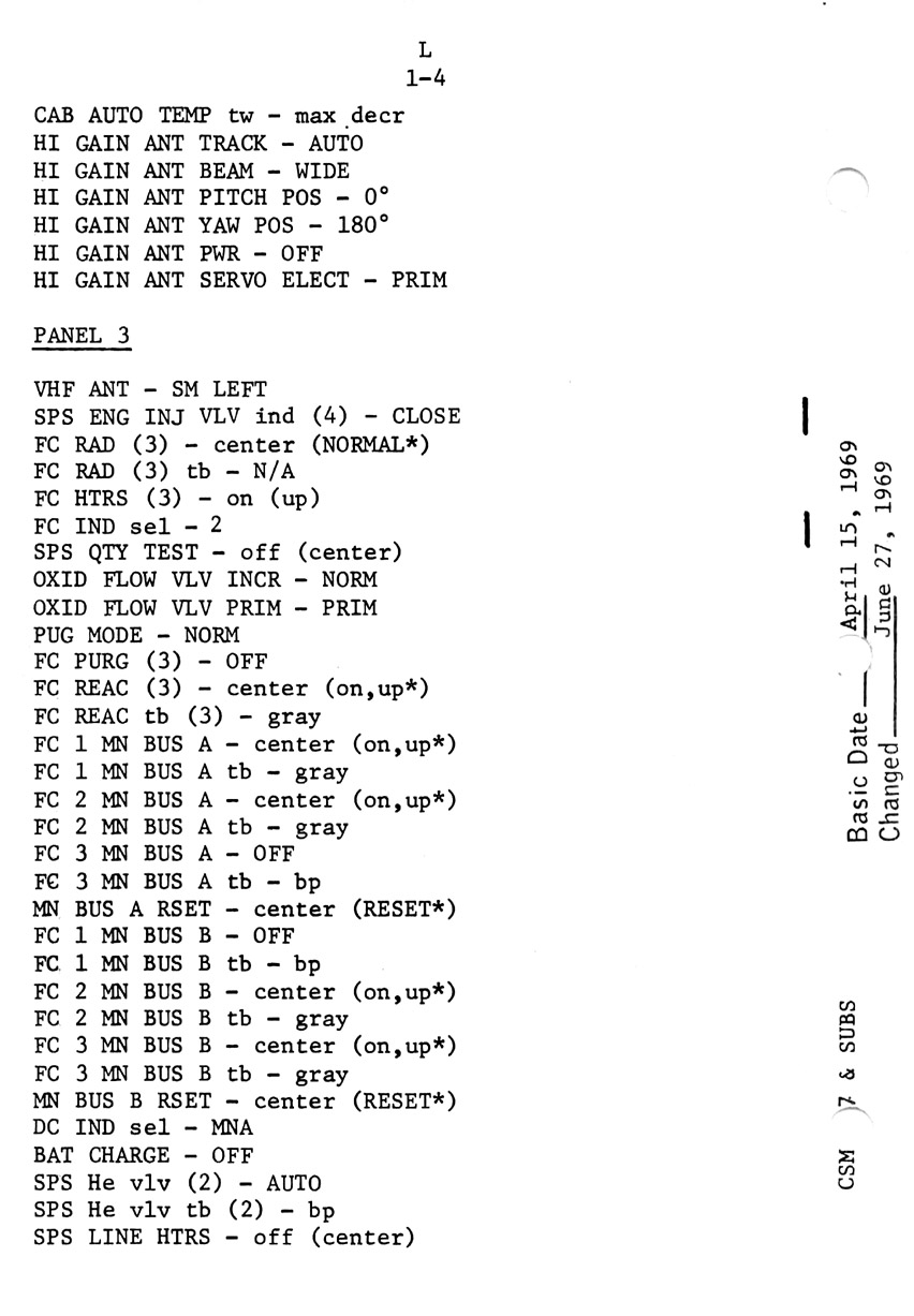The Launch Operations Checklist presented here was derived from scans of the flown checklist, currently in the collection of the Smithsonian's National Air and Space Museum (Catalog number A19850131000). All of the annotations are on the original. These images are presented with permission of the Smithsonian, National Air and Space Museum subject to its terms of use policy.